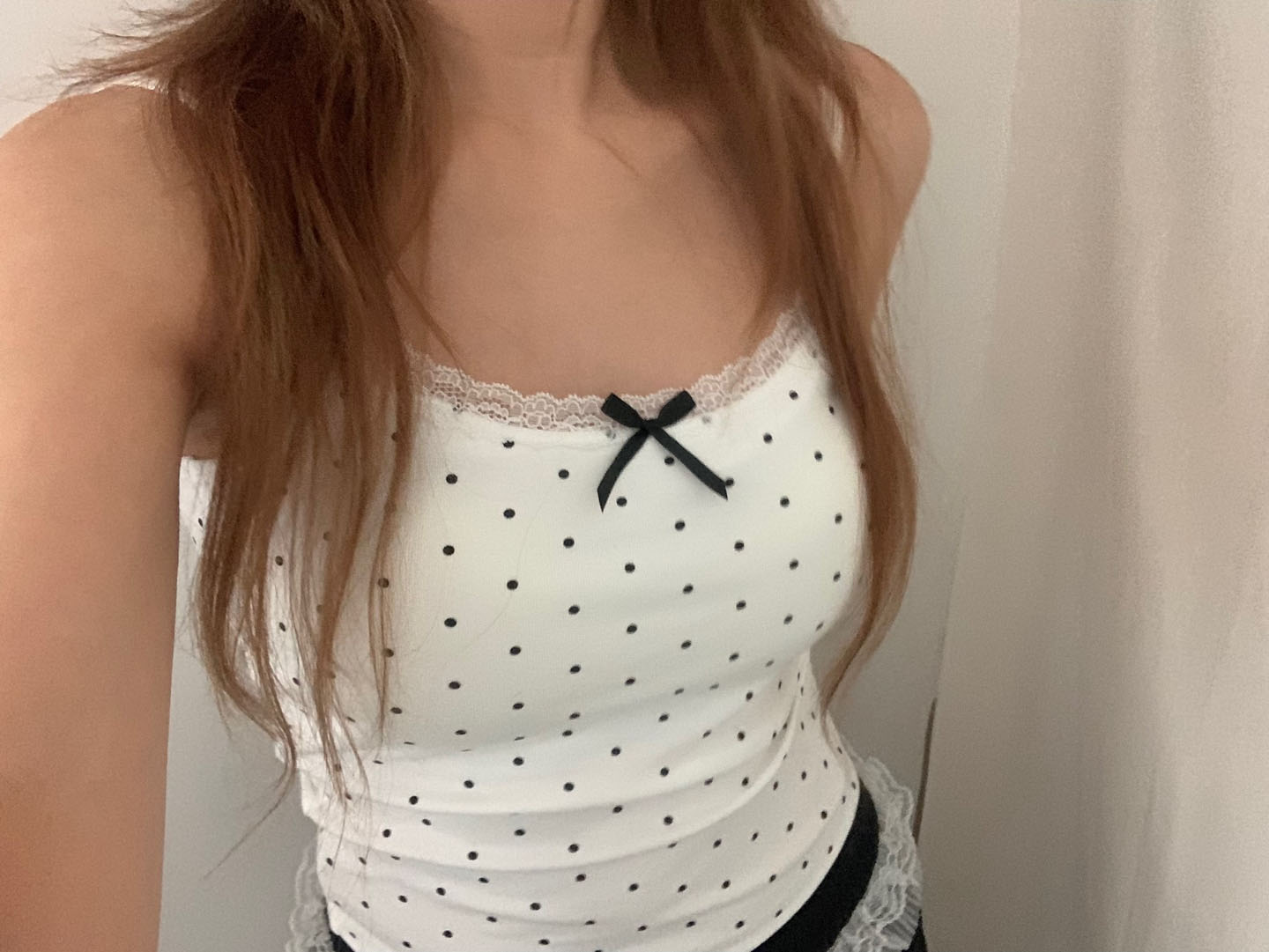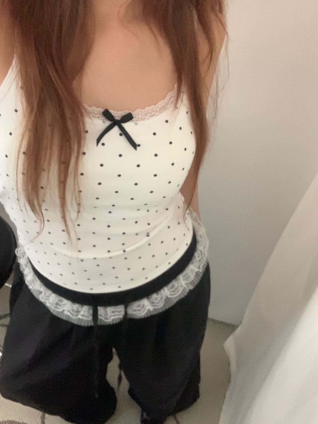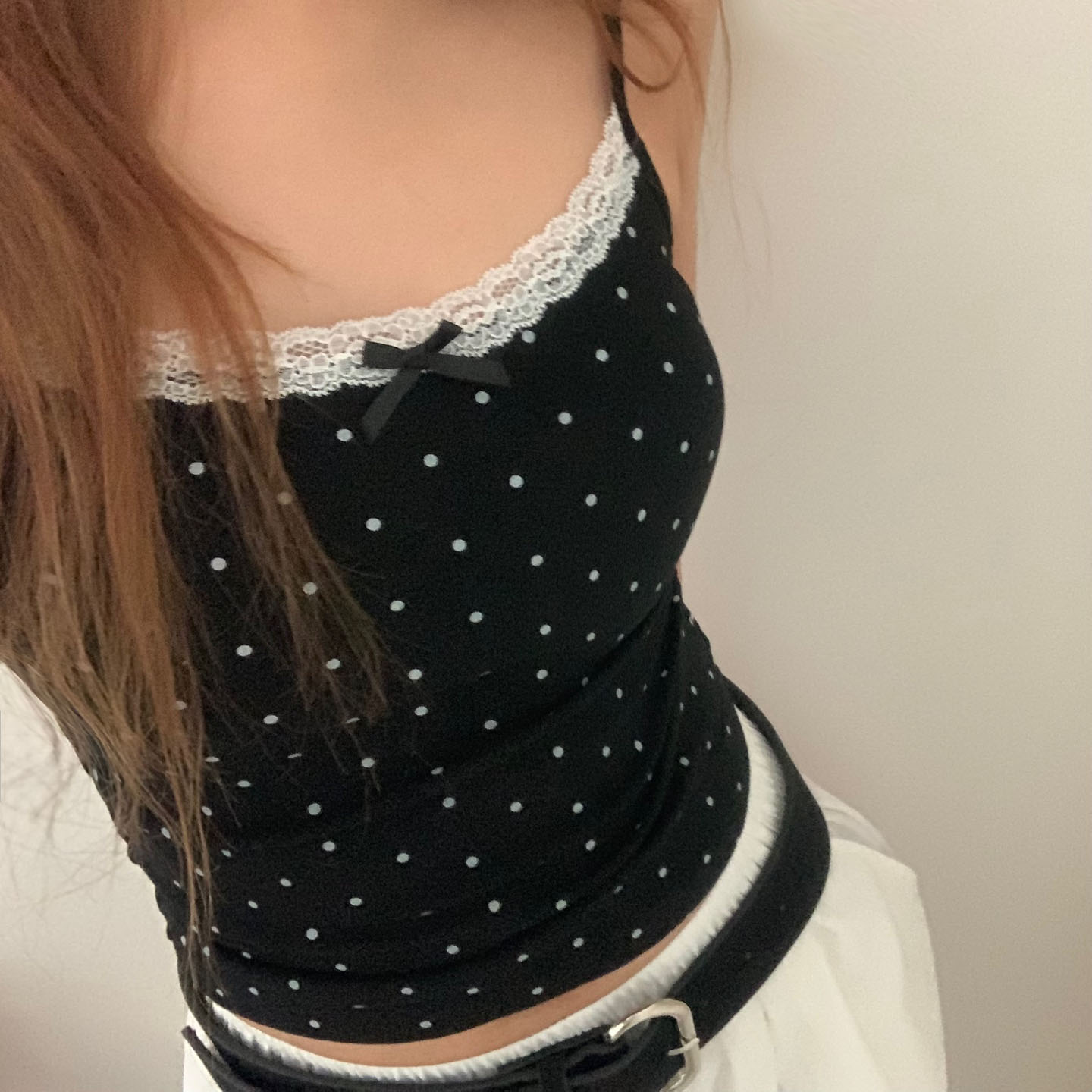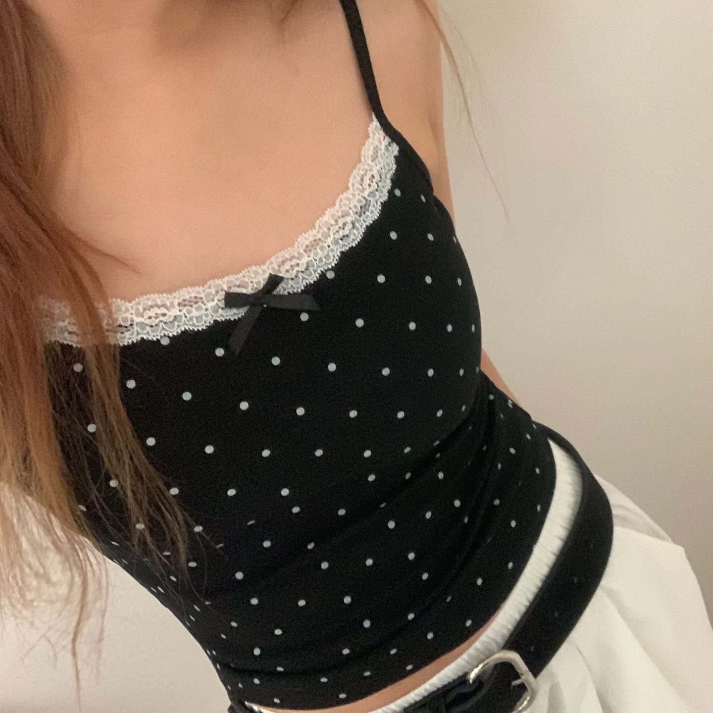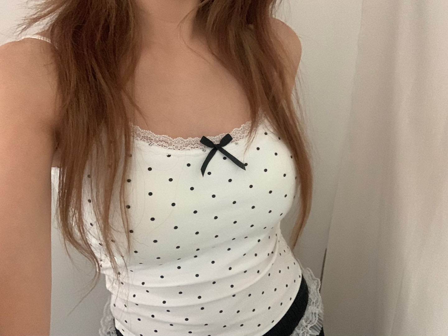 [カップ付き]リボンレースドット柄キャミソール