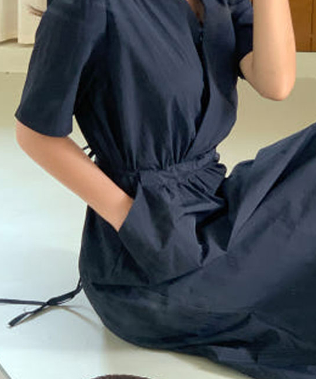 3-4分袖の丈感と共に肩の部分にシャーリングが入って