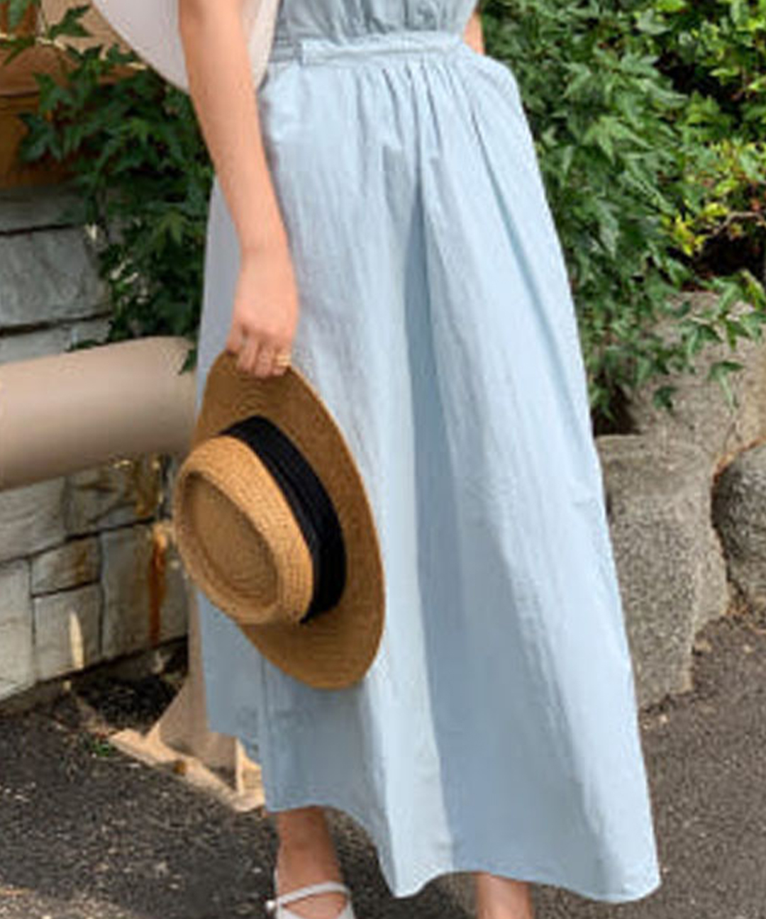 Aラインに広がるスカートシルエットで