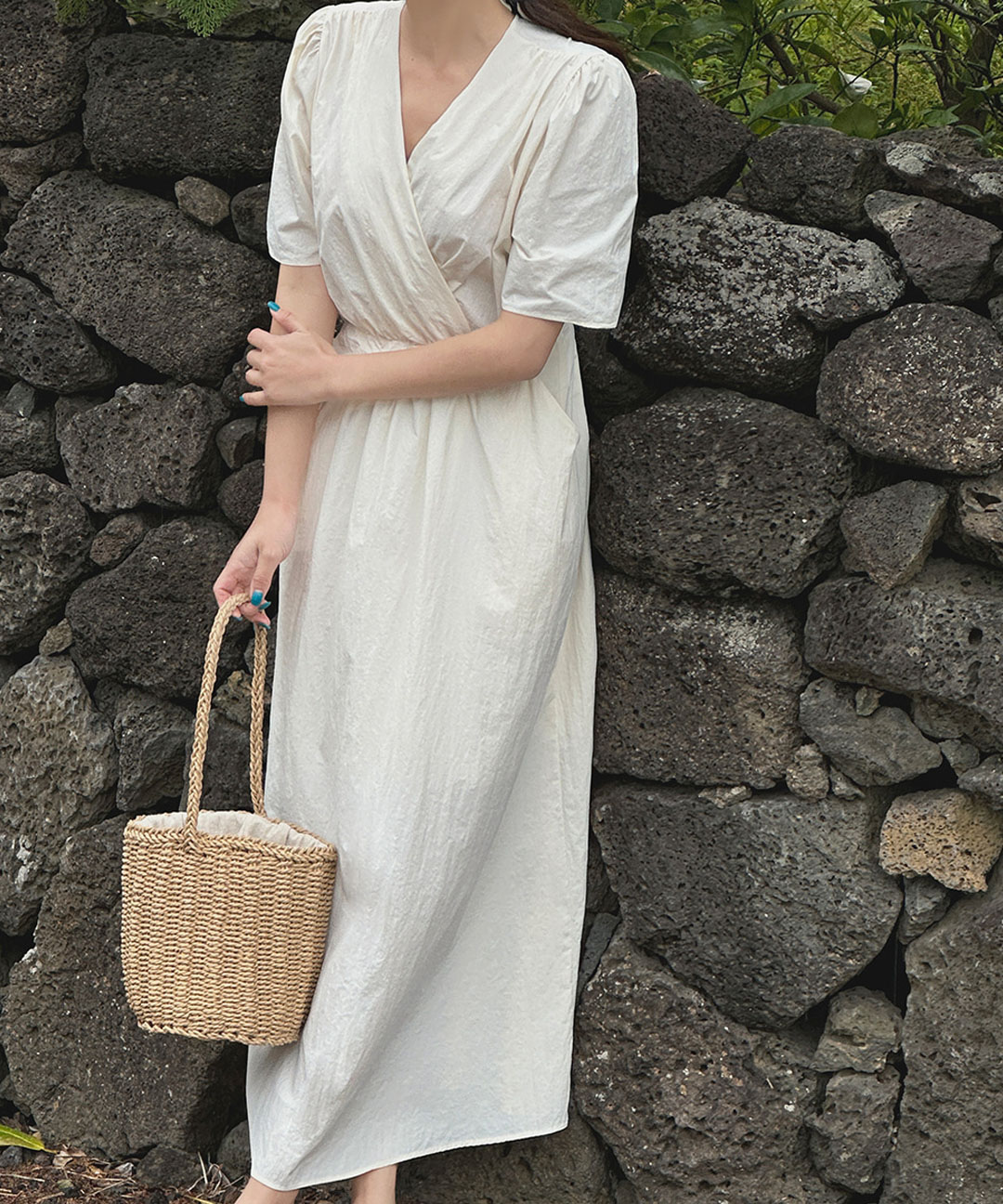【オケージョン】[original/SXL]ノラックラップシャーリング半袖ロングワンピース