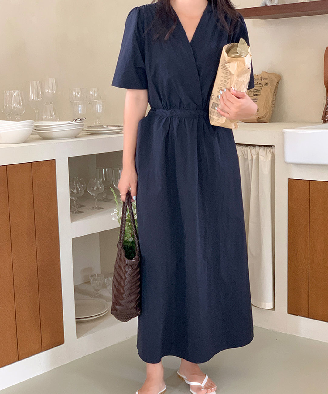 自然的に開いたVネックラップデザインで