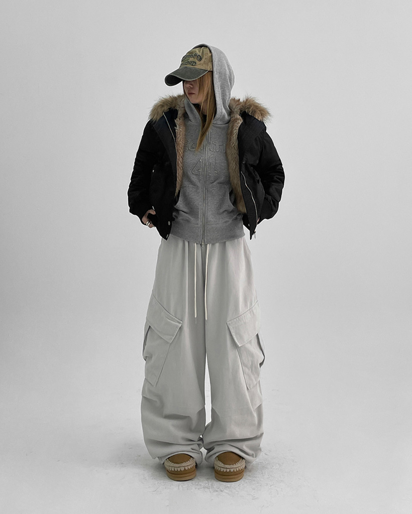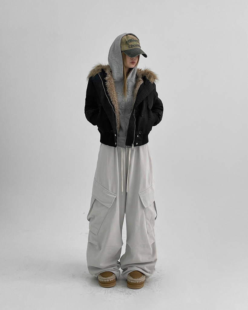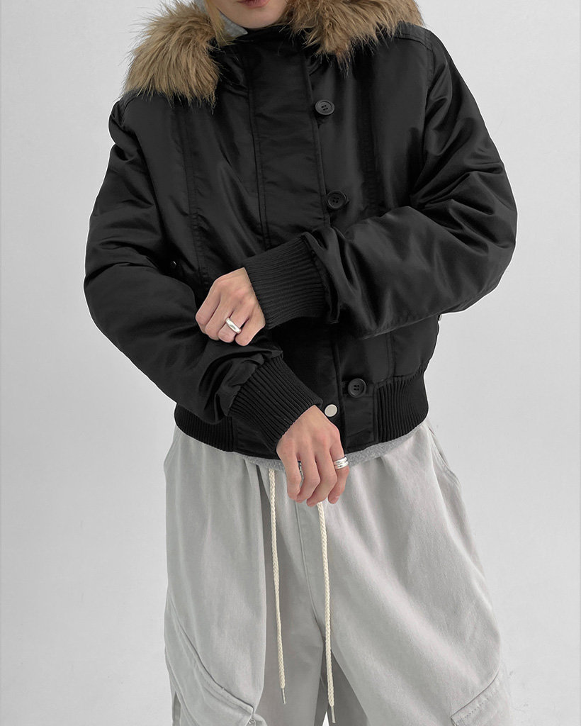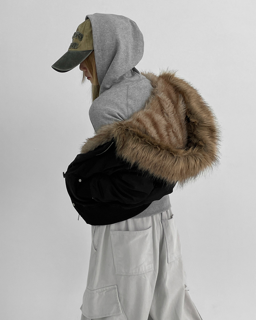 [original] [ユニセックス] ファー フード付き MA-1 ダウン ブルゾン