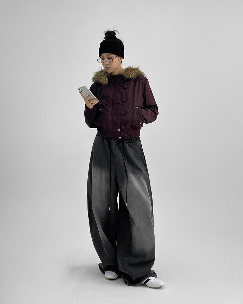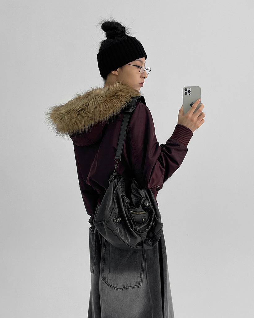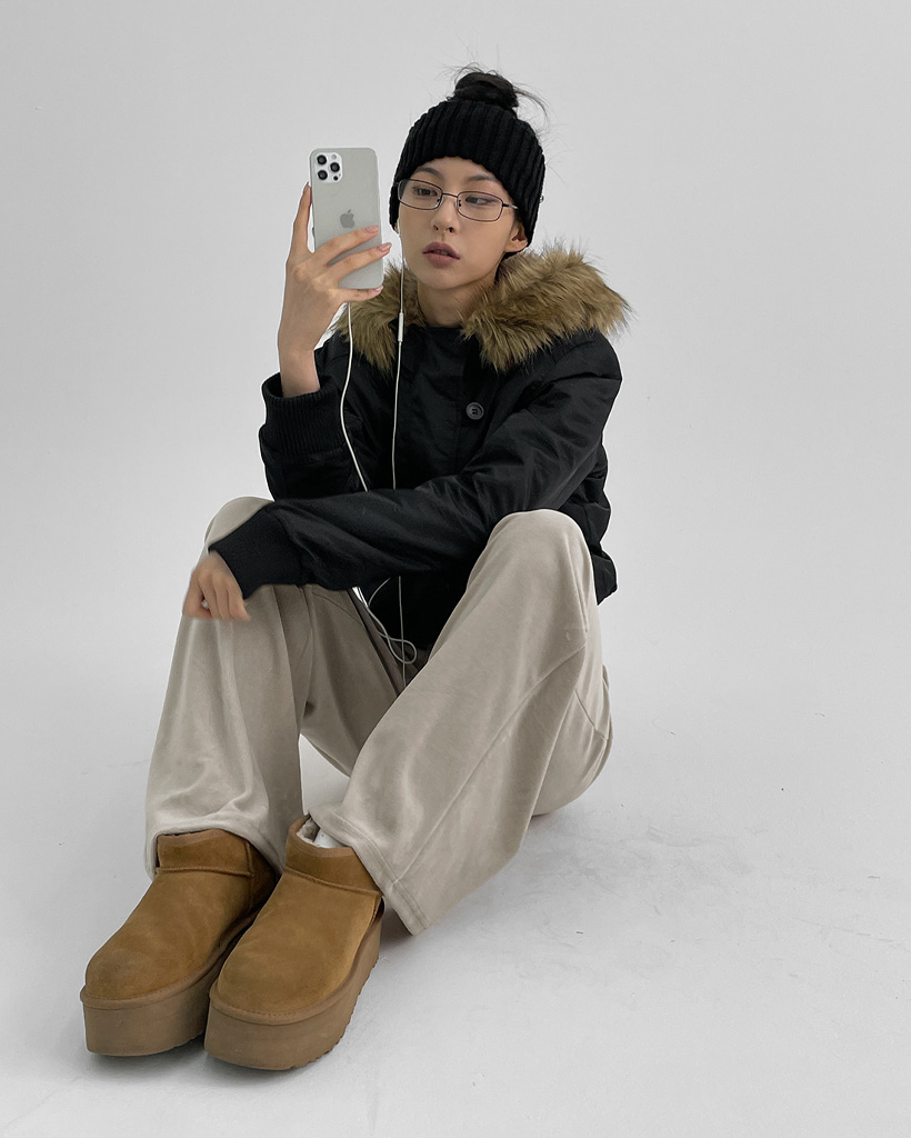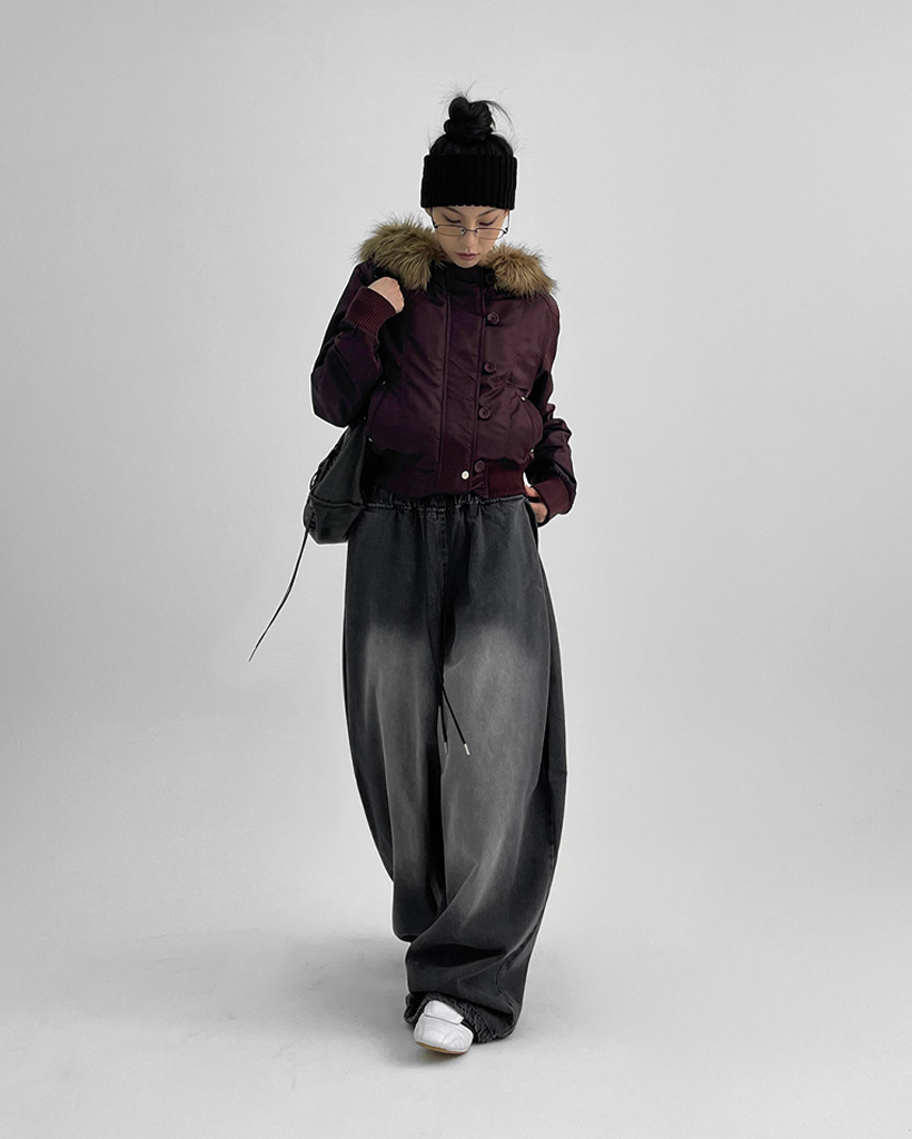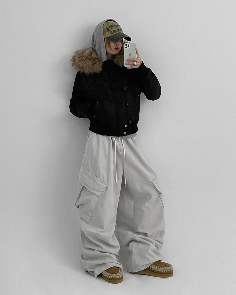 [original] [ユニセックス] ファー フード付き MA-1 ダウン ブルゾン