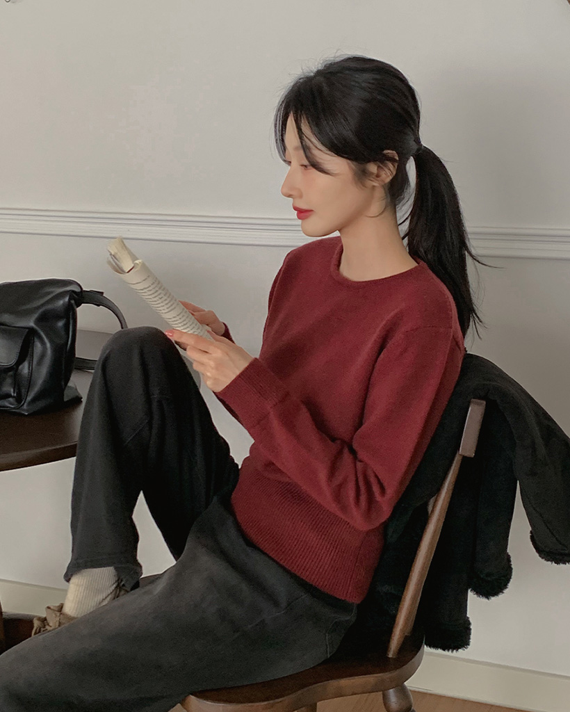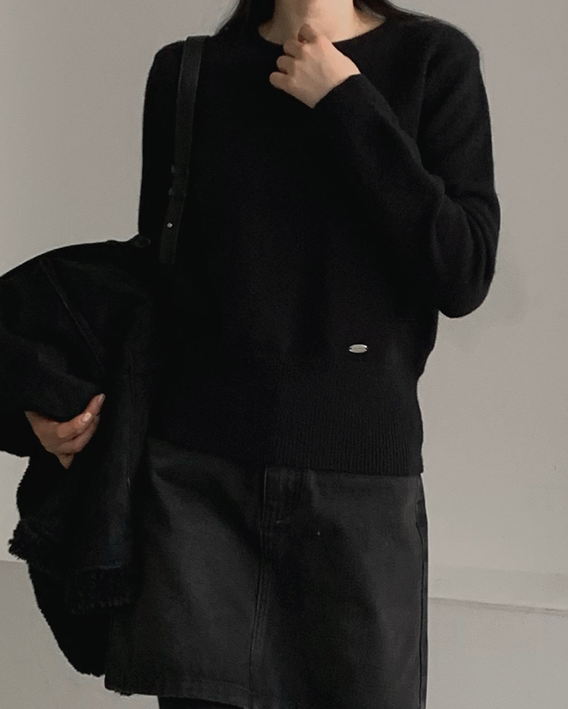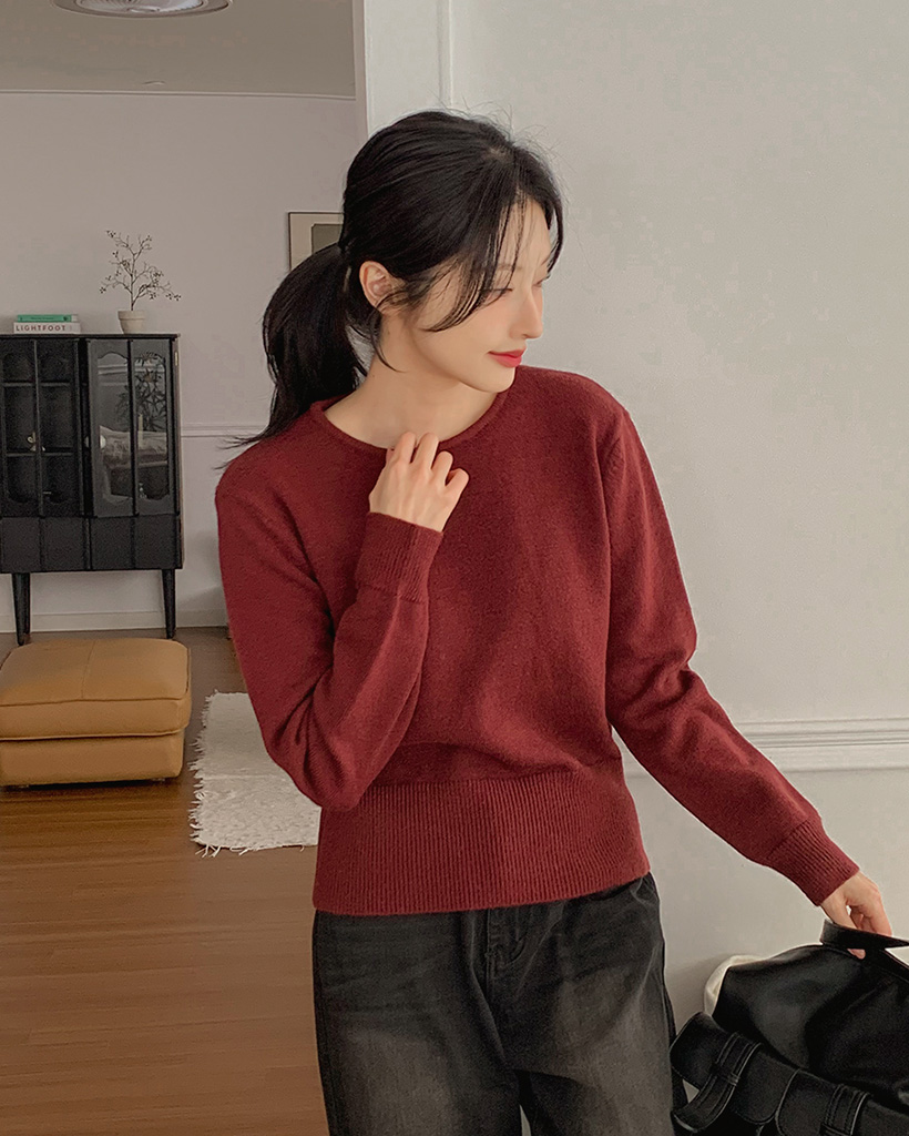 ペンダントラウンドネック長袖ニット