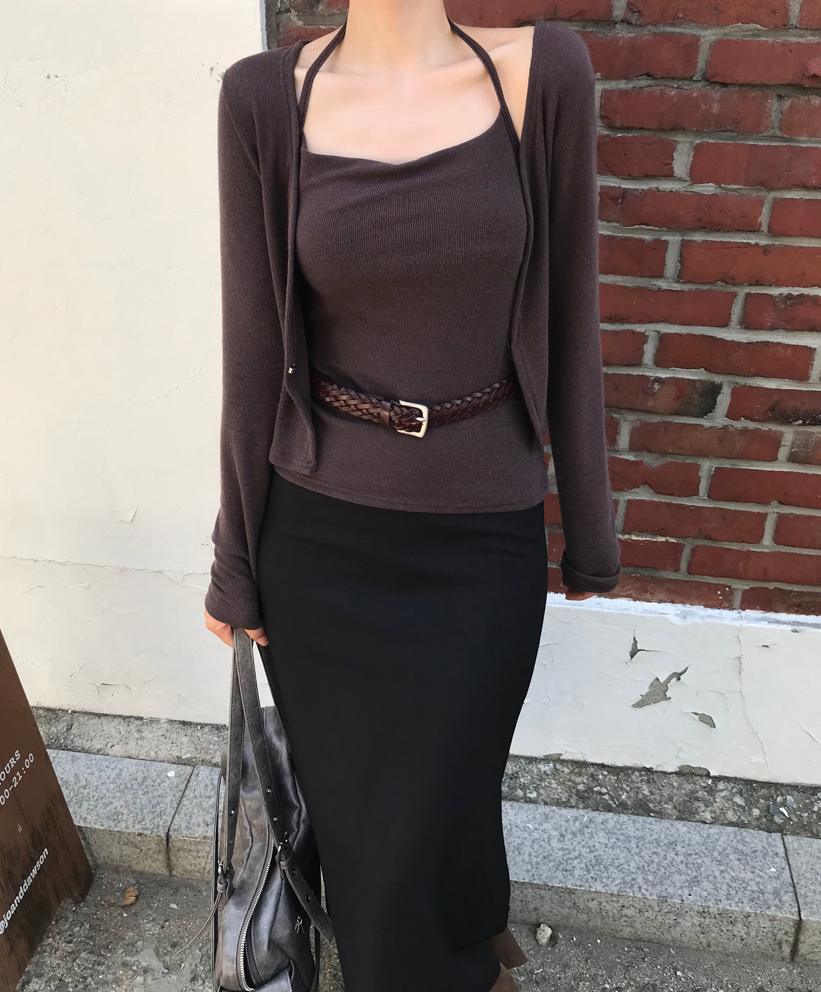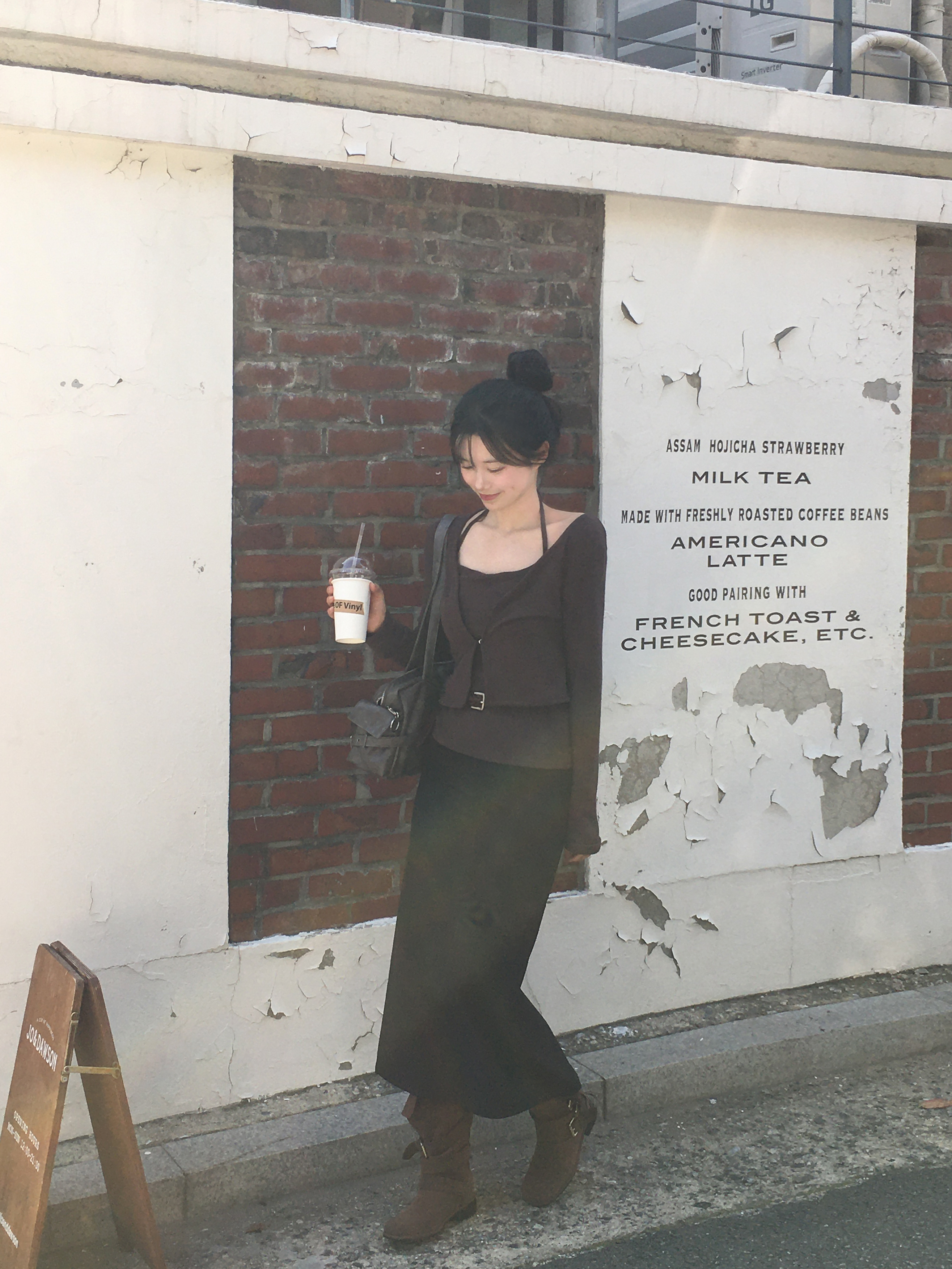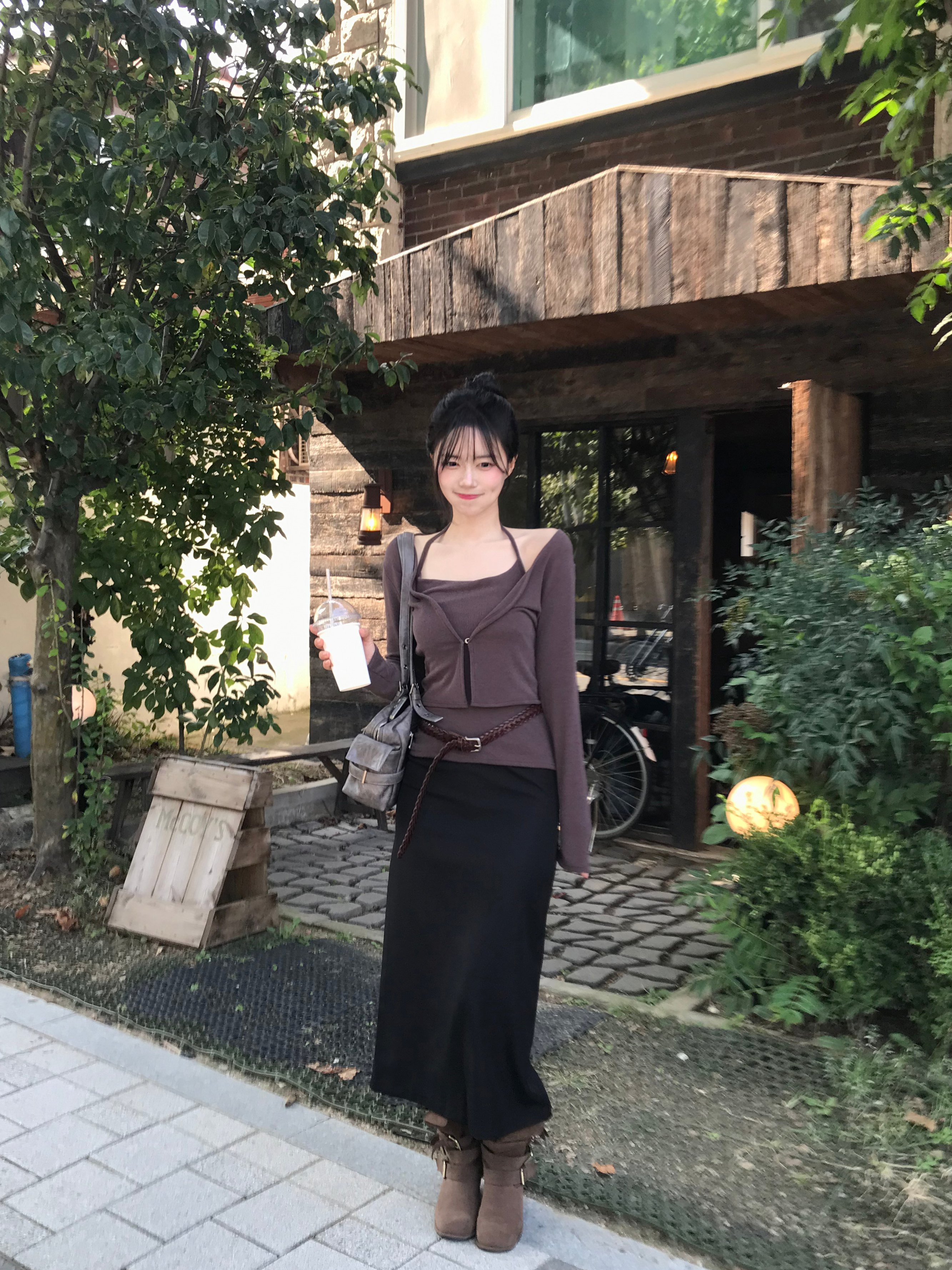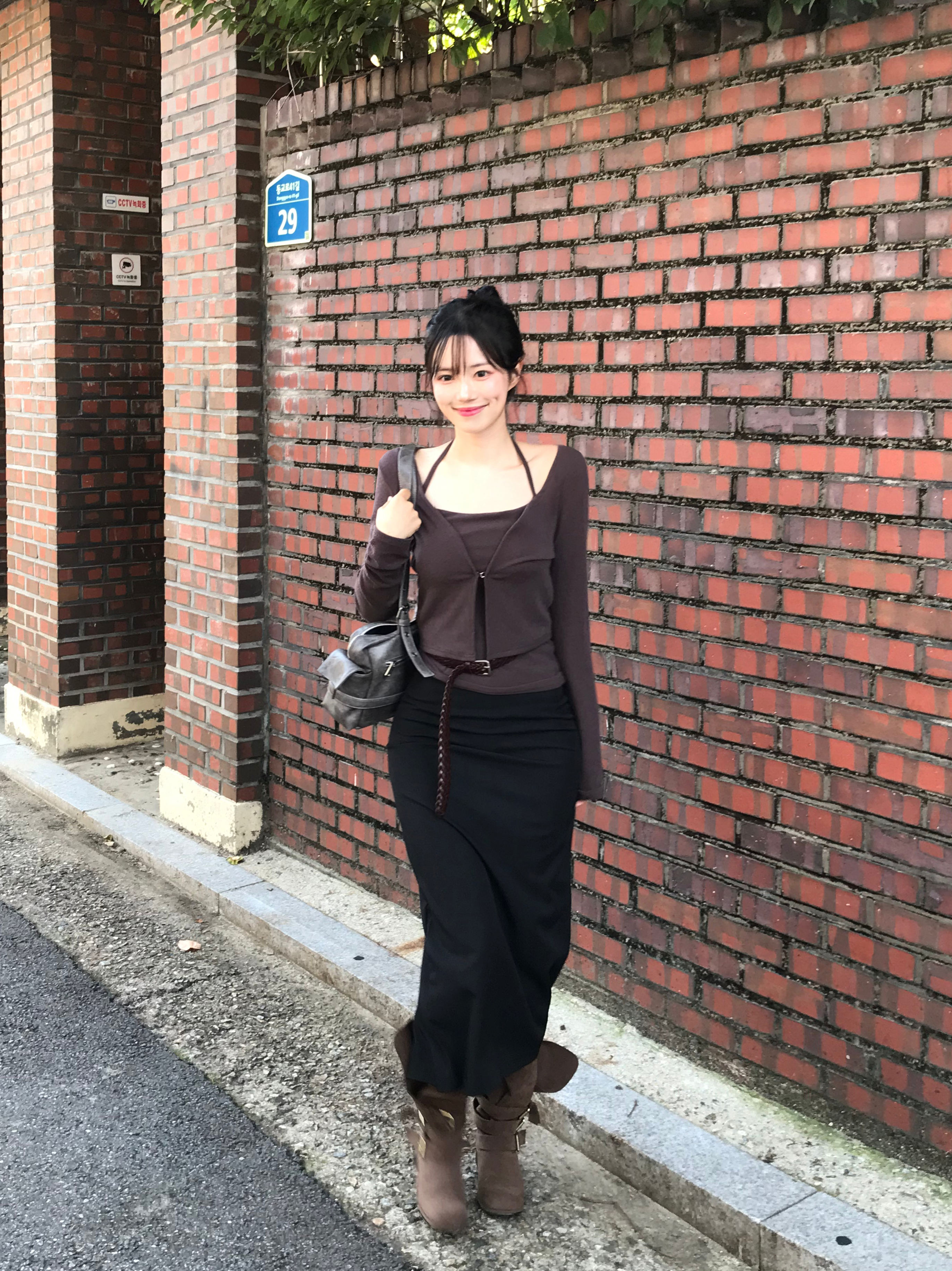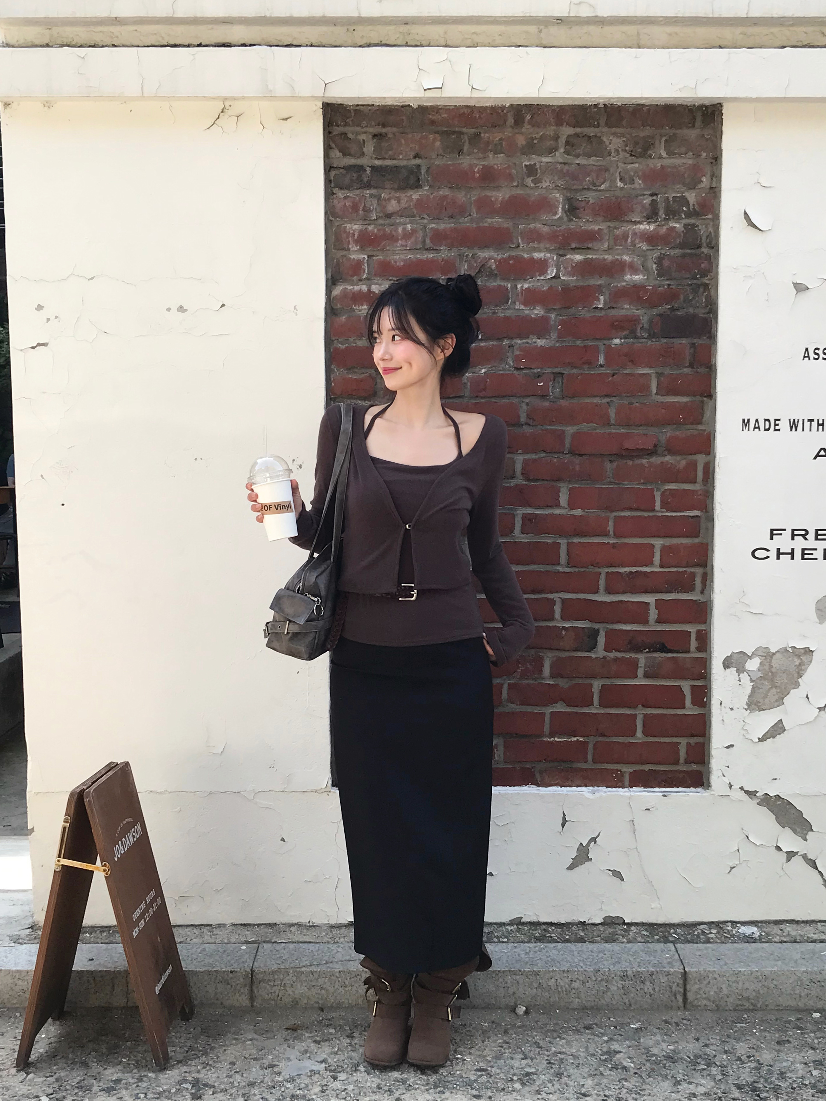 라이니 트임 밴딩 롱 스커트 (블랙, S)