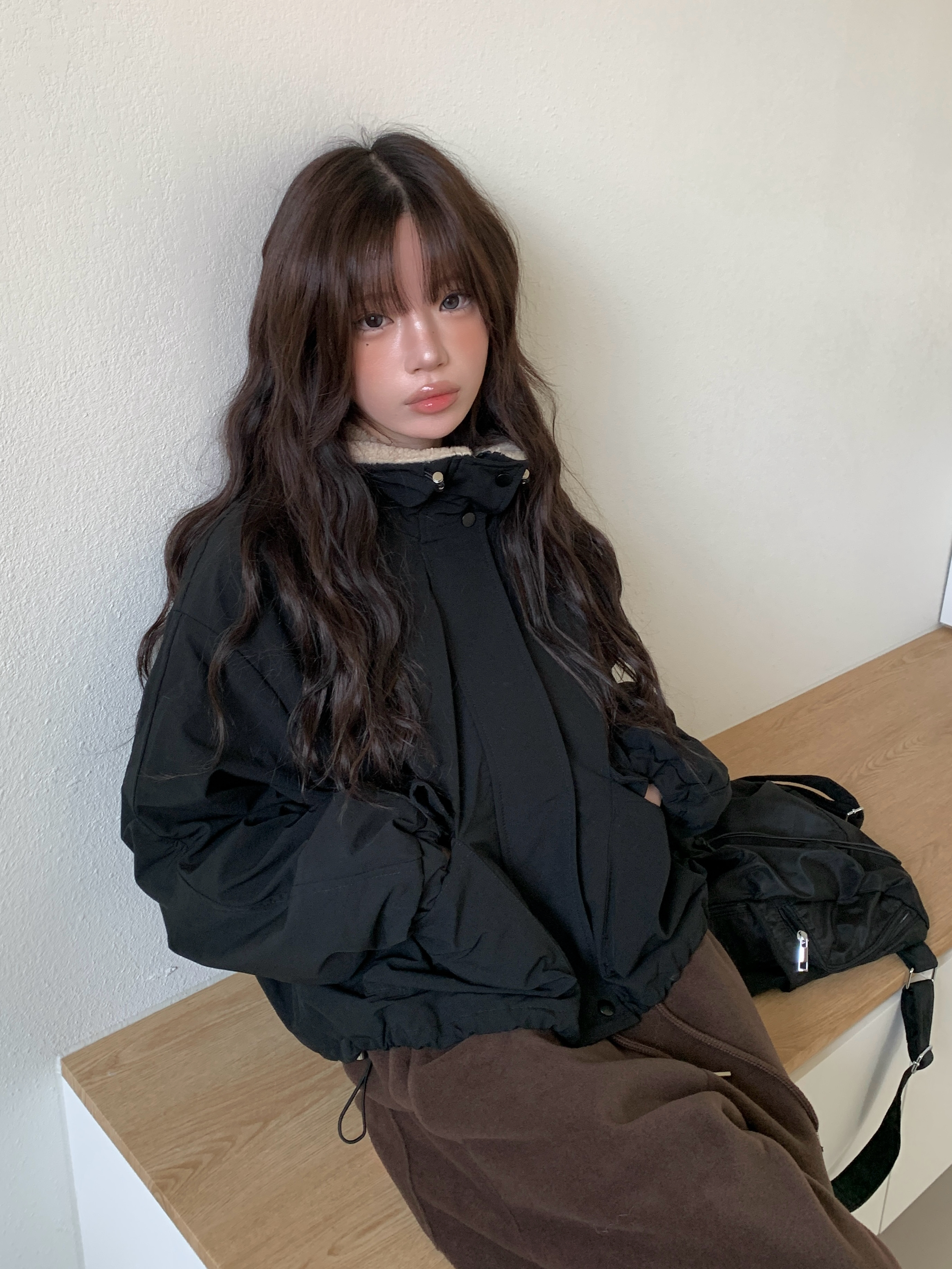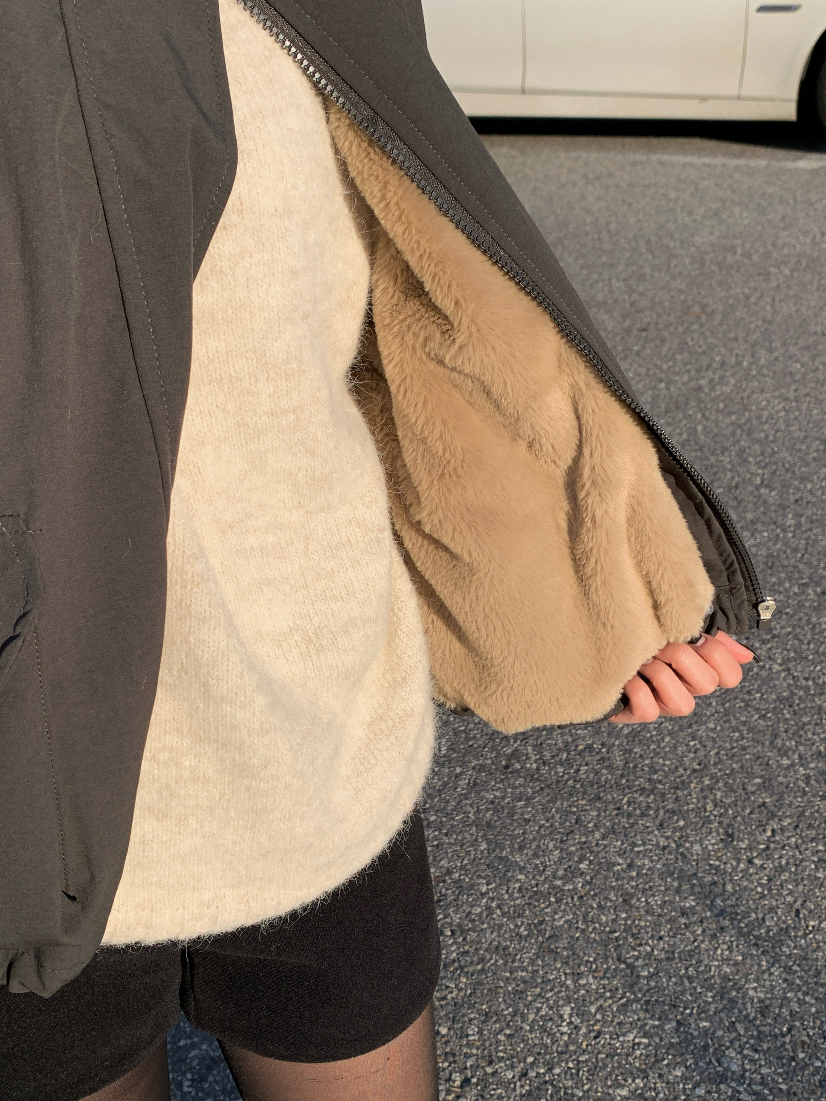 フェイクファー裏地で暖かく