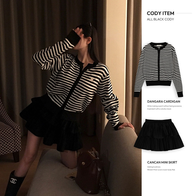 (ORIGINAL) ラッキー、ラウンドストライプカーディガン