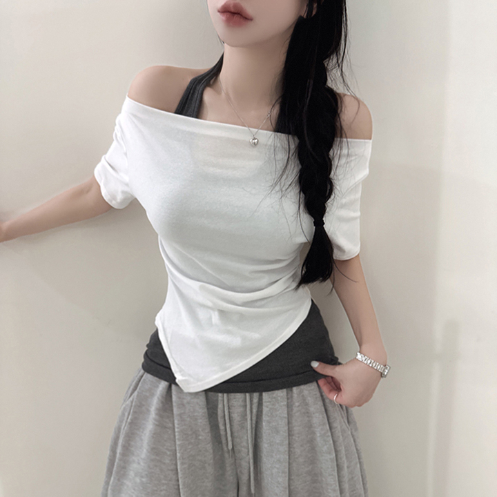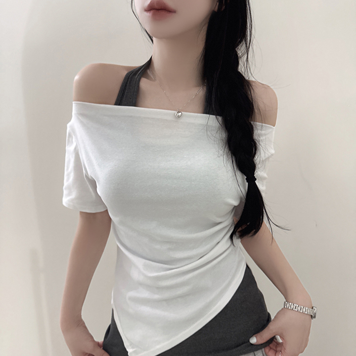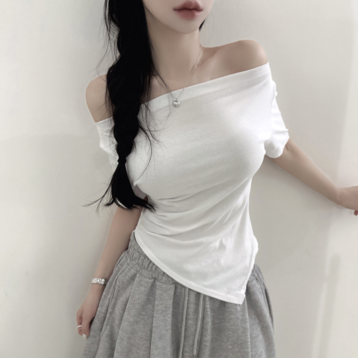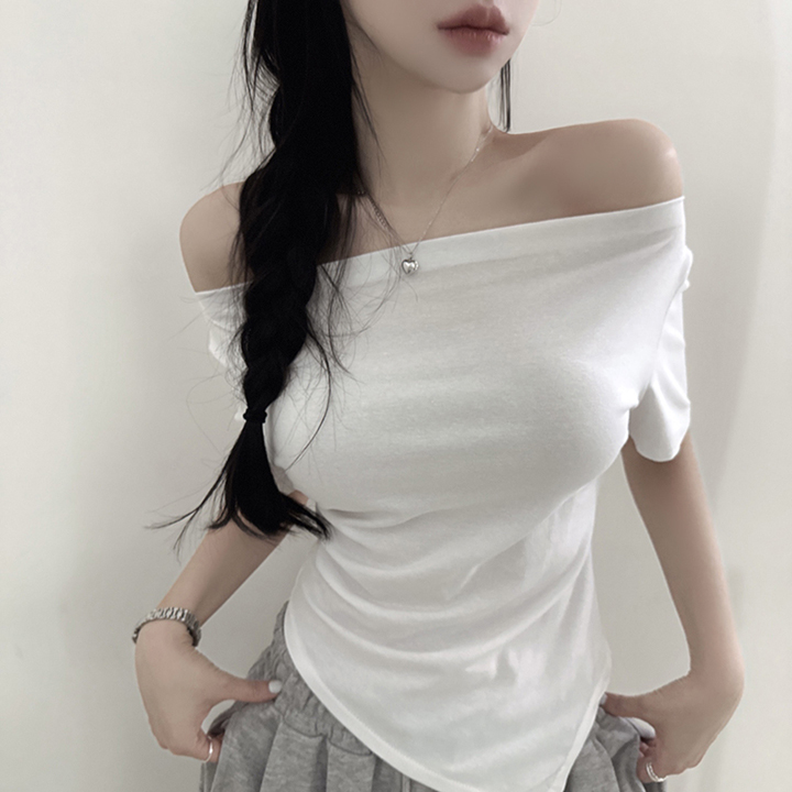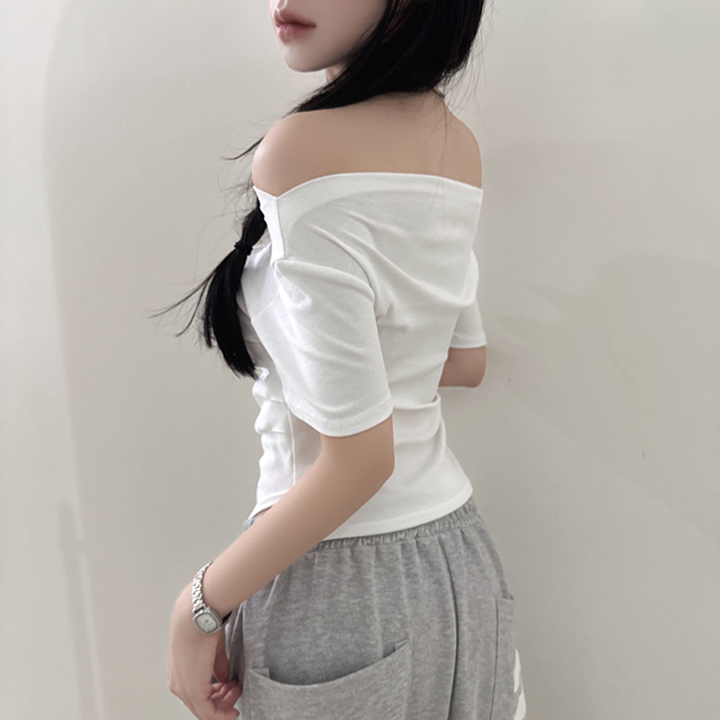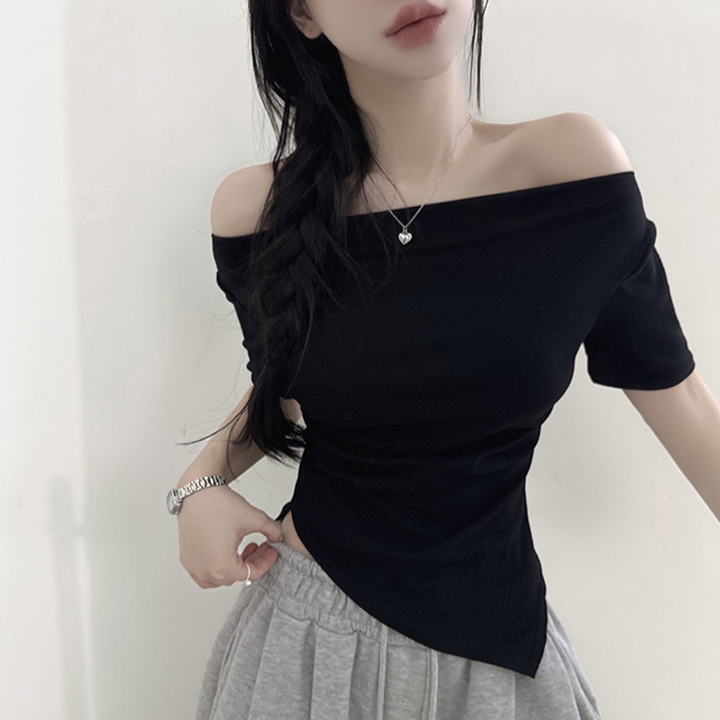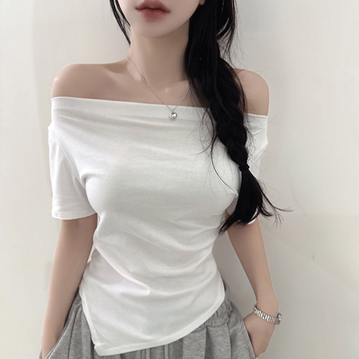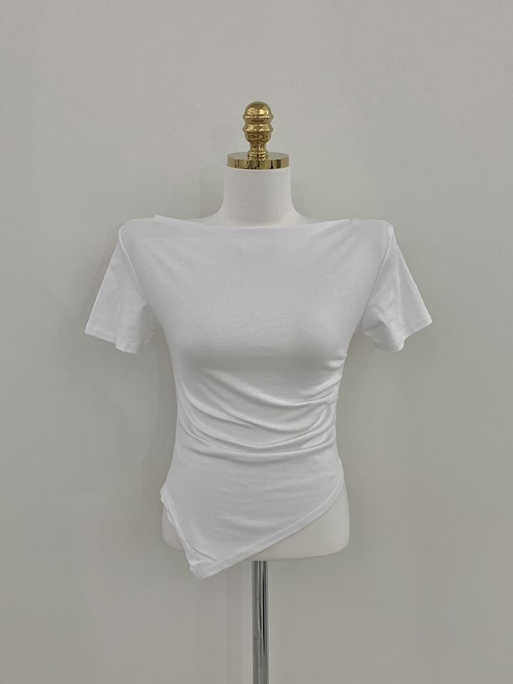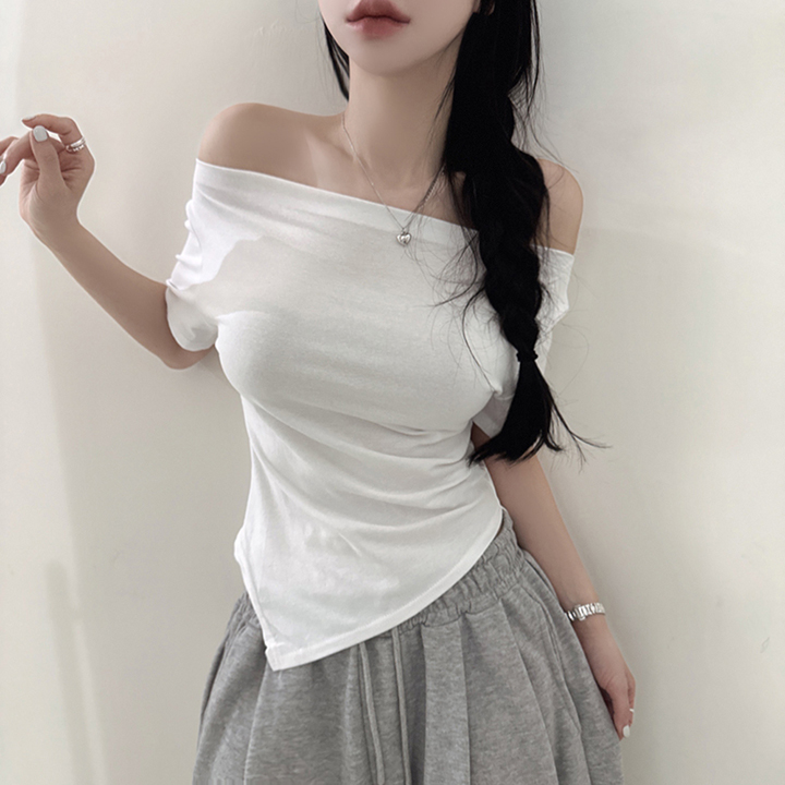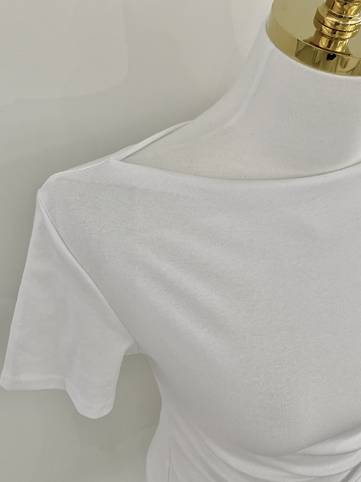 オフショルアンバランススリムフィット半袖Tシャツ