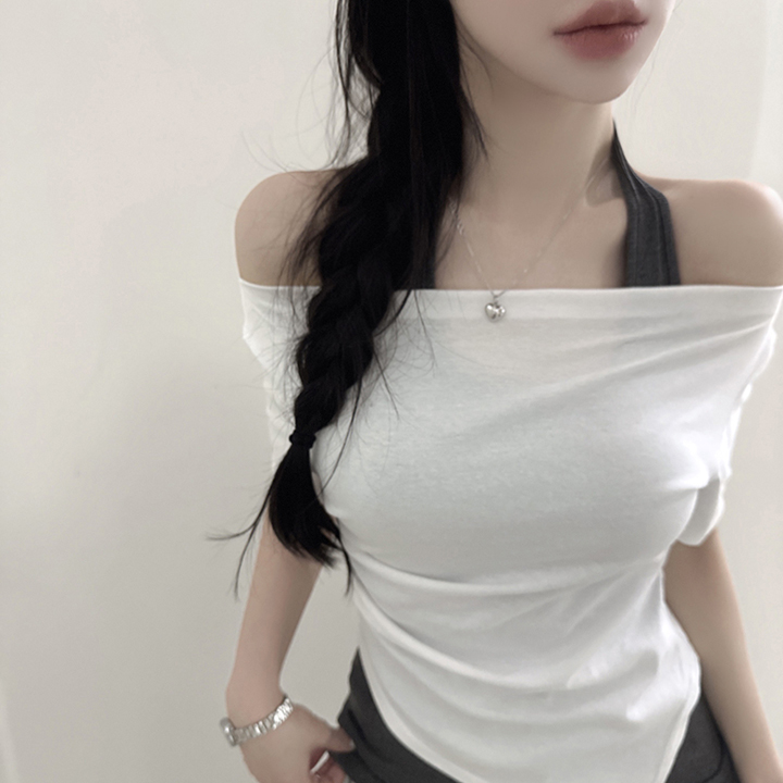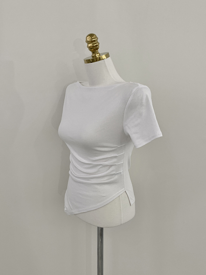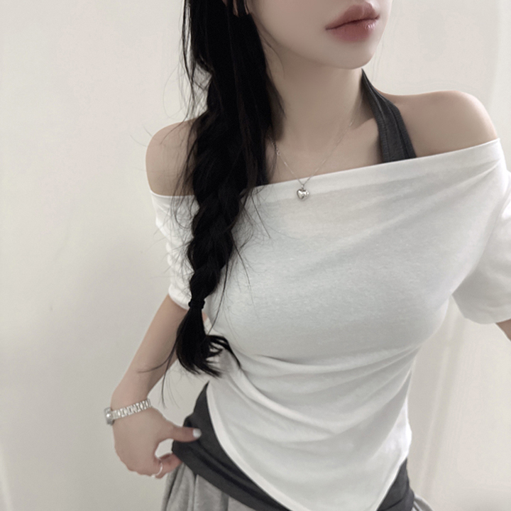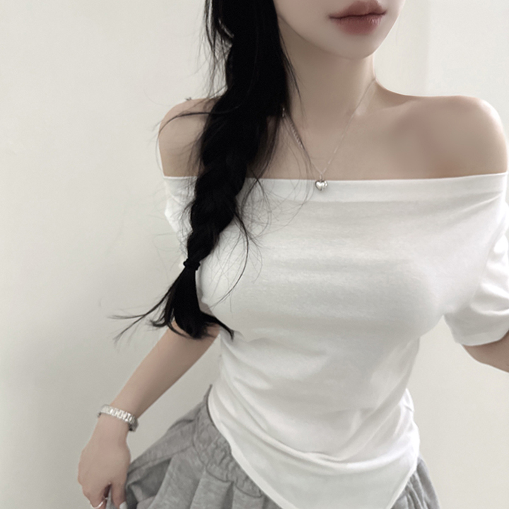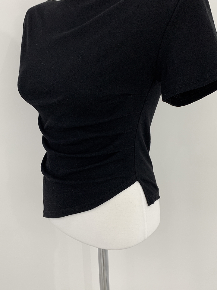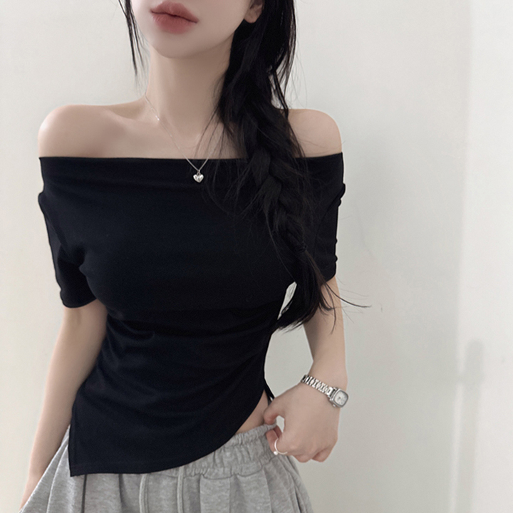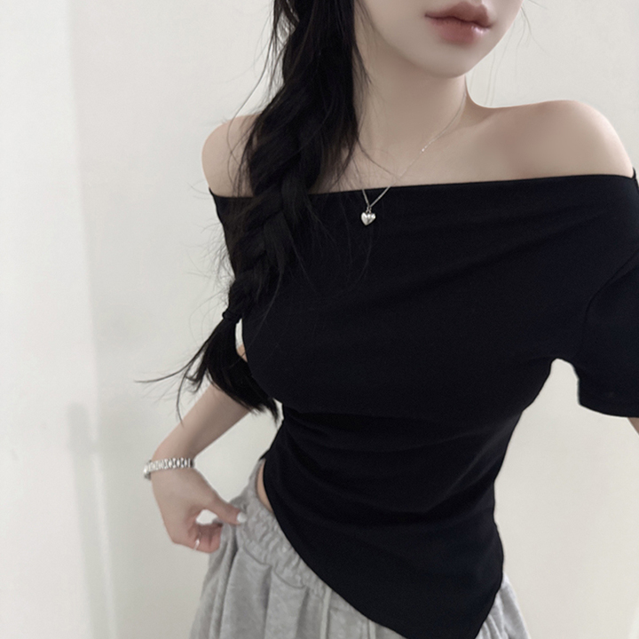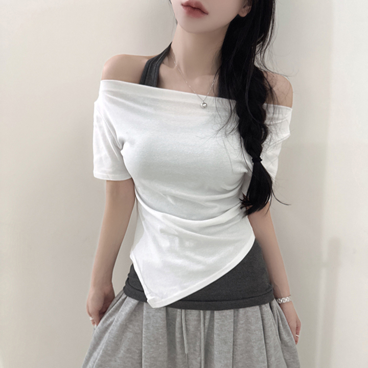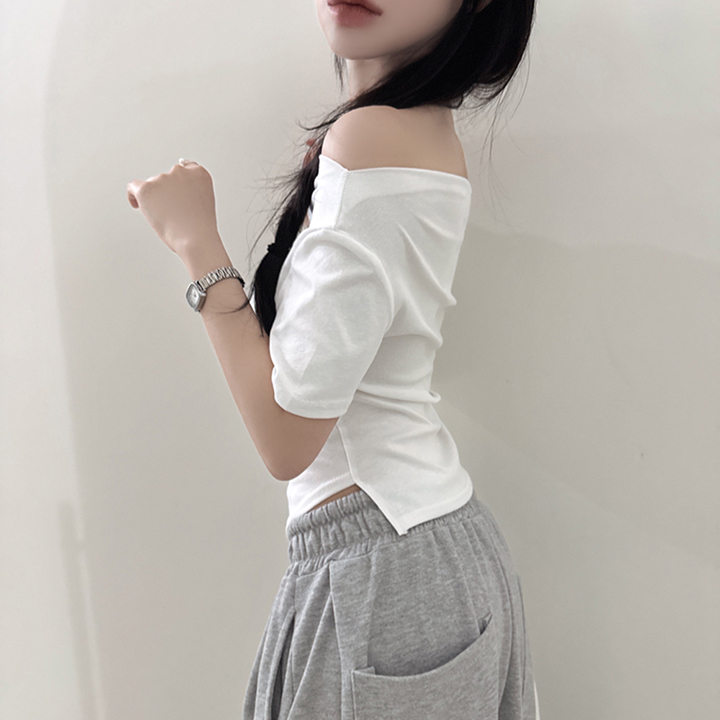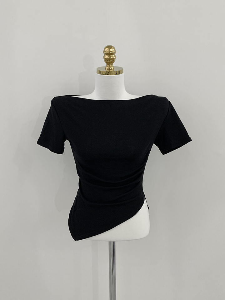 オフショルアンバランススリムフィット半袖Tシャツ