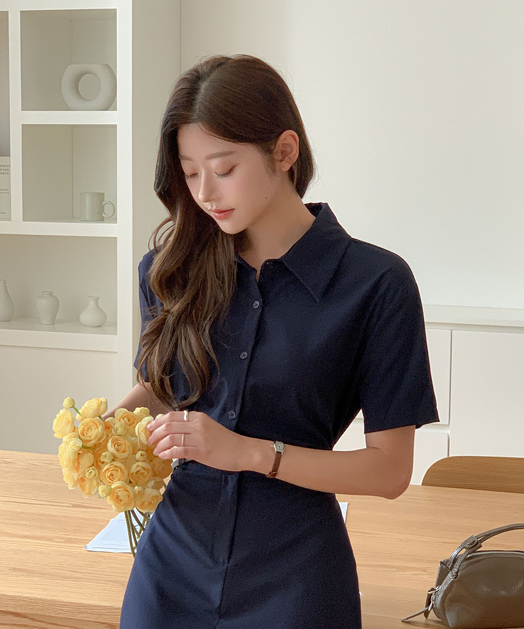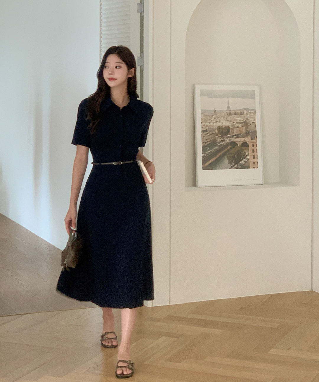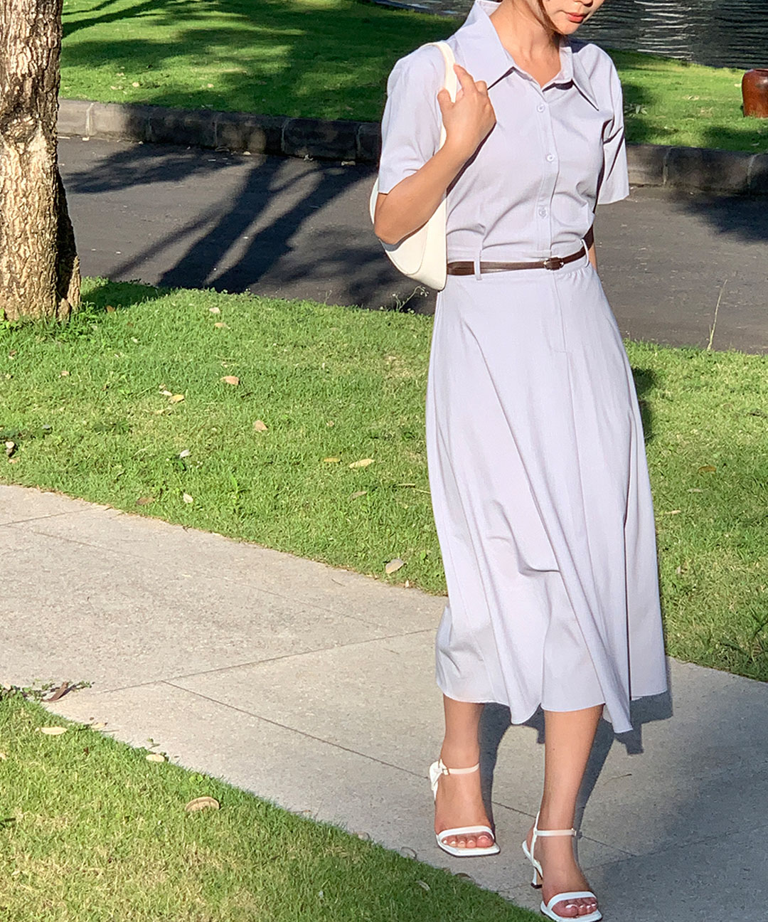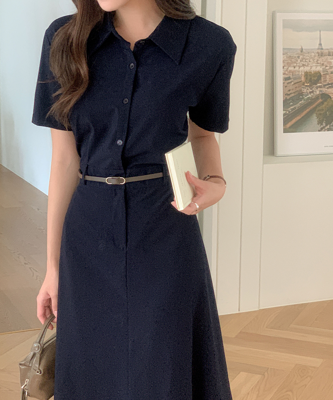 【オケージョン】[original/S-XL]ベルトタック入りシャツワンピース