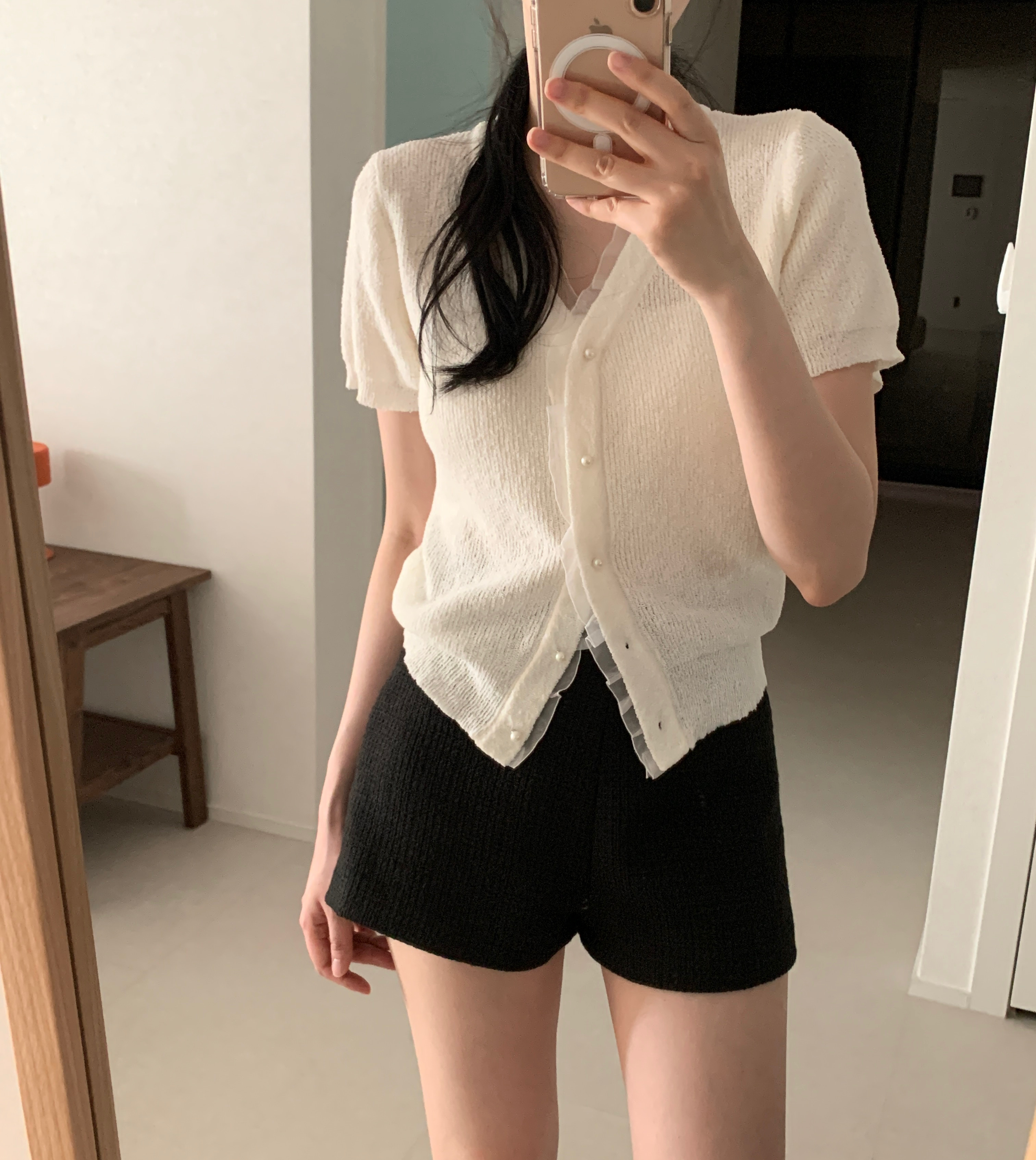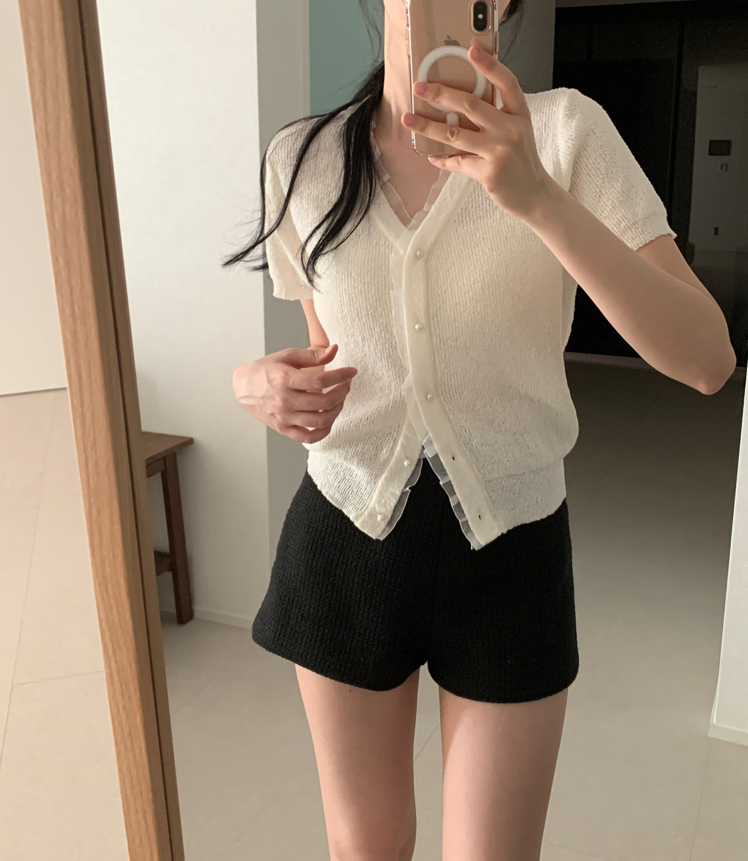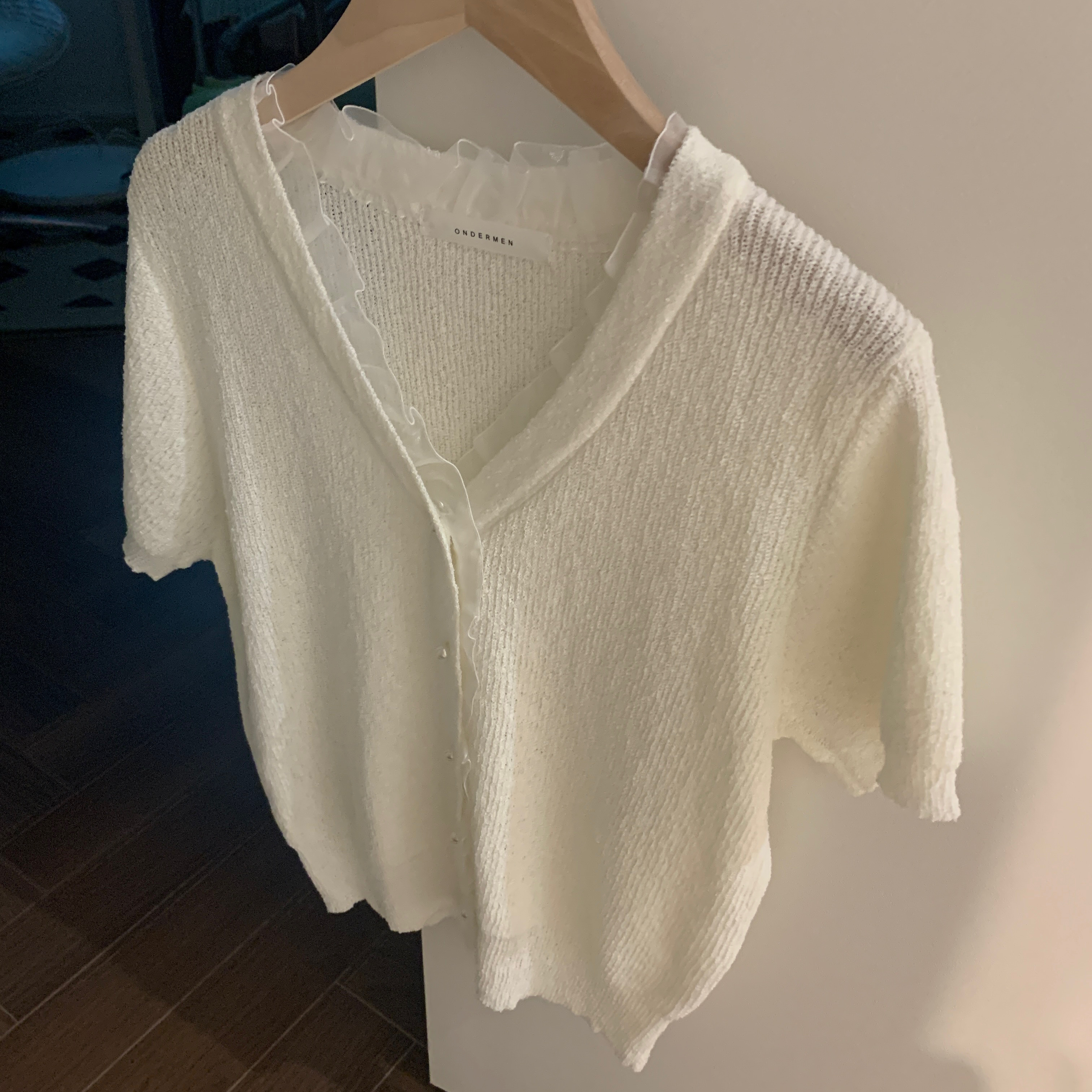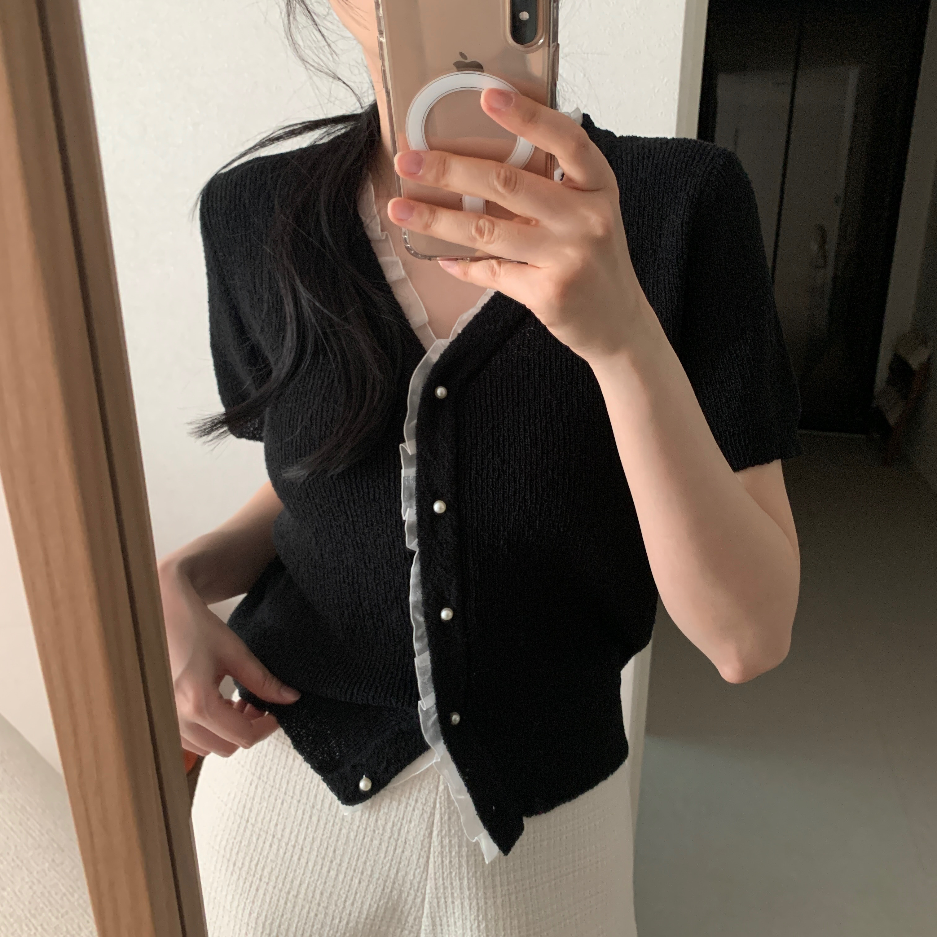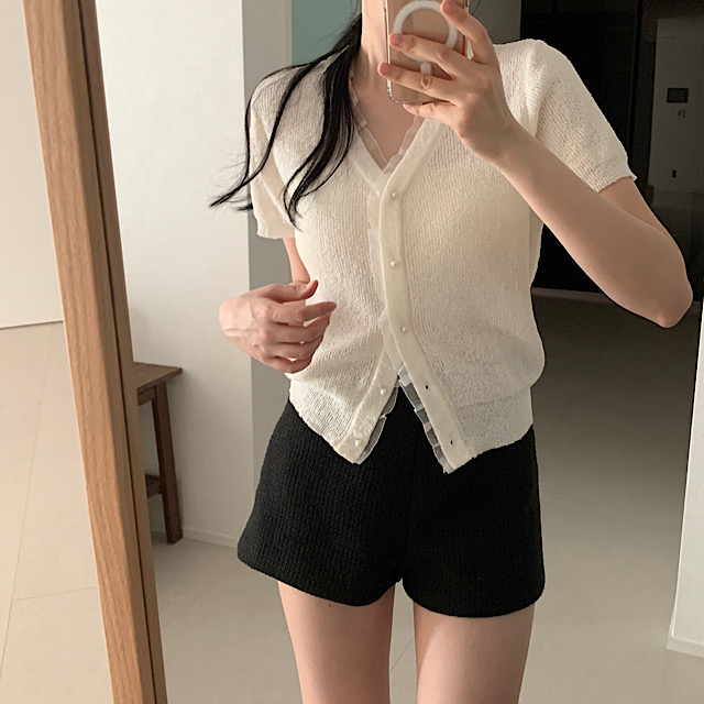 レースパール半袖カーディガン