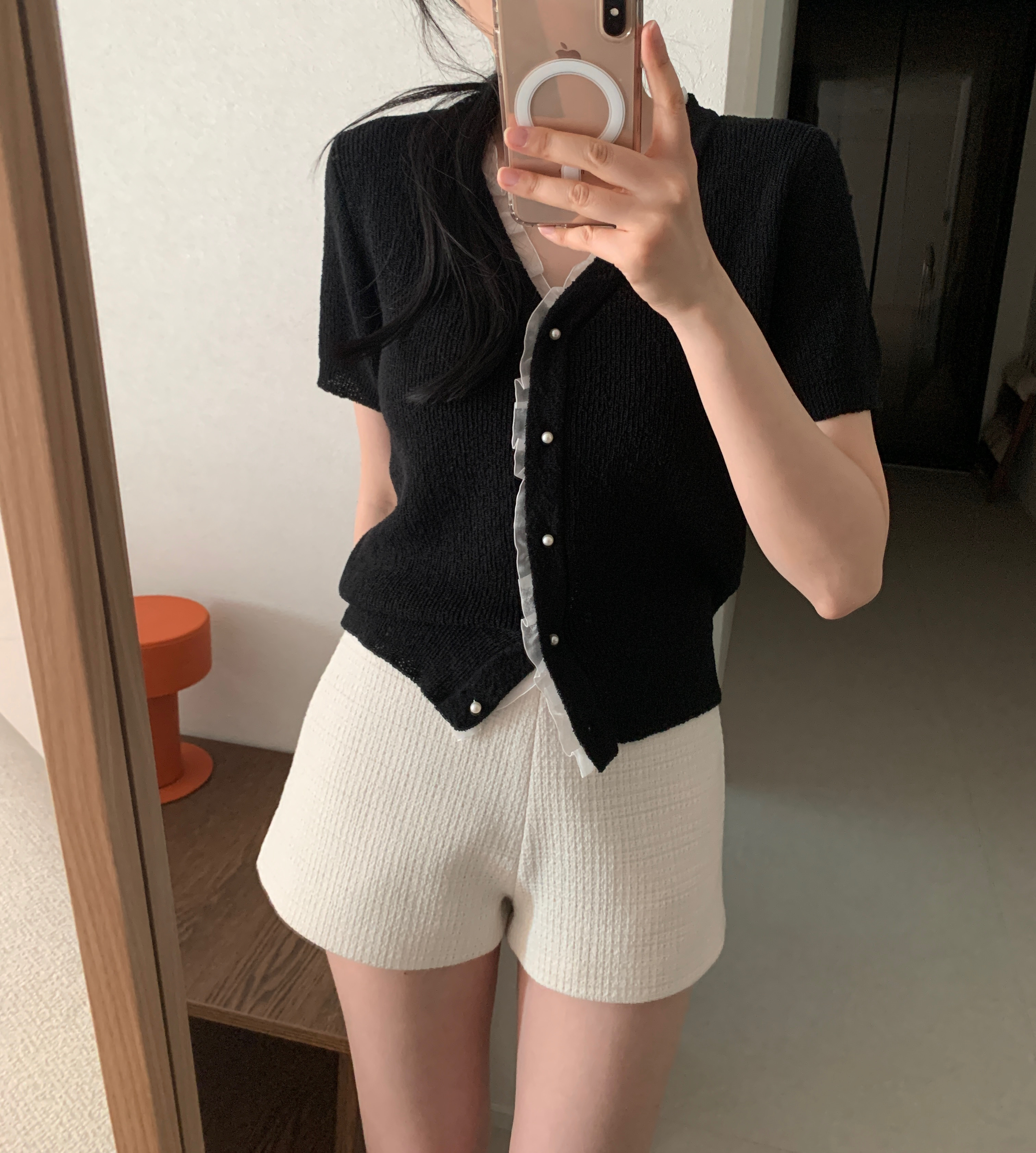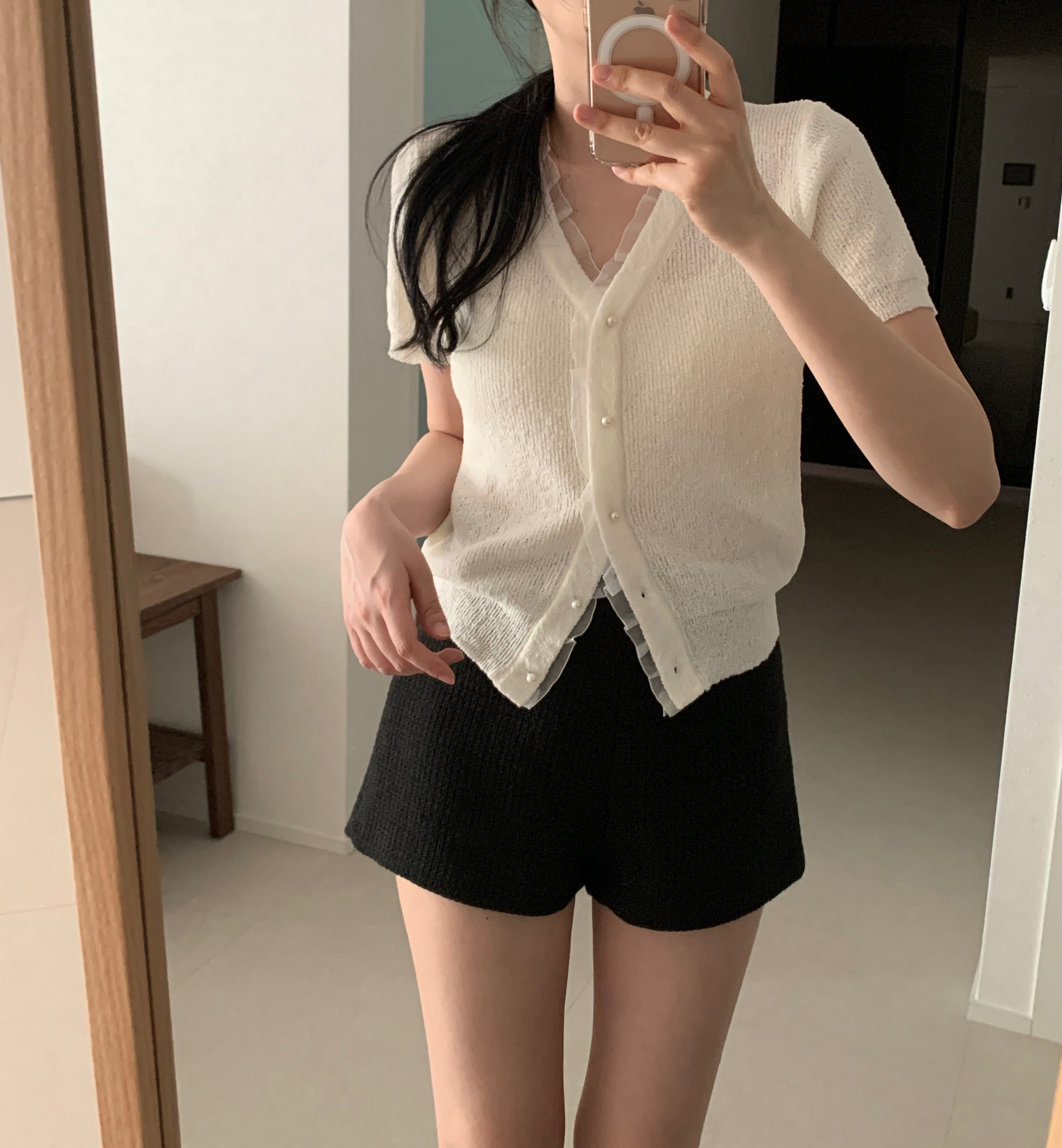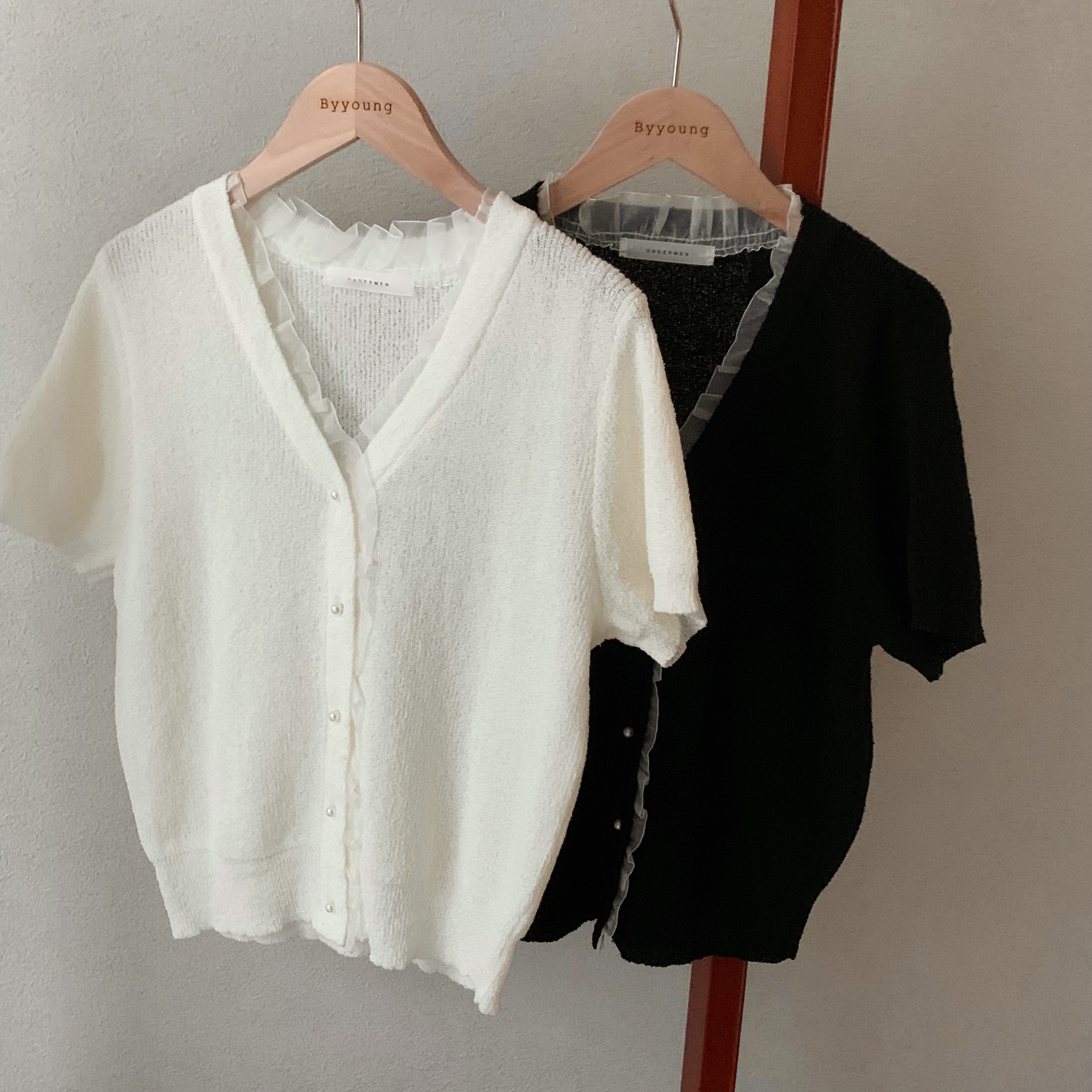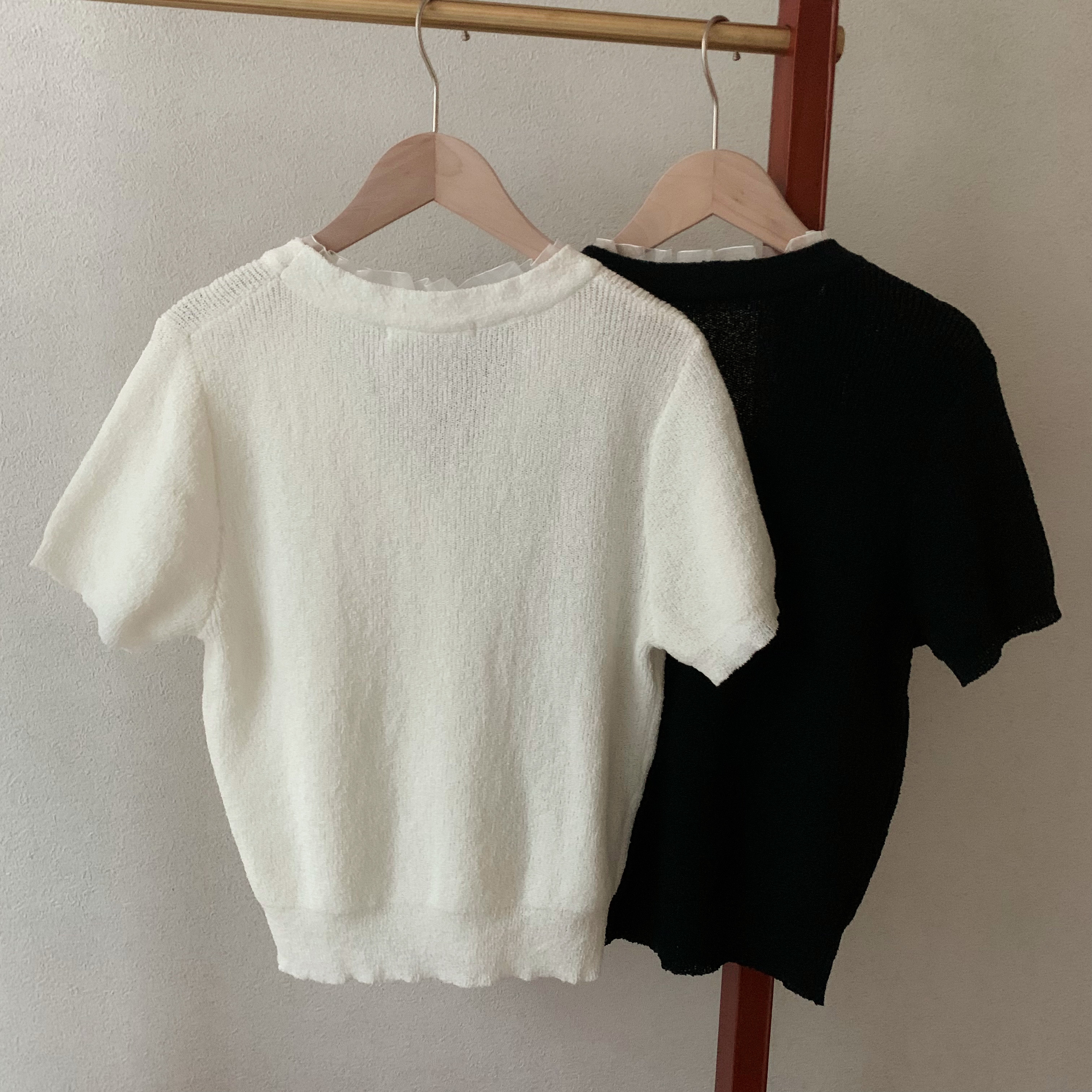 レースパール半袖カーディガン