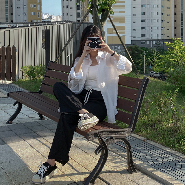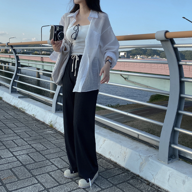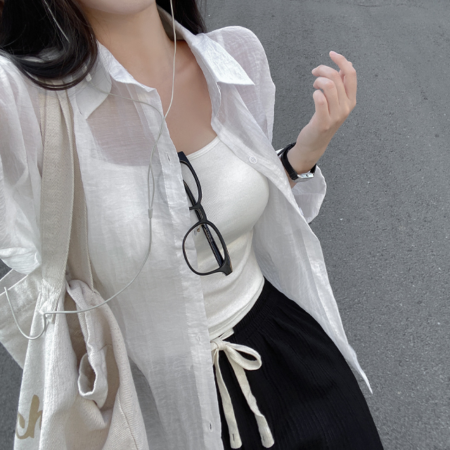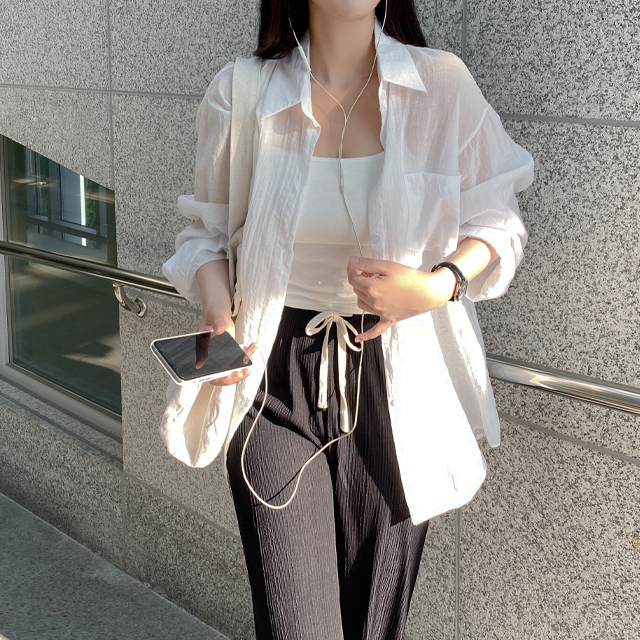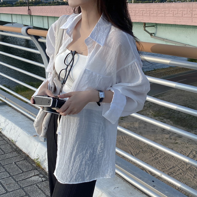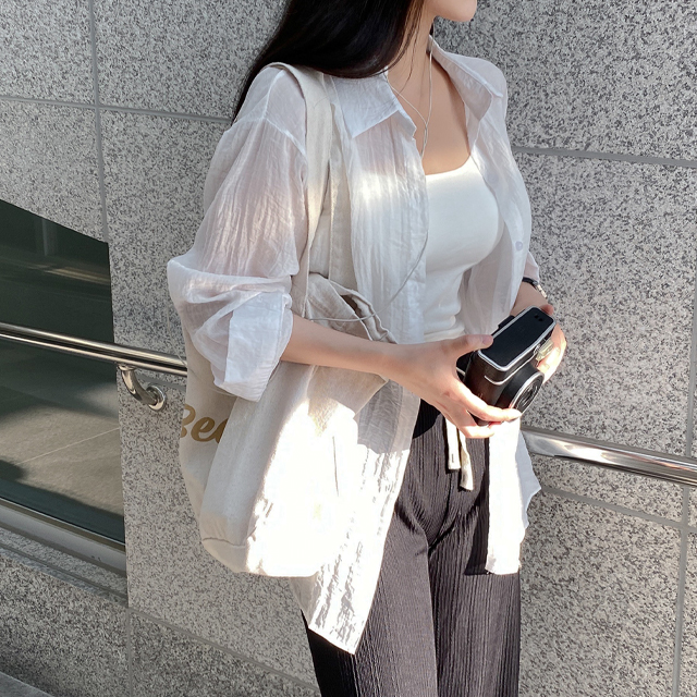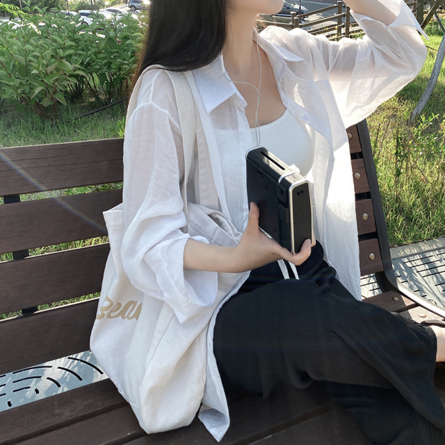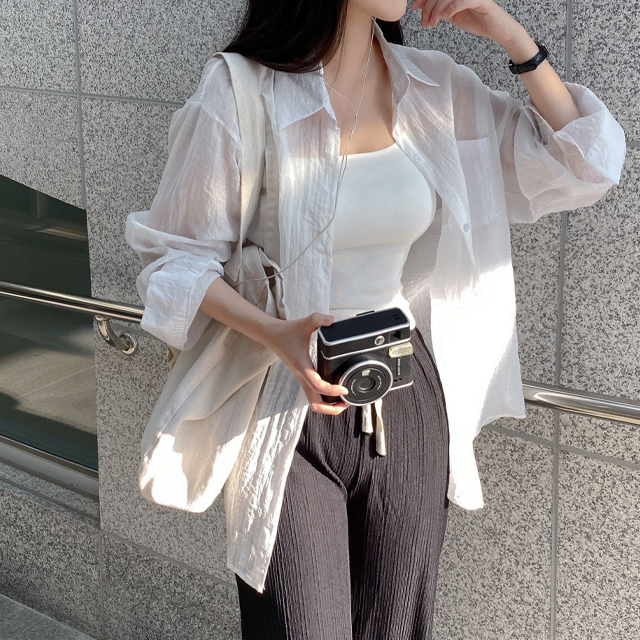 シャツオーバーサイズ長袖シースルーロング