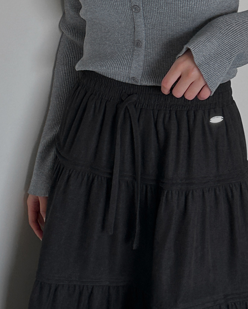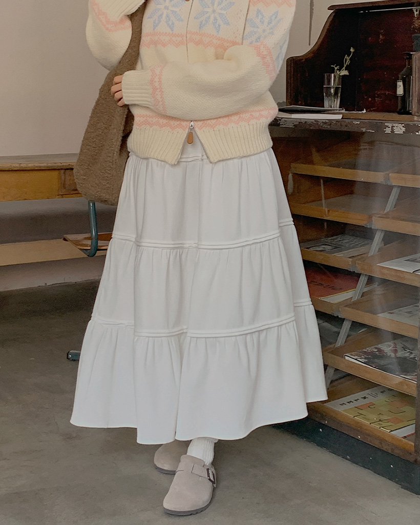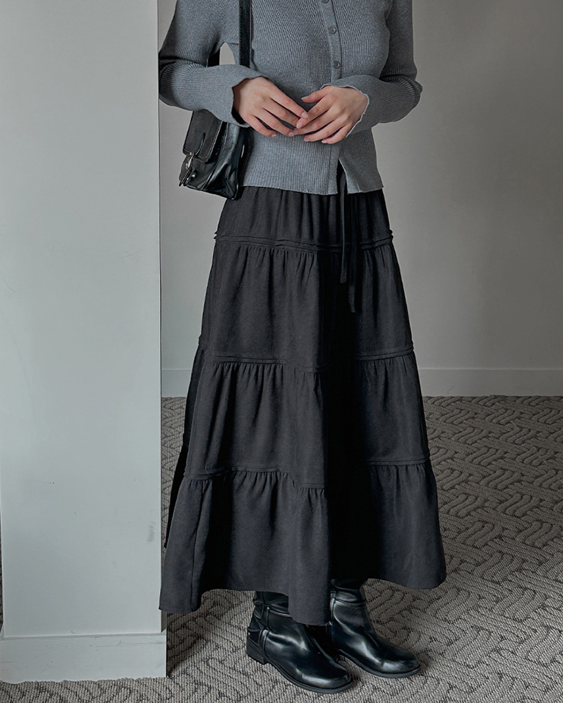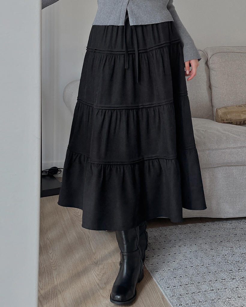 ピーチ起毛ピンタックウエストゴムカンカンロングスカート