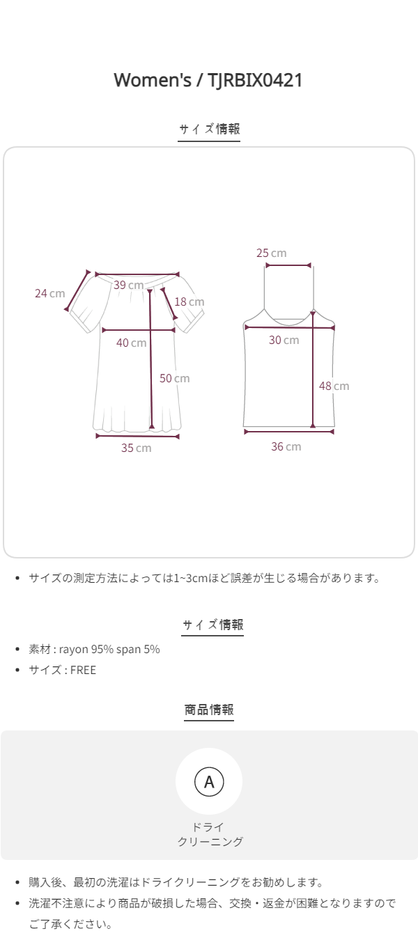 ニット類の場合、他の素材より誤差が生じる場合があります。