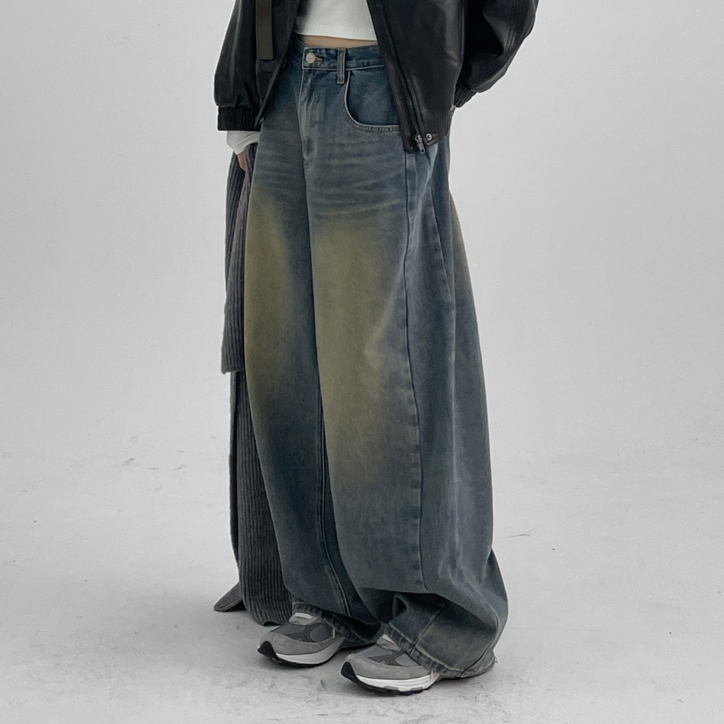 UNISEX カゲルウォッシュバルーン切開デニムパンツ