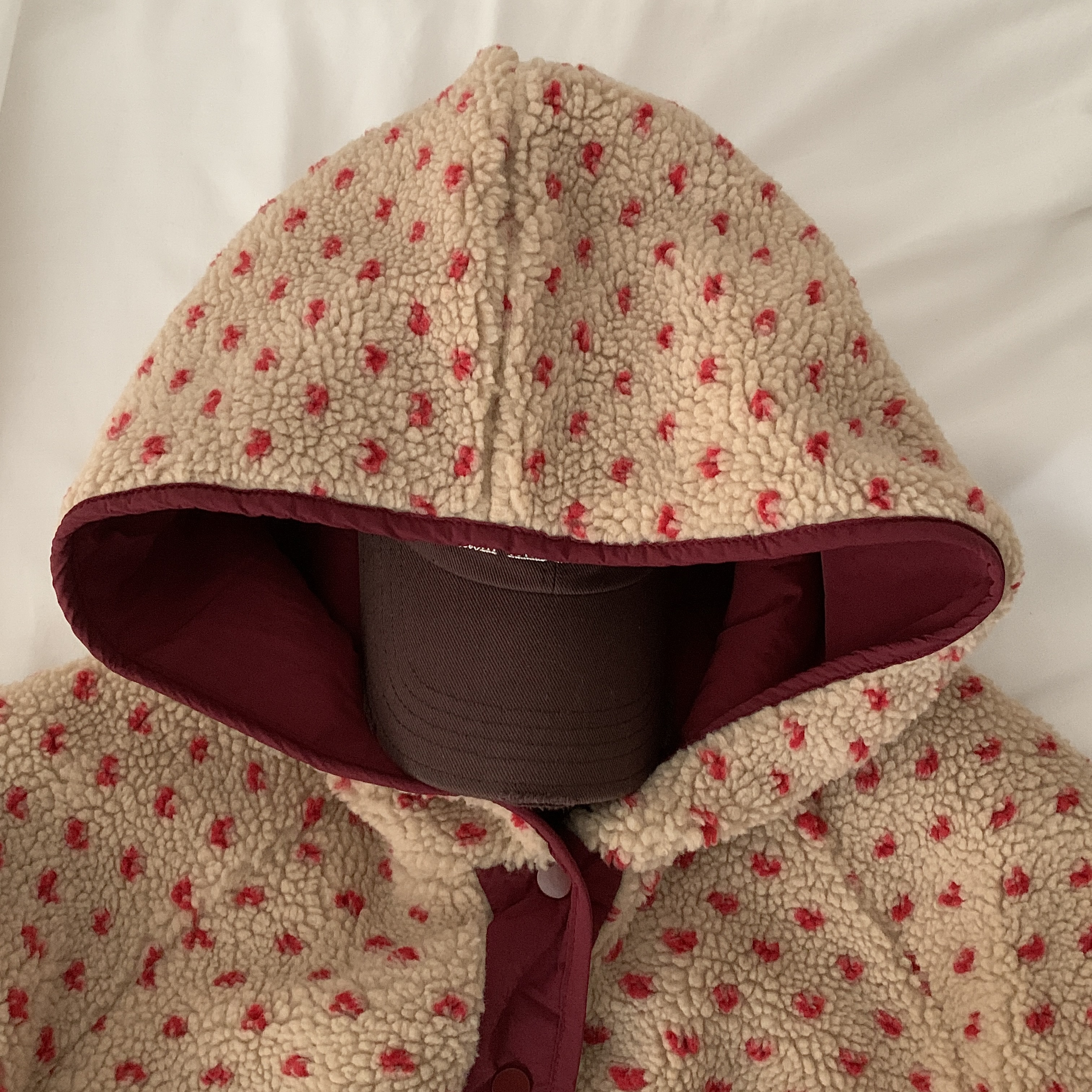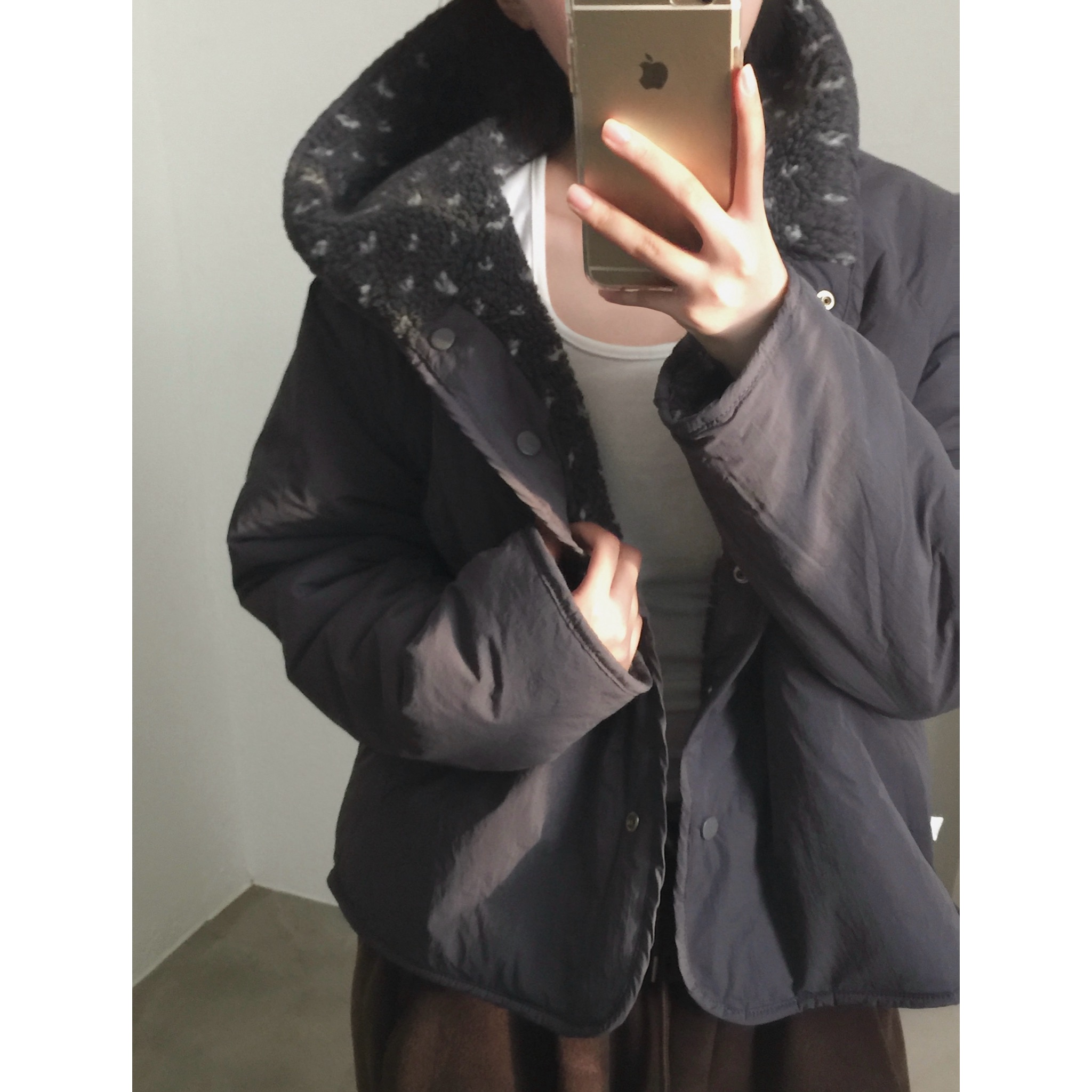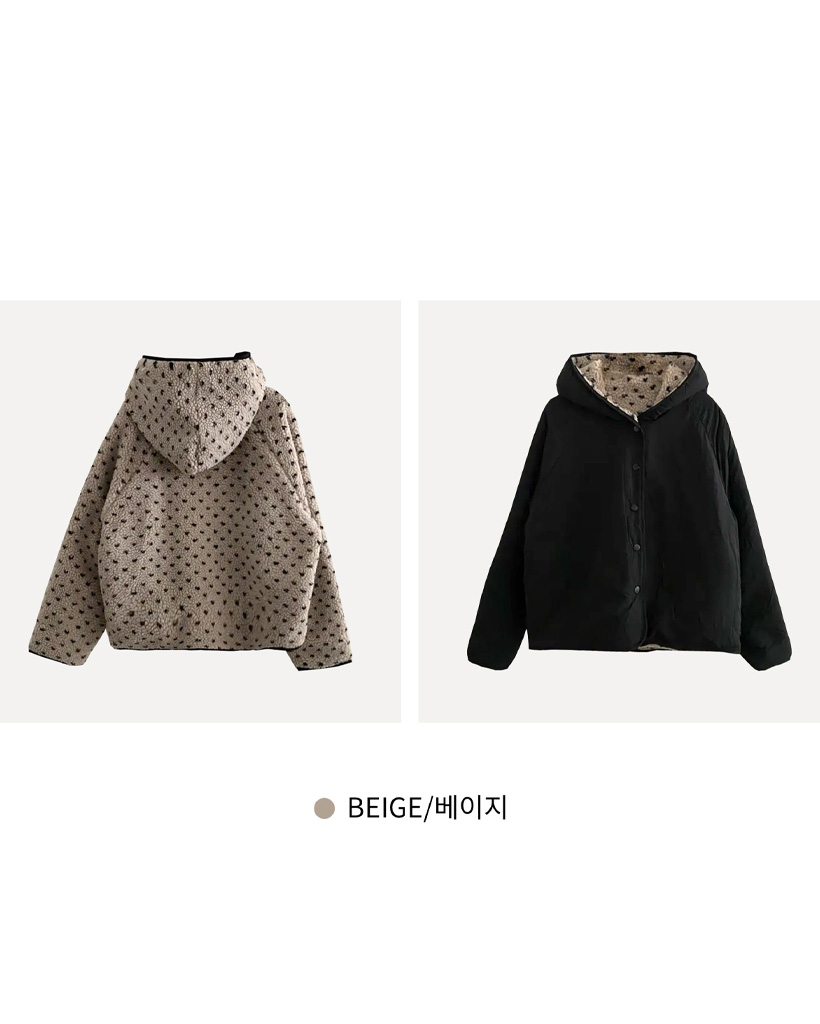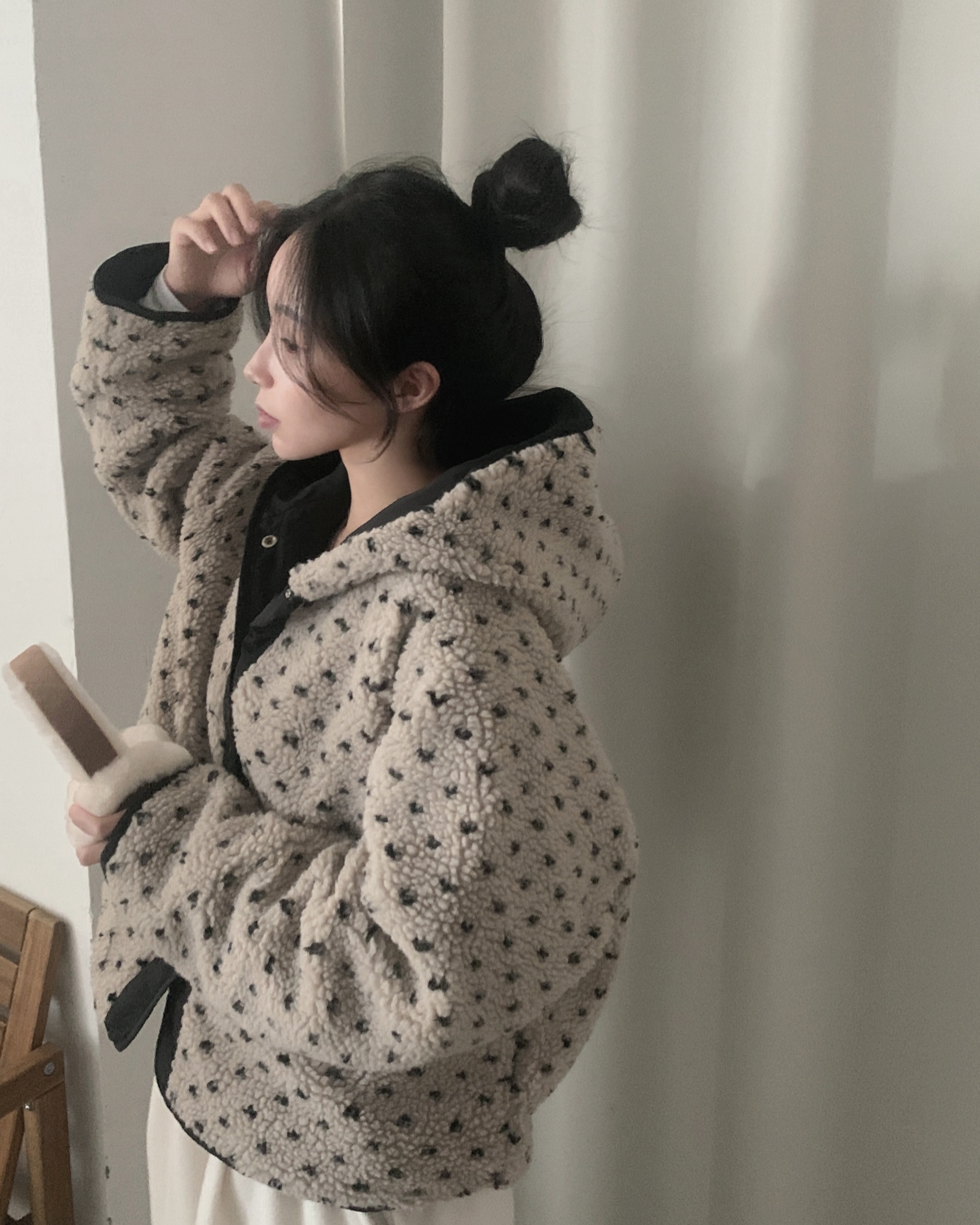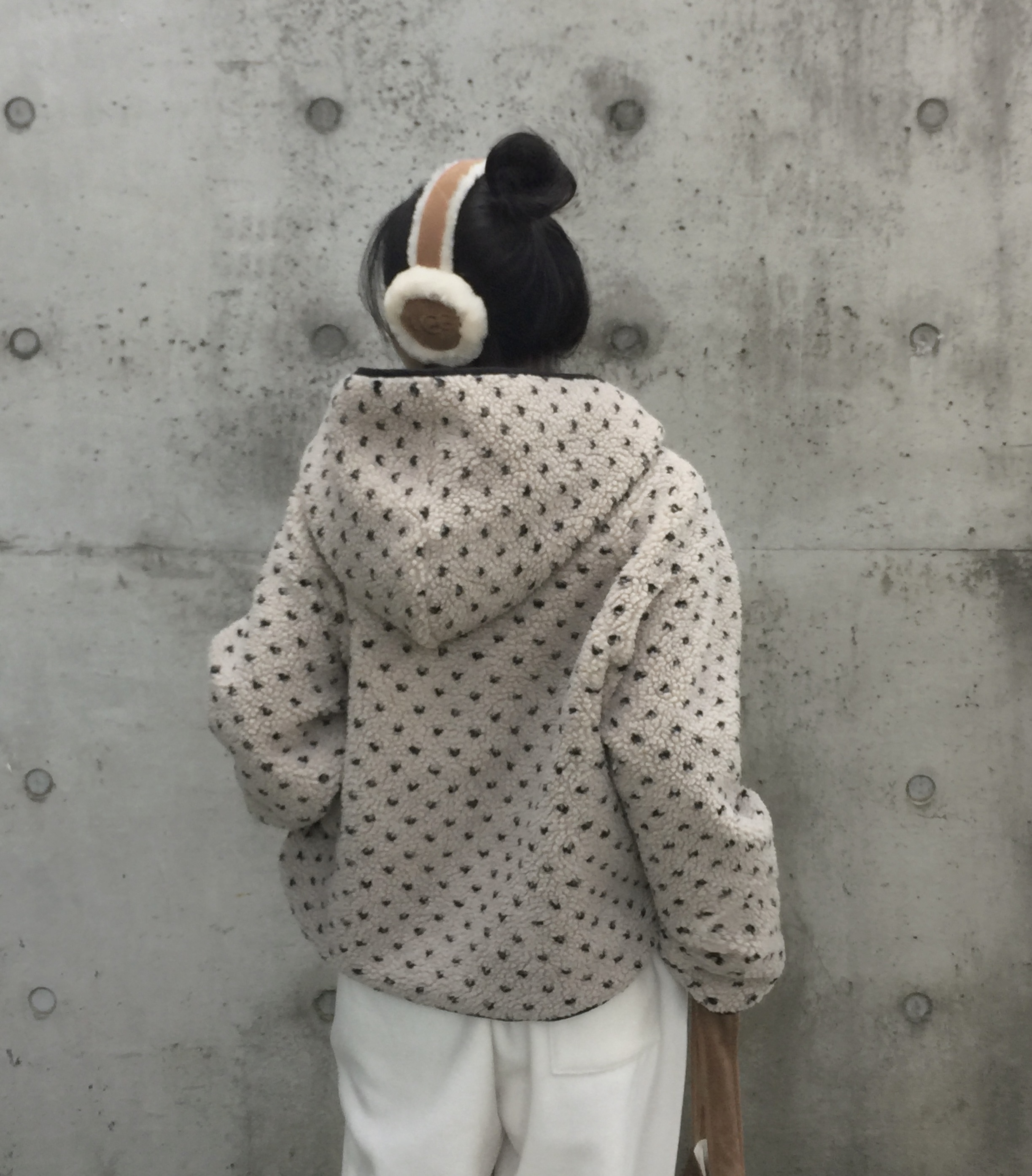 リバーシブル ドット柄 オーバーサイズ フード付き ボアフリース 中綿パーカー