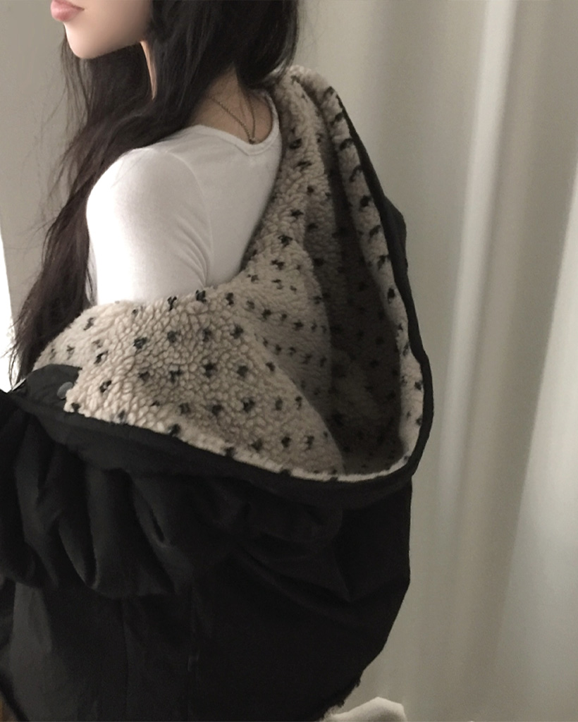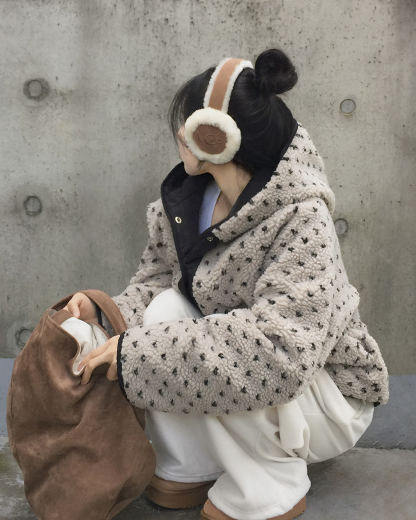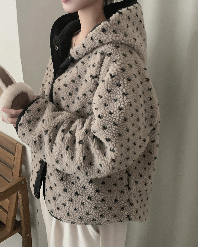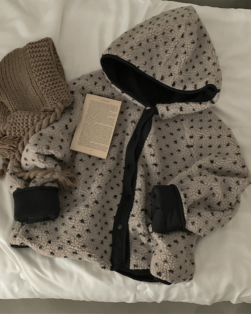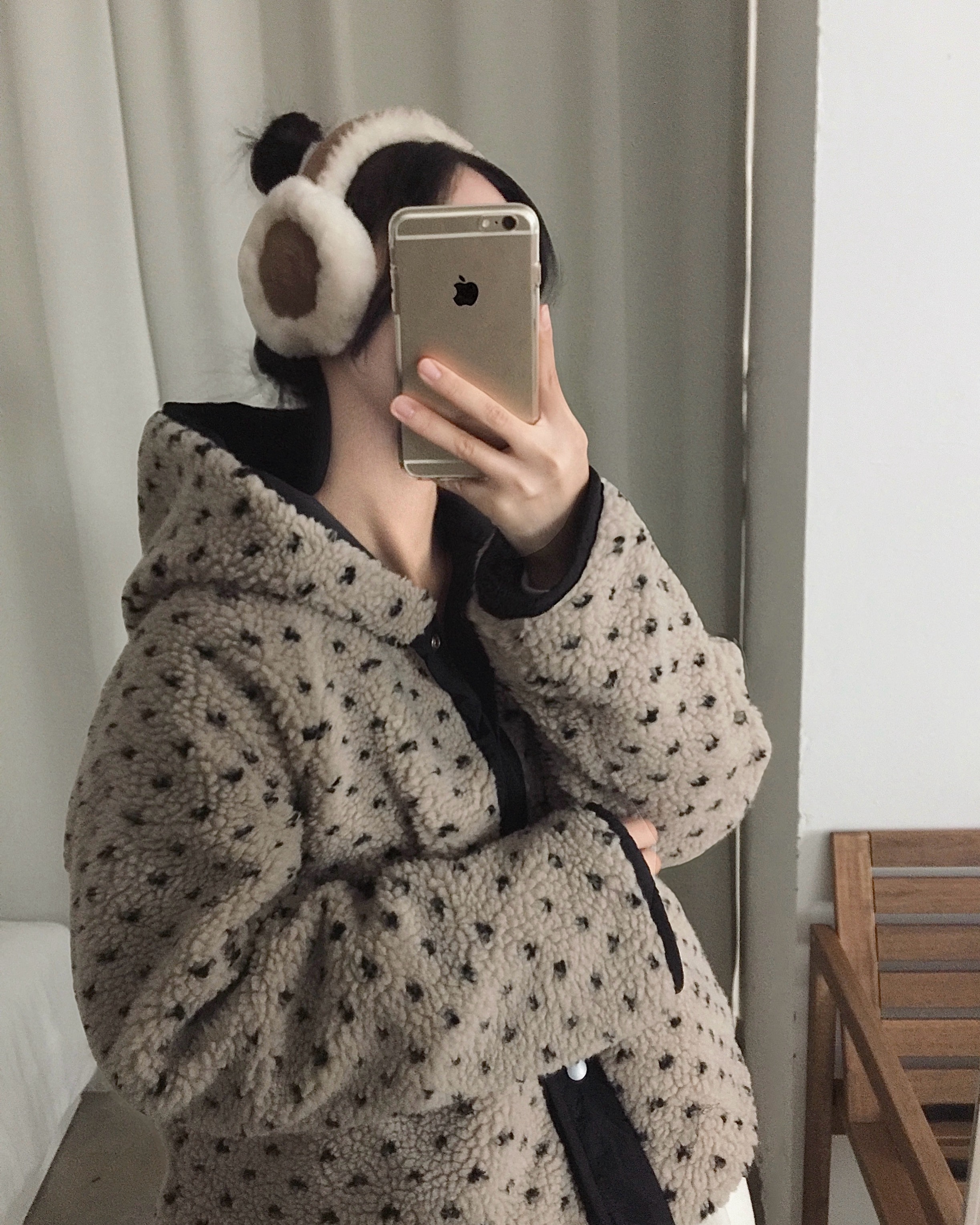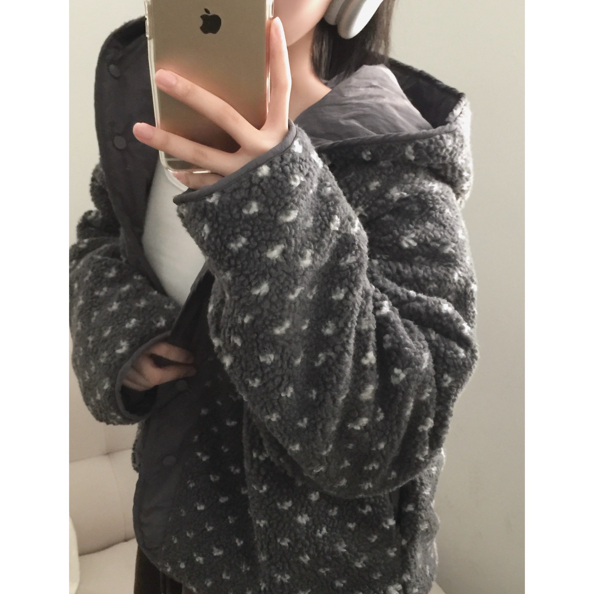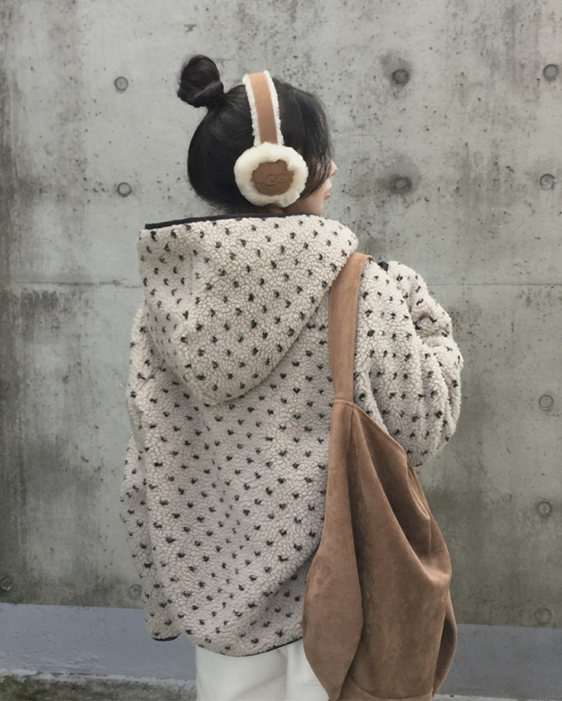 リバーシブル ドット柄 オーバーサイズ フード付き ボアフリース 中綿パーカー