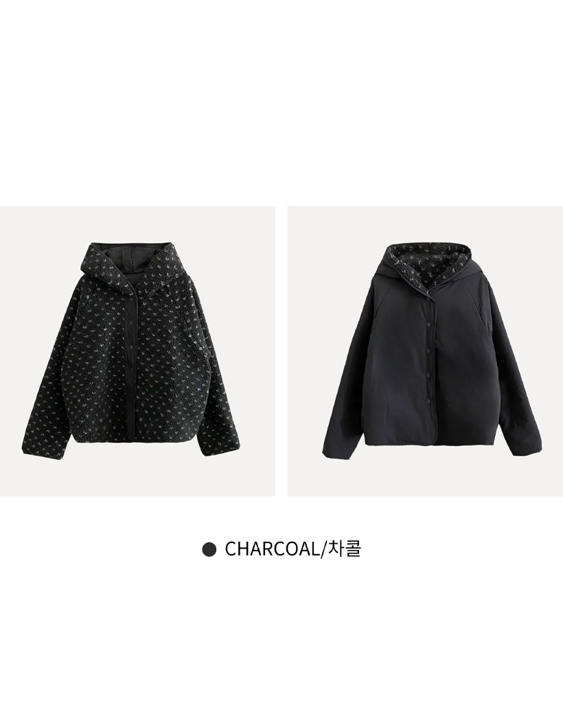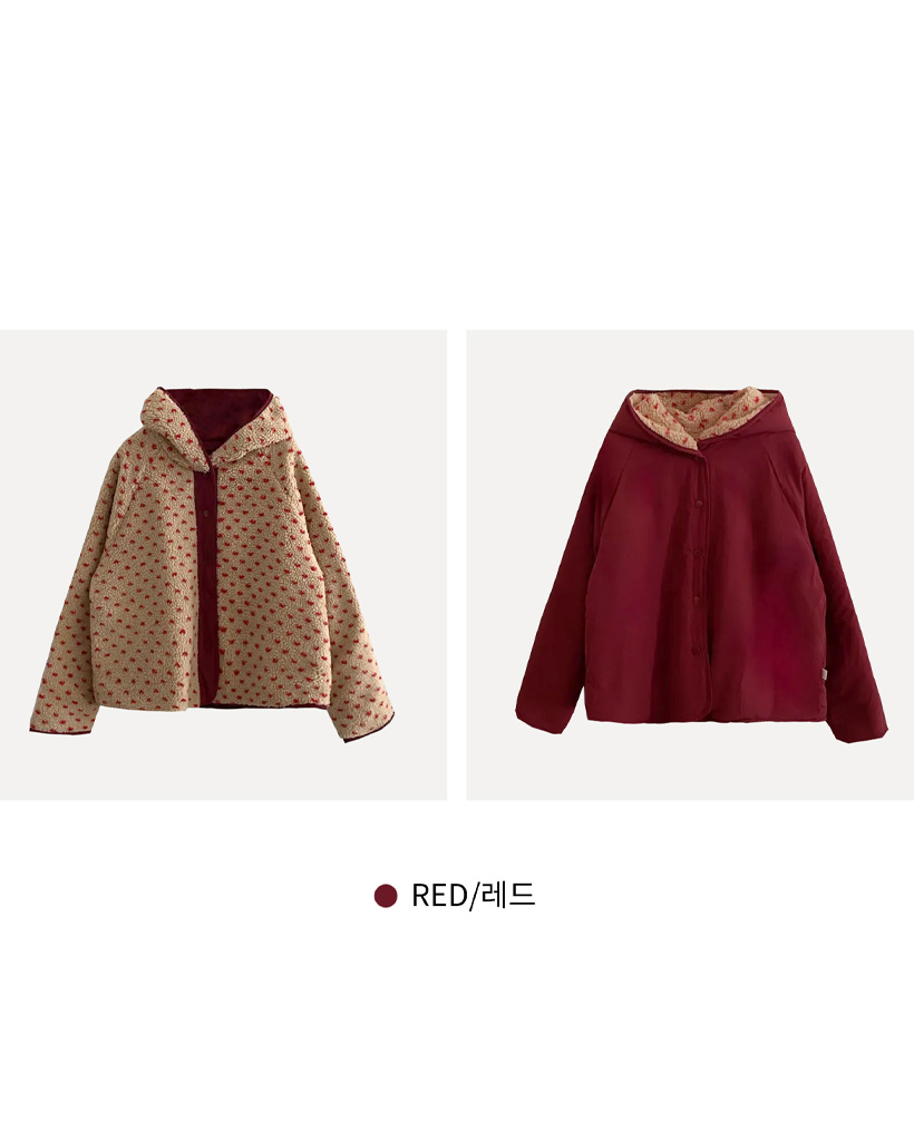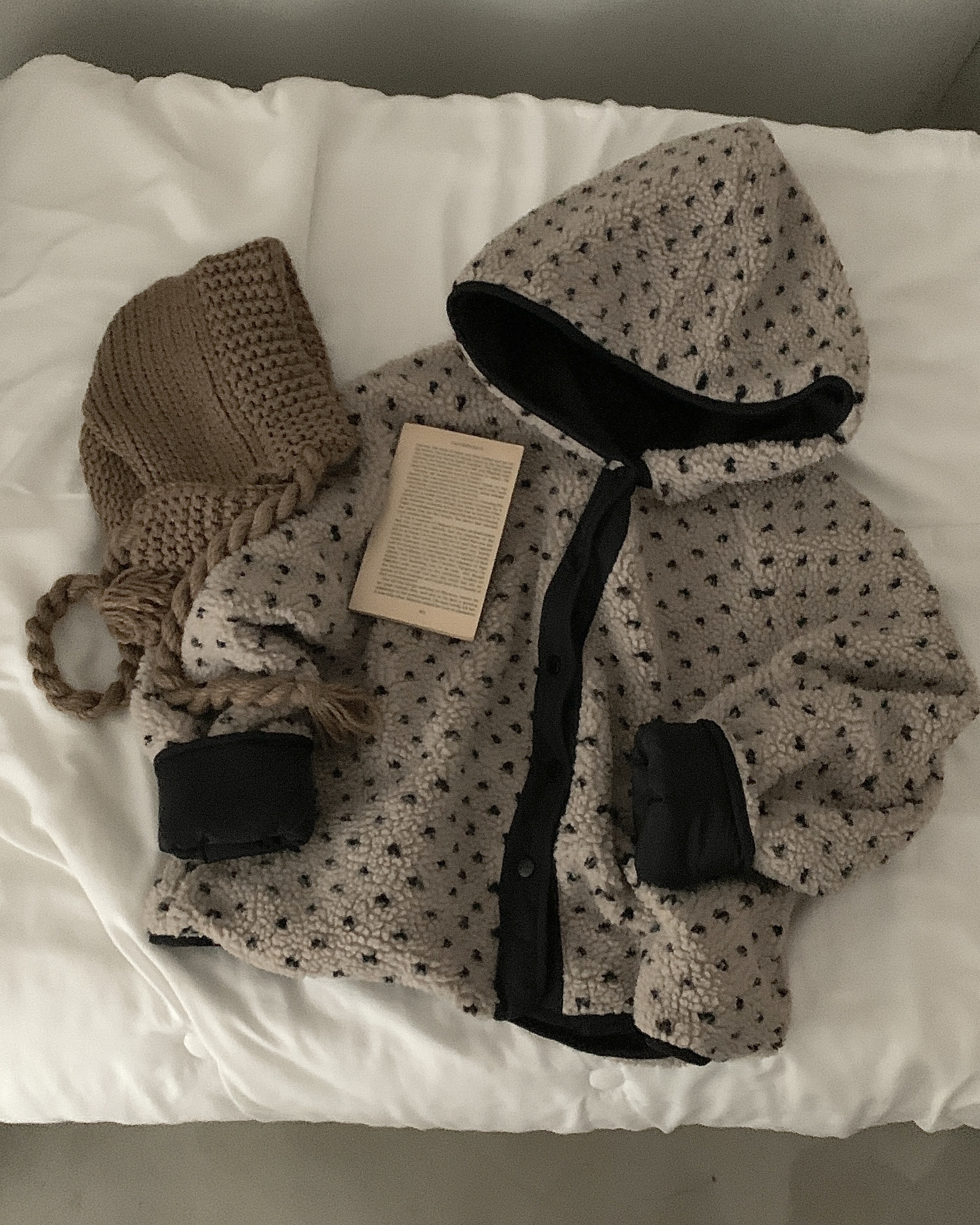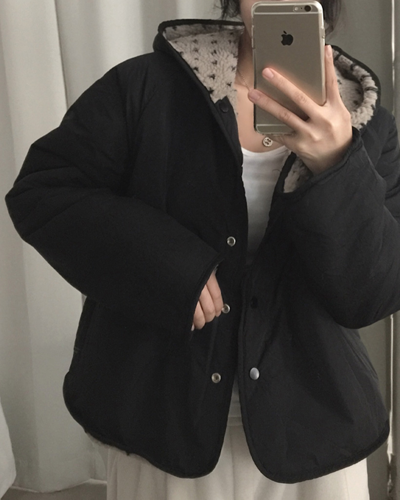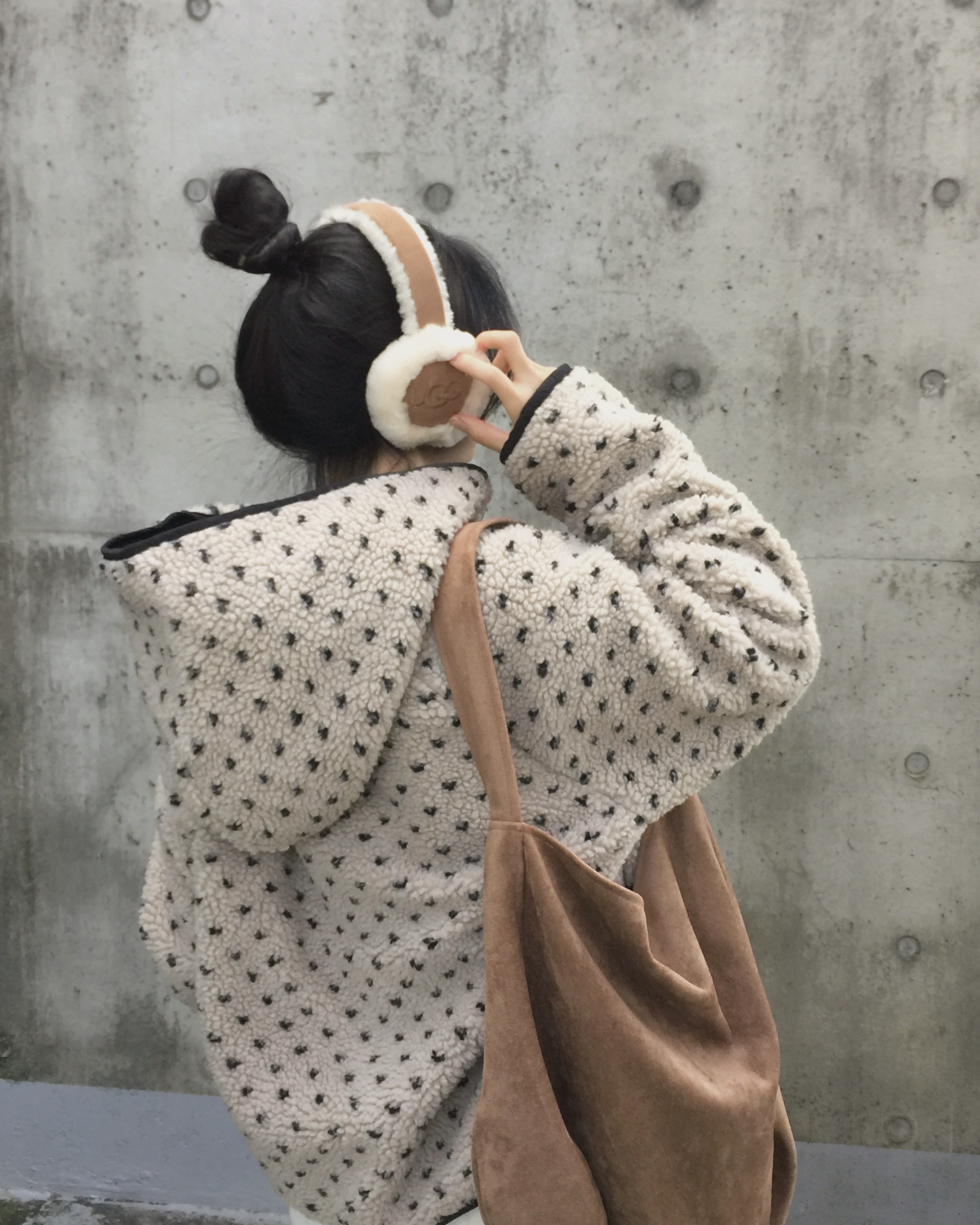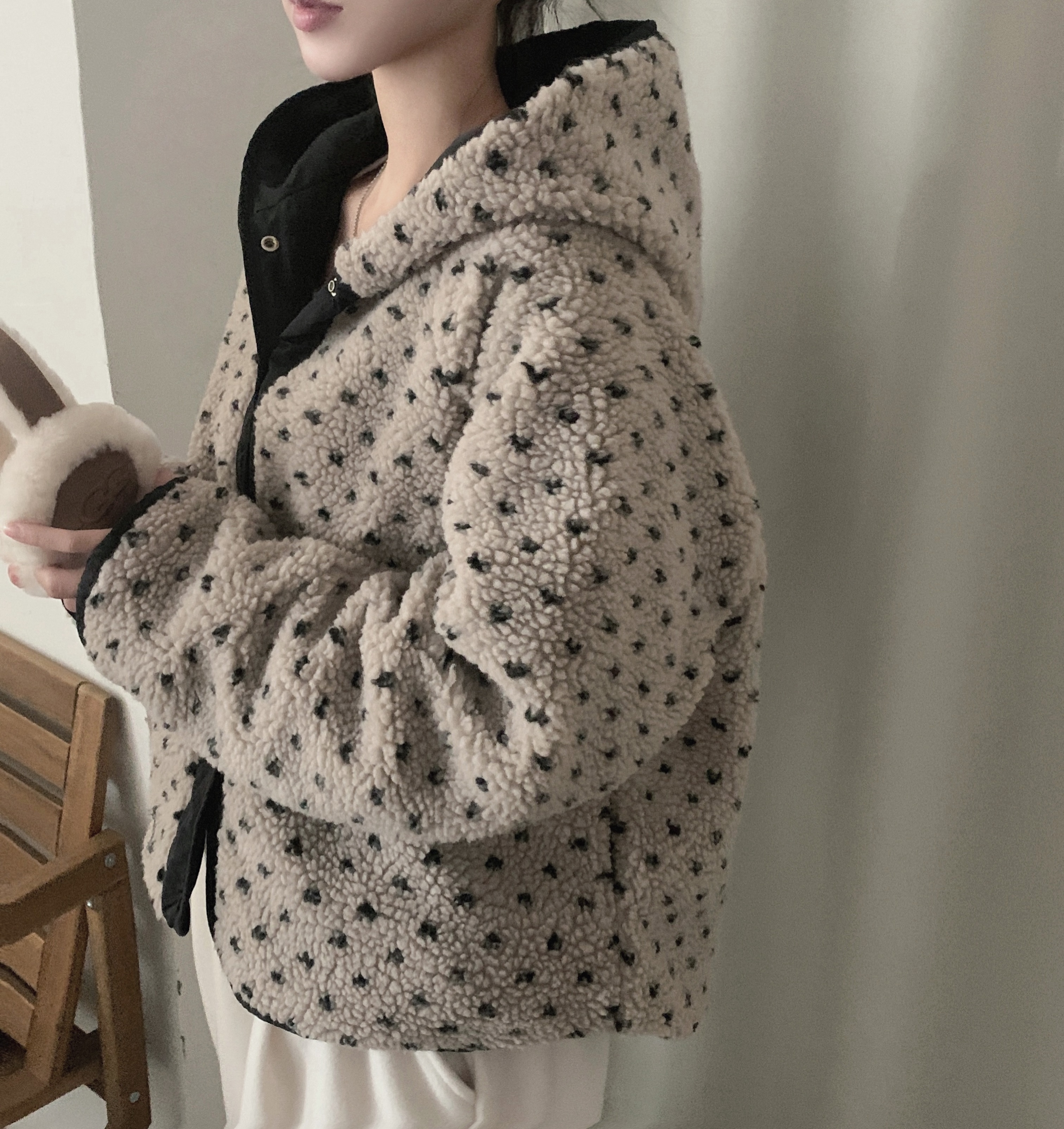 リバーシブル ドット柄 オーバーサイズ フード付き ボアフリース 中綿パーカー