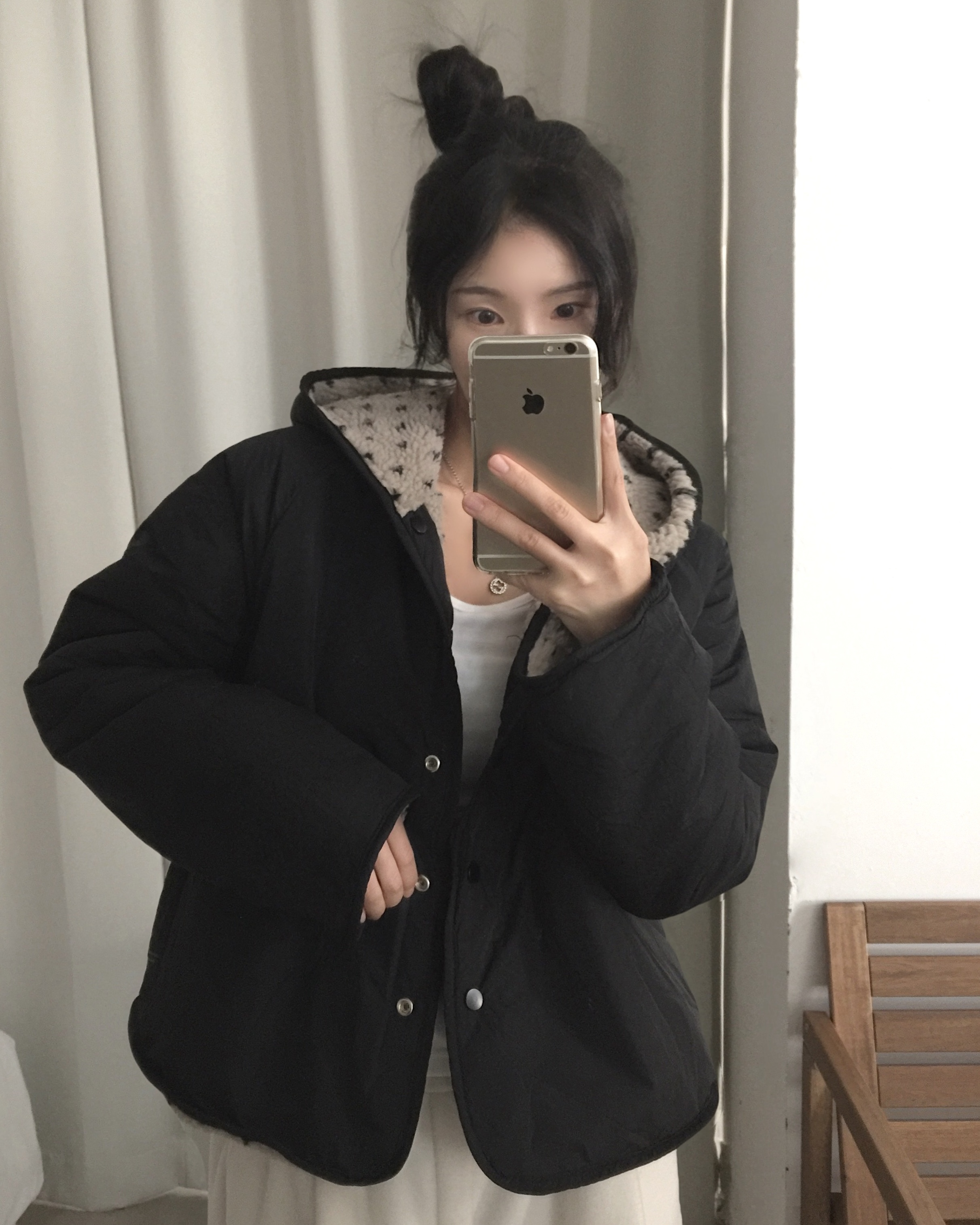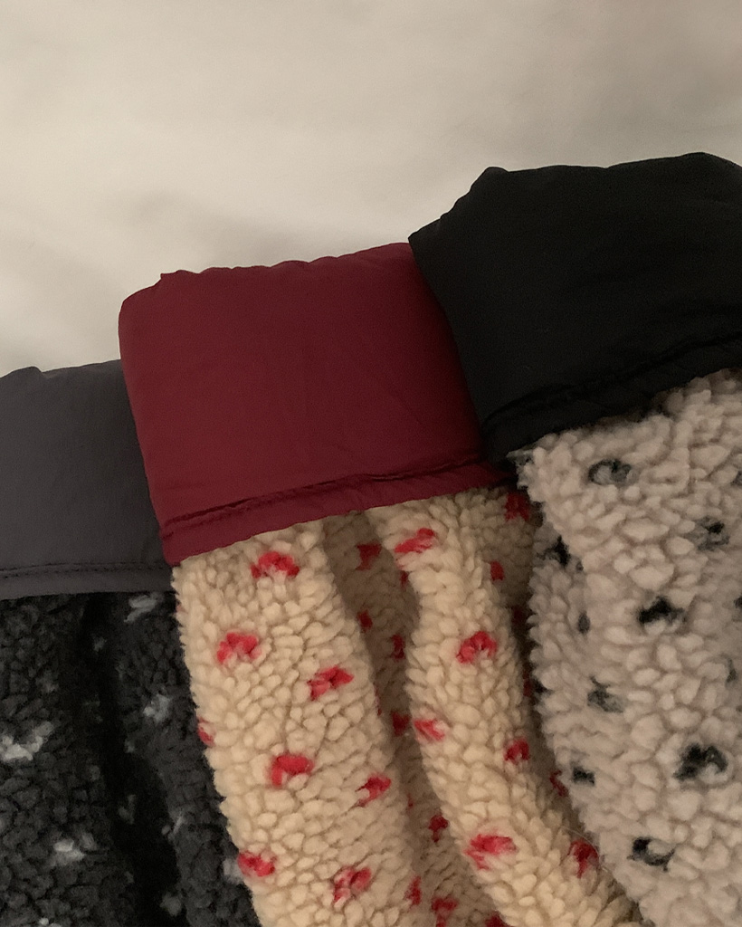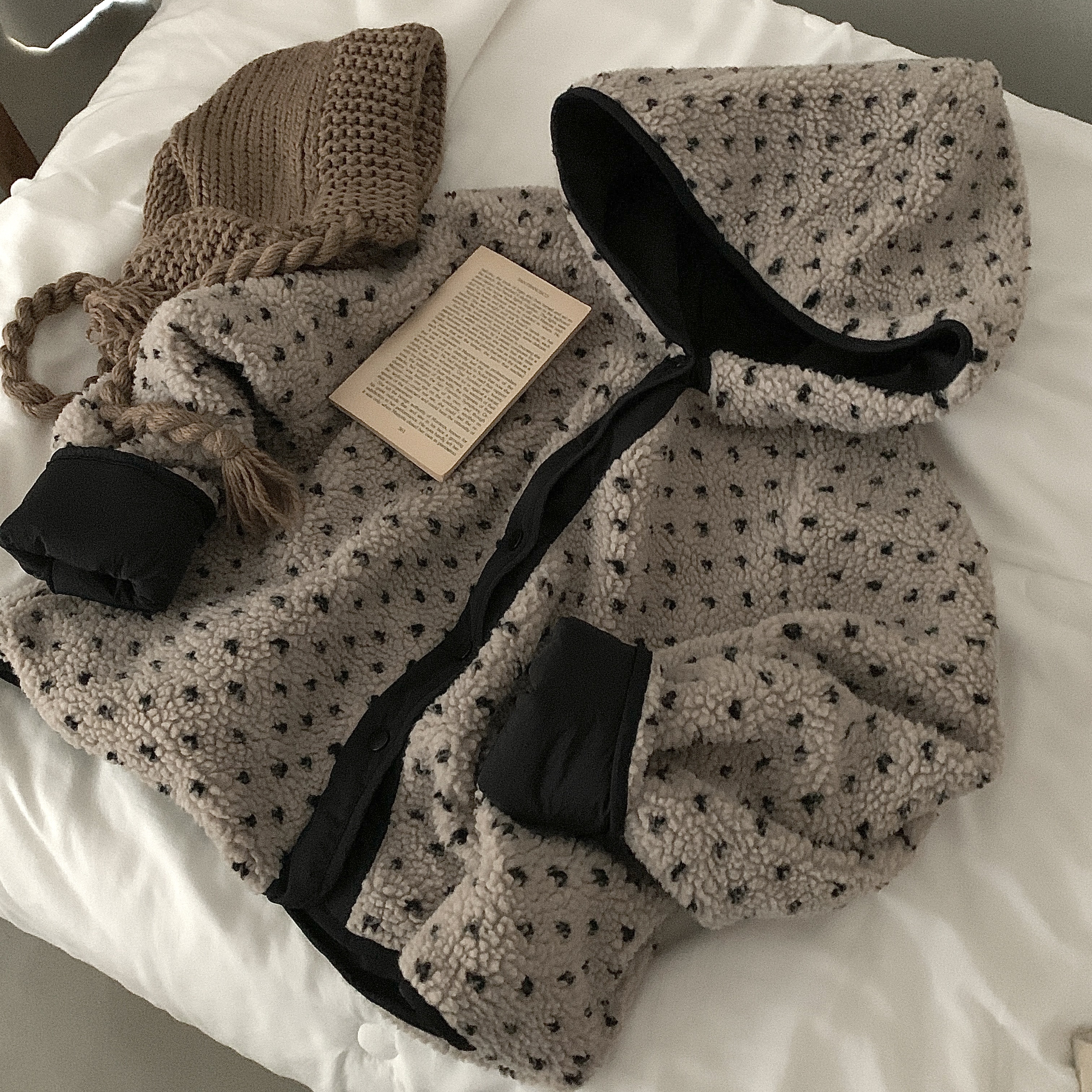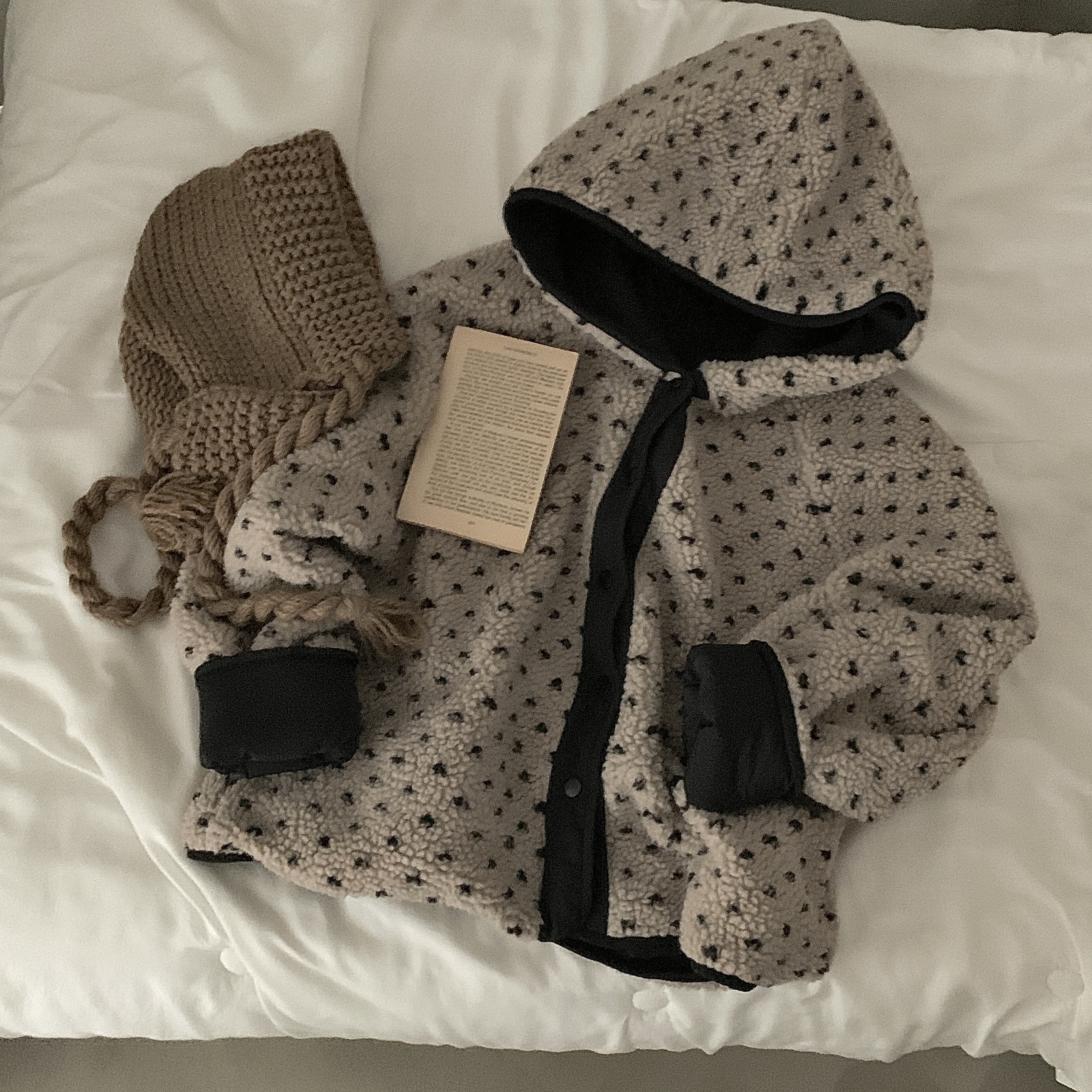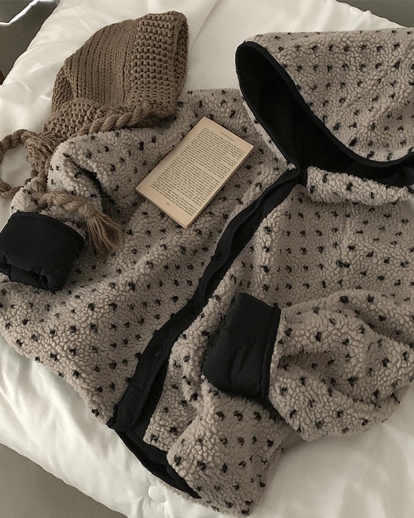 リバーシブル ドット柄 オーバーサイズ フード付き ボアフリース 中綿パーカー