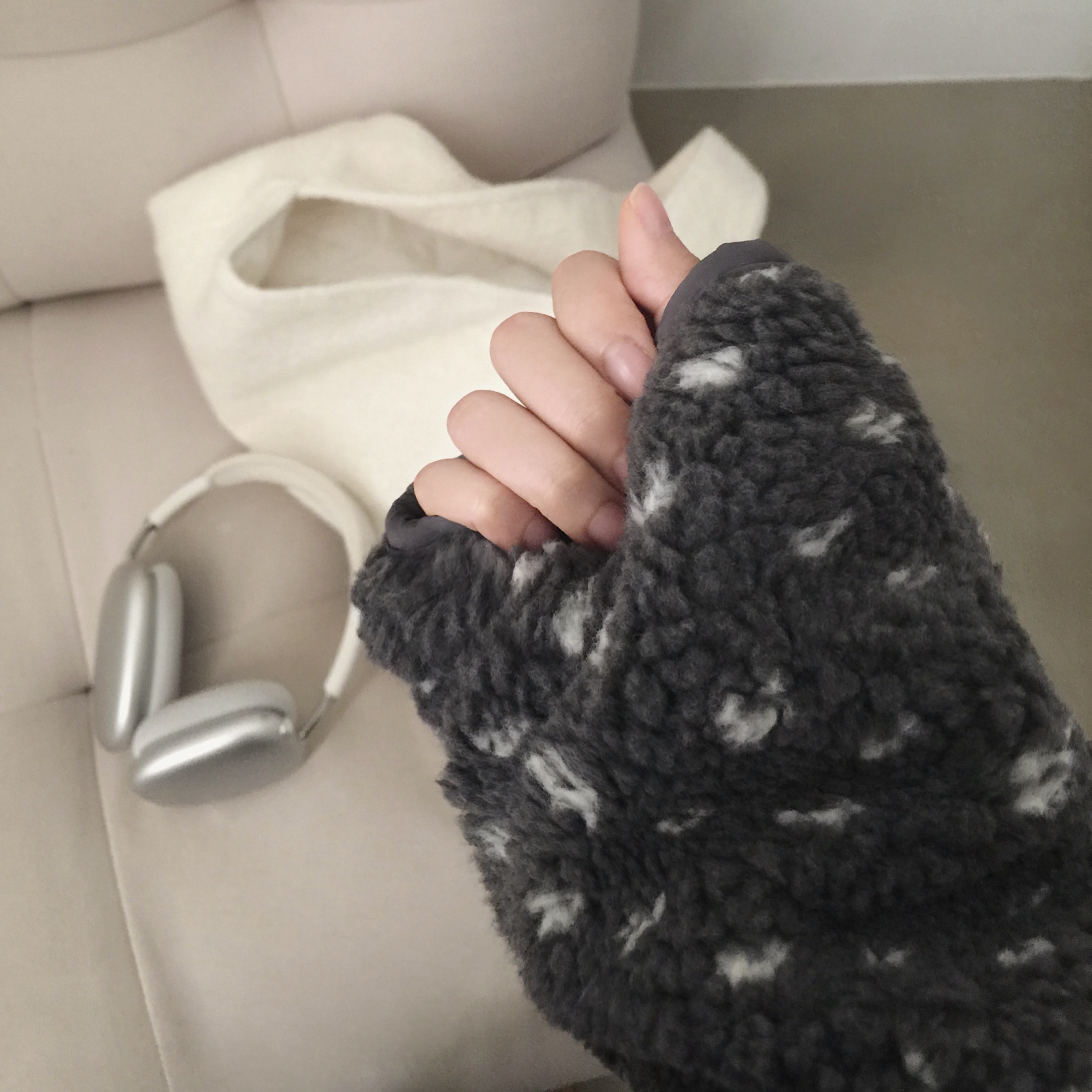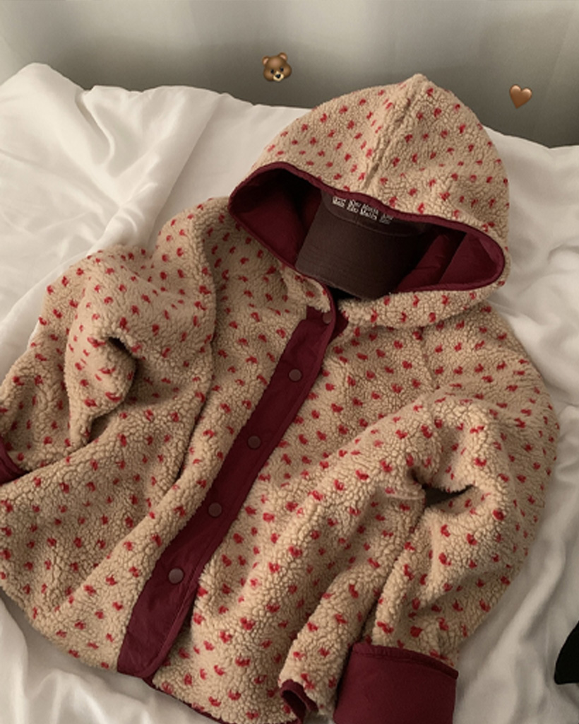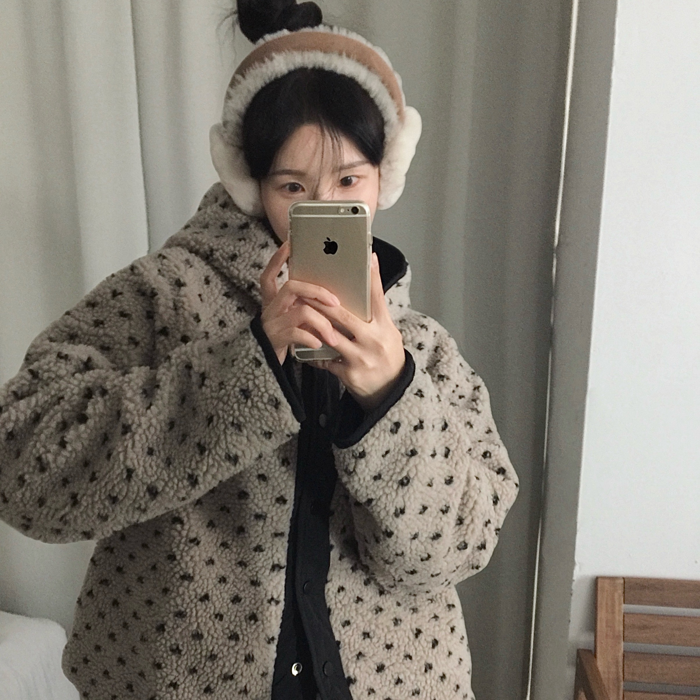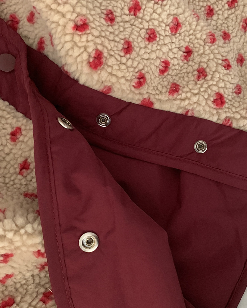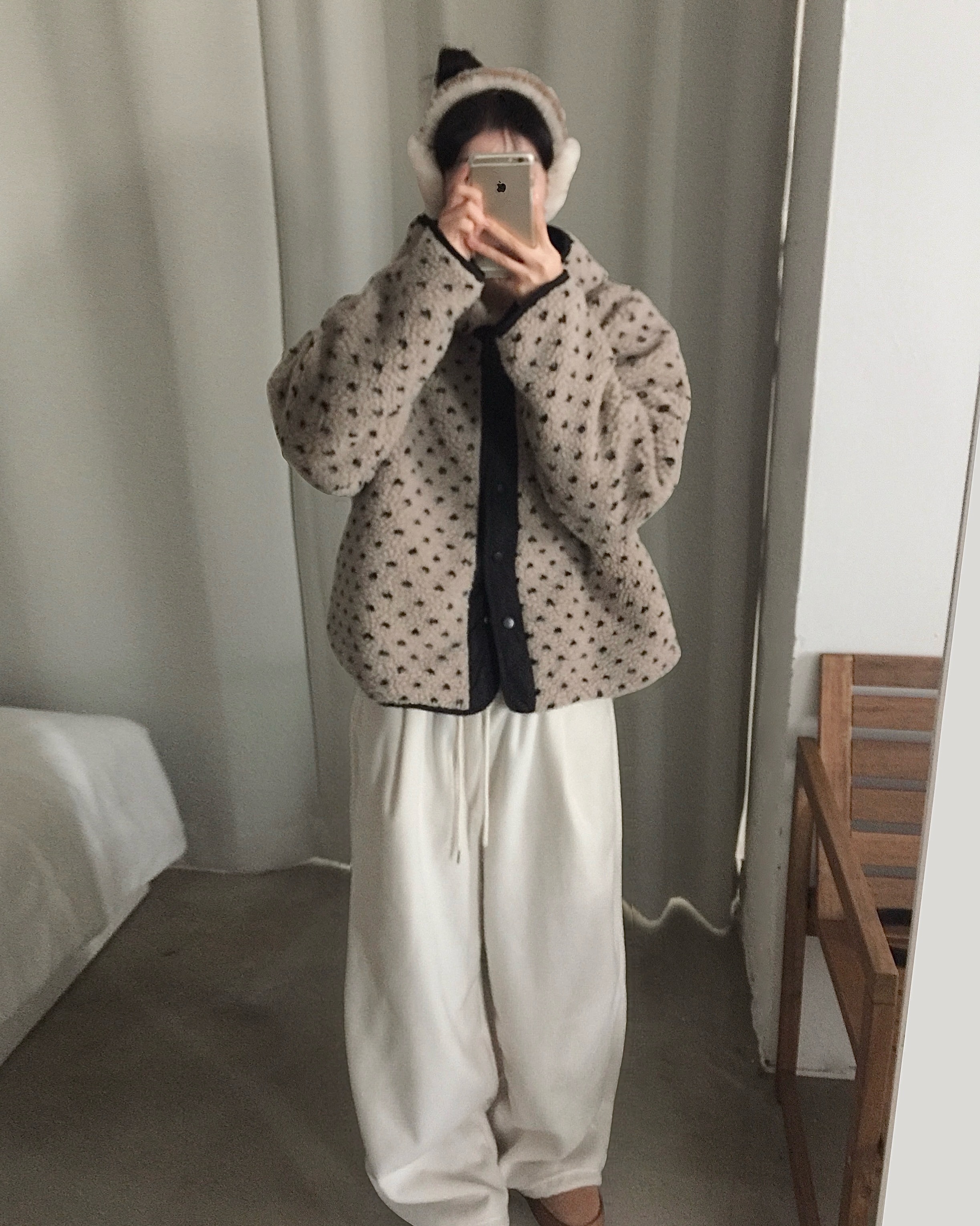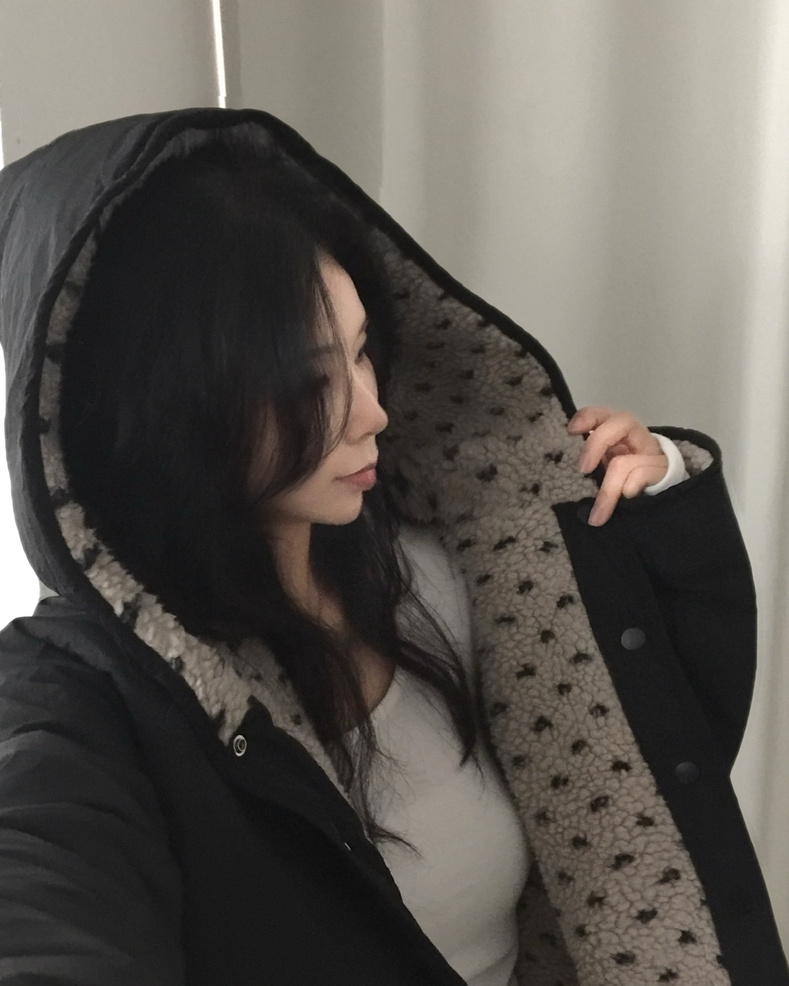 リバーシブル ドット柄 オーバーサイズ フード付き ボアフリース 中綿パーカー