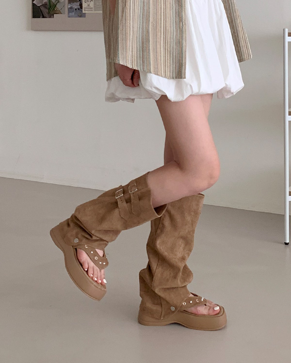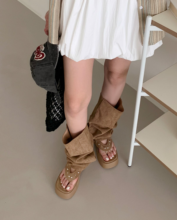 [ウォーマー脱着]2WAY厚底ビーチサンダルブーツ (2color)