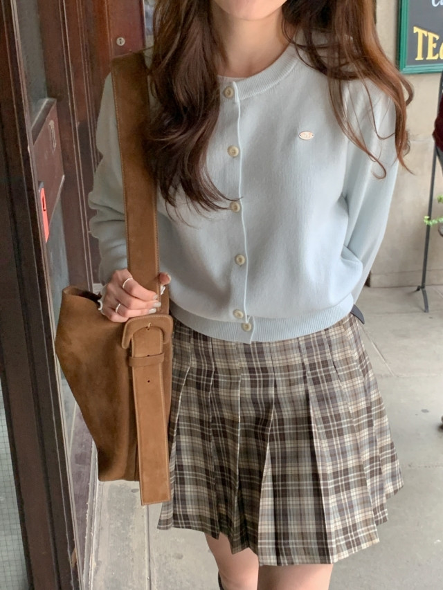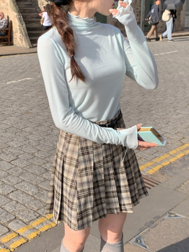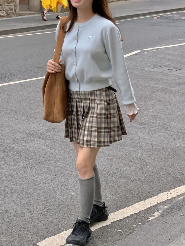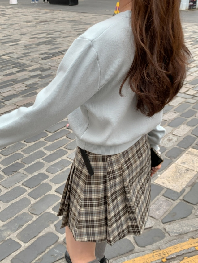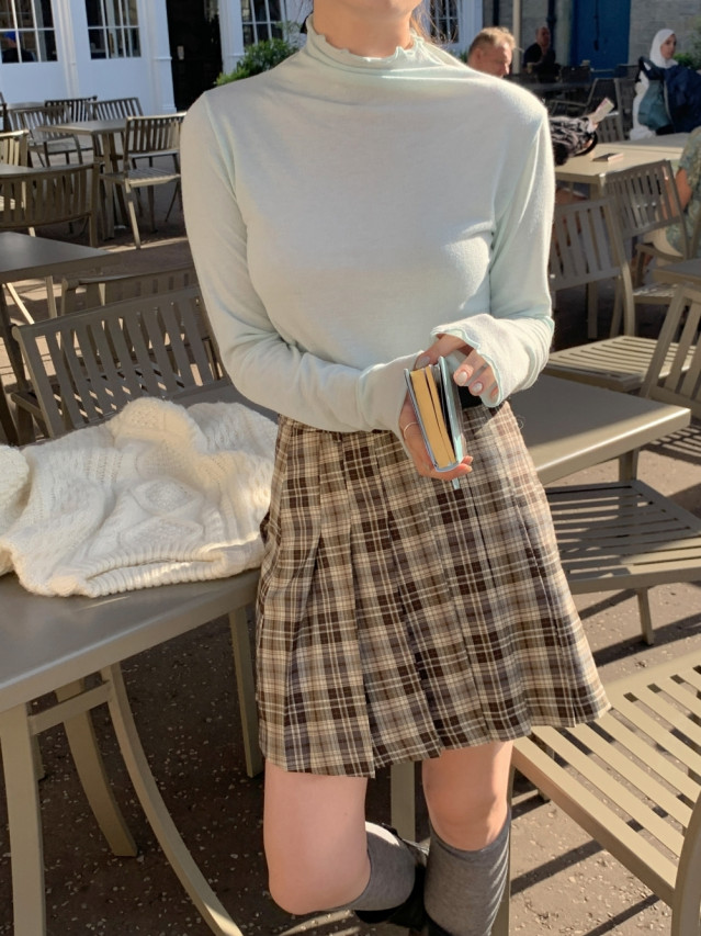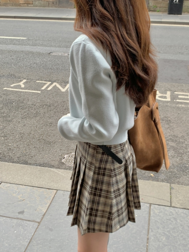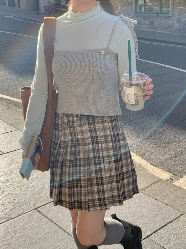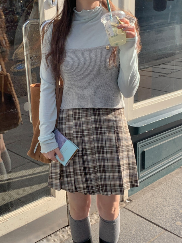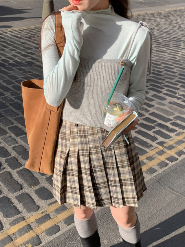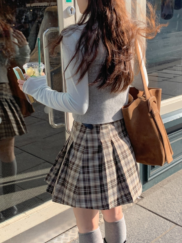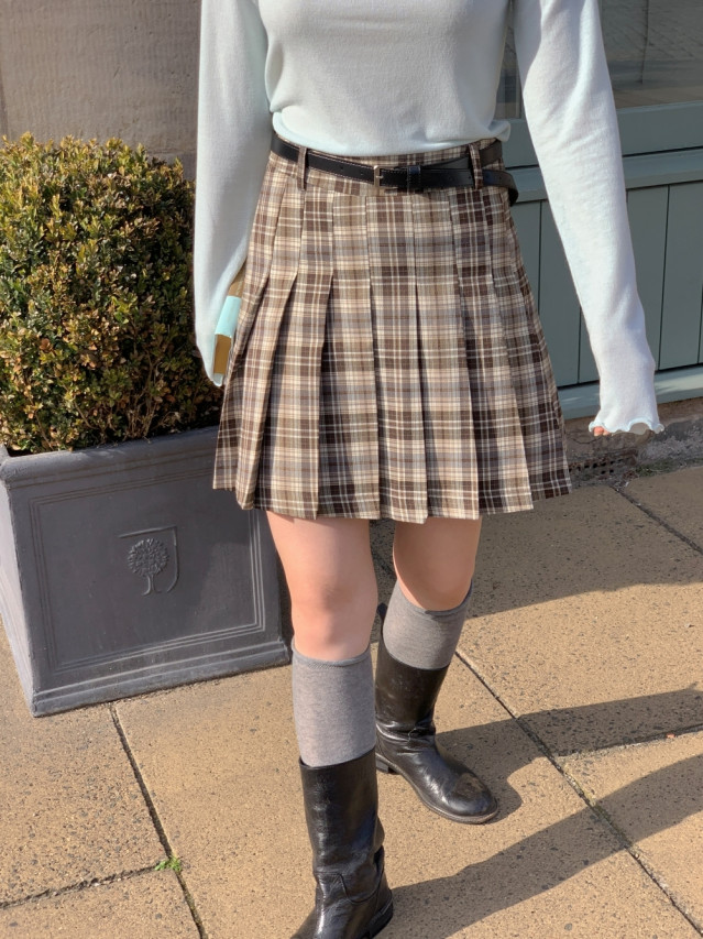 [original]Aラインチェックタック入りプリーツミニスカート