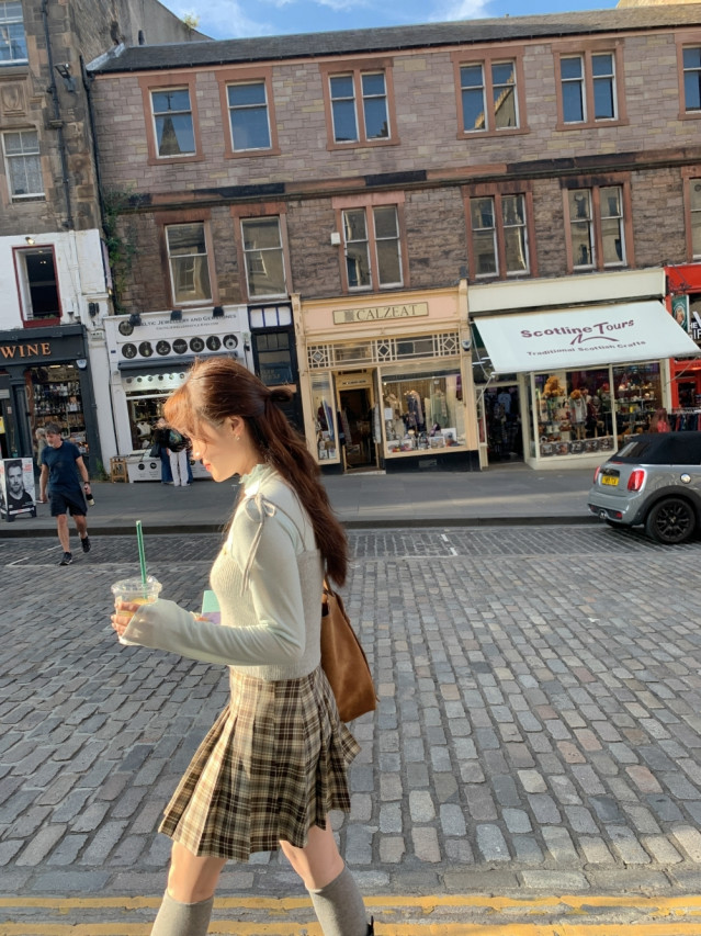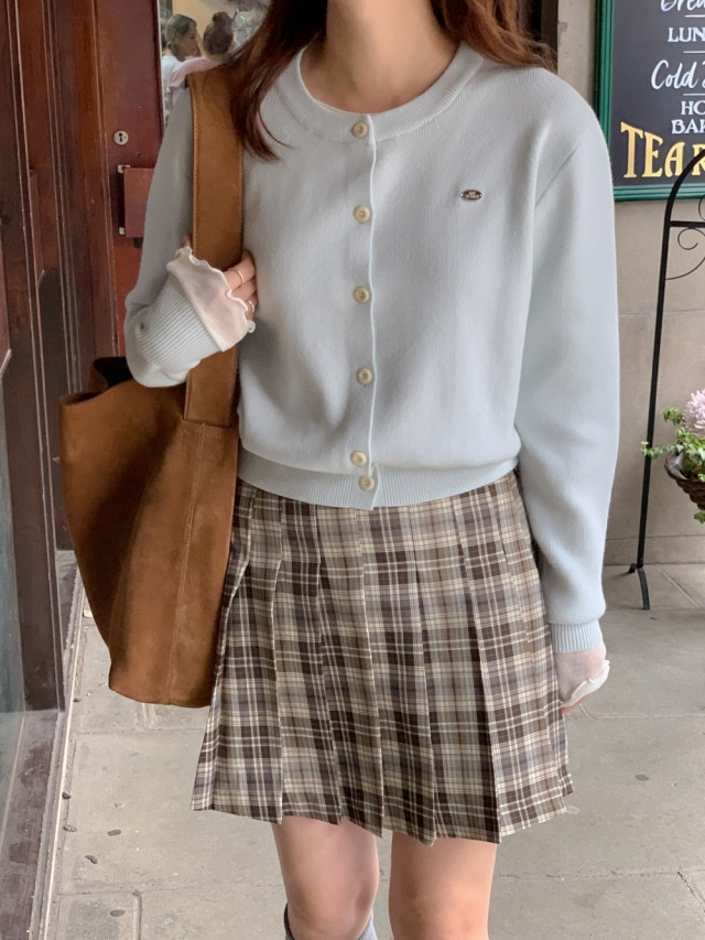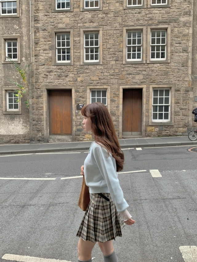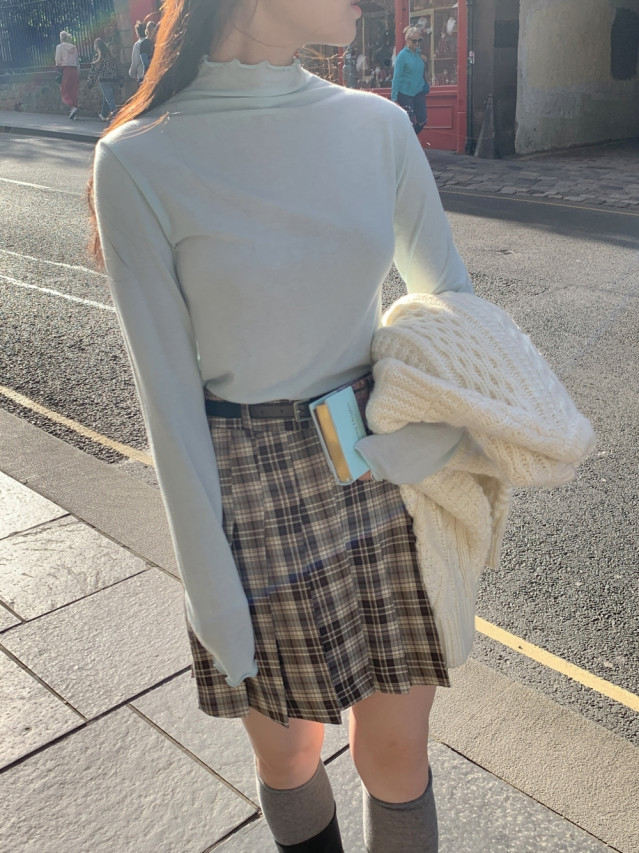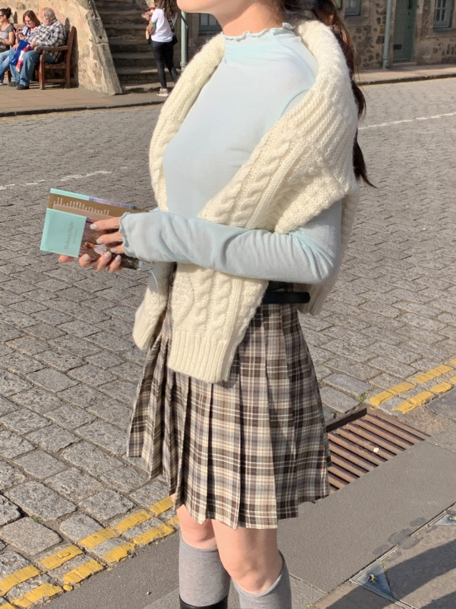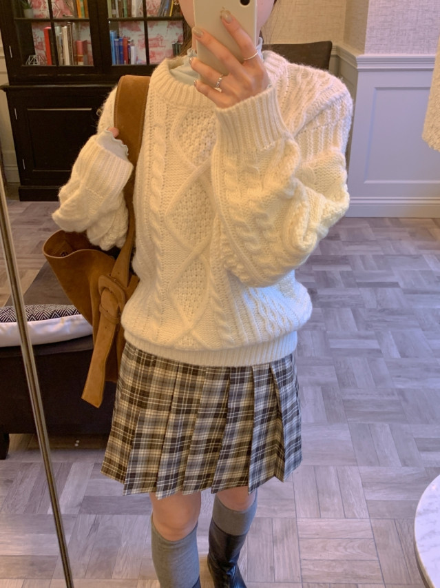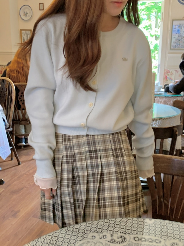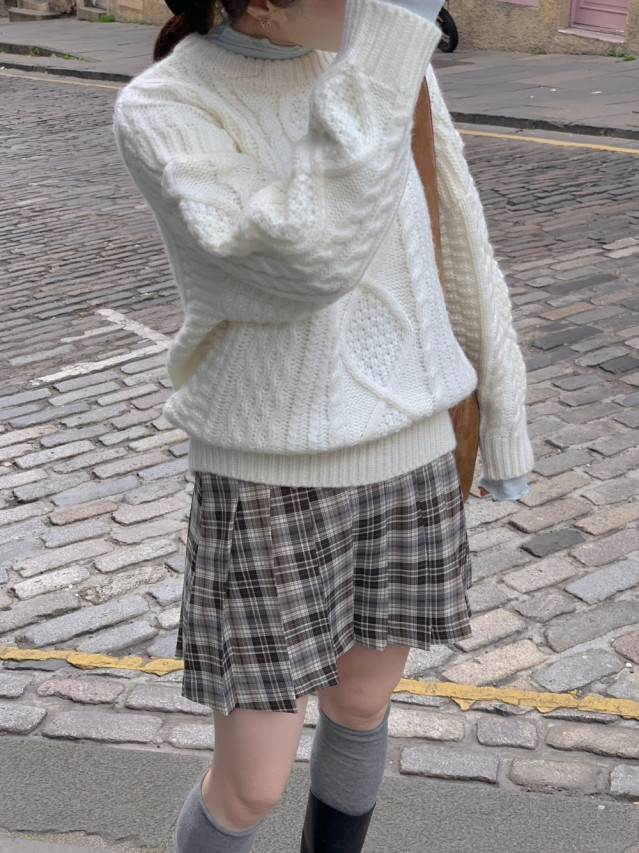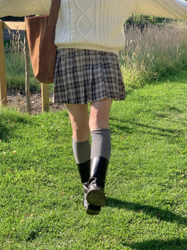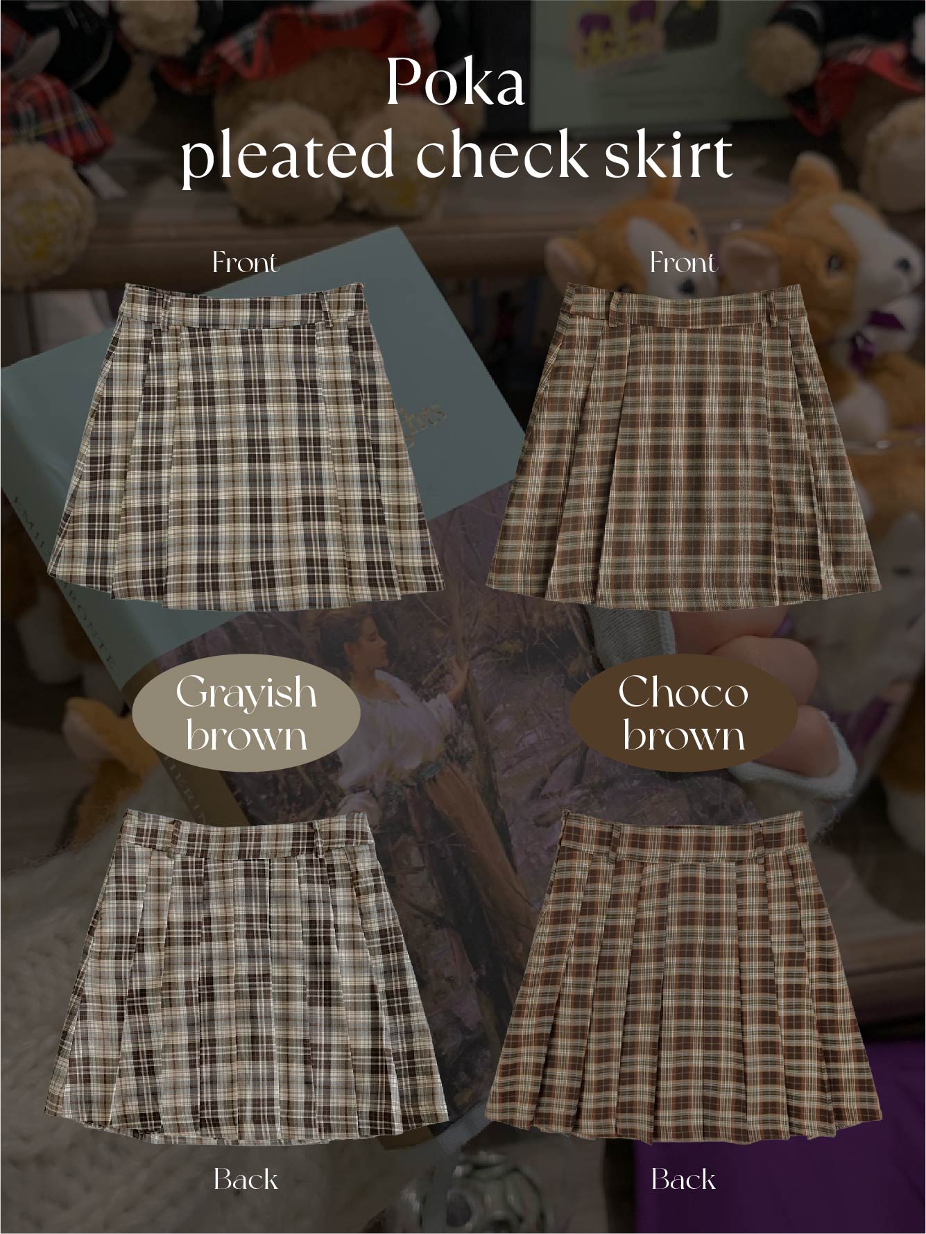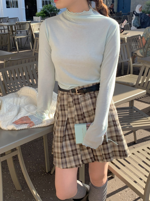 [original]Aラインチェックタック入りプリーツミニスカート