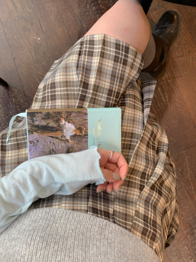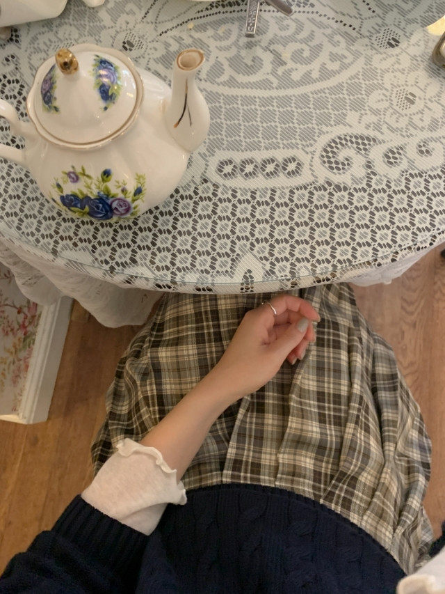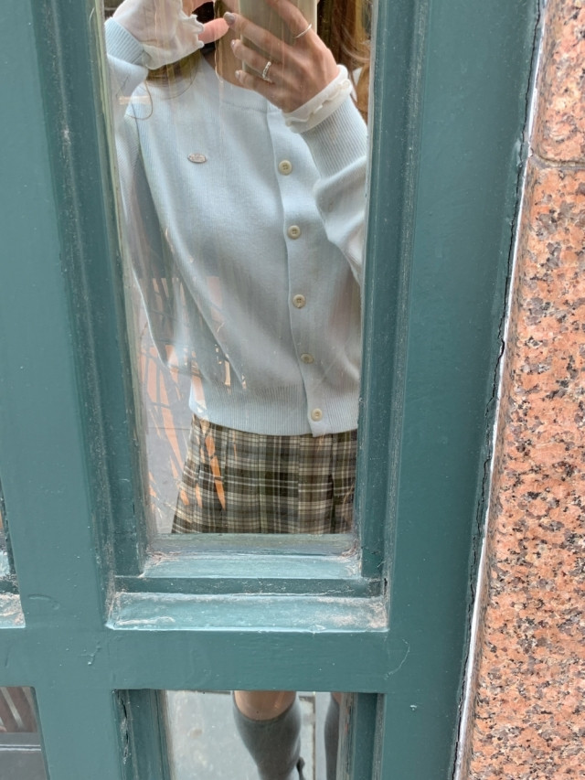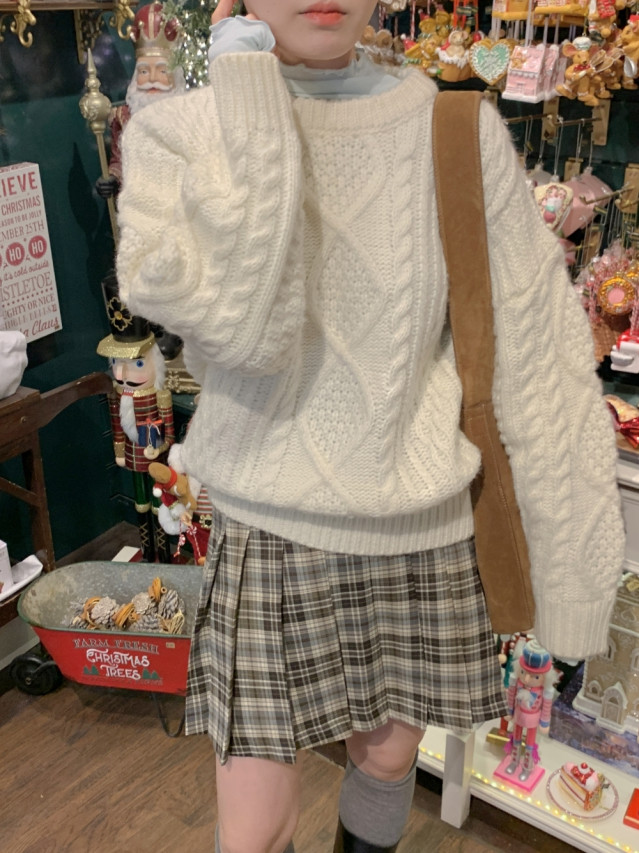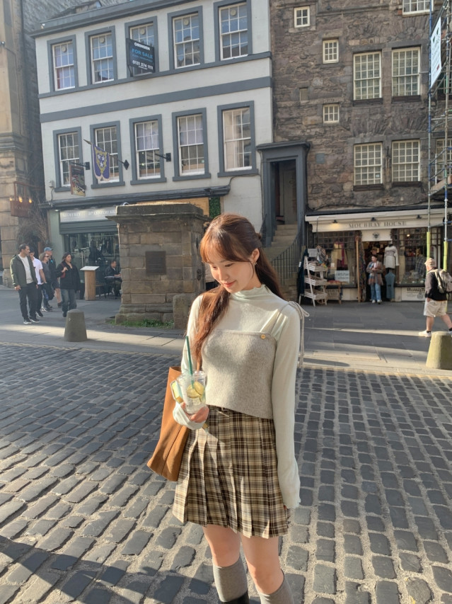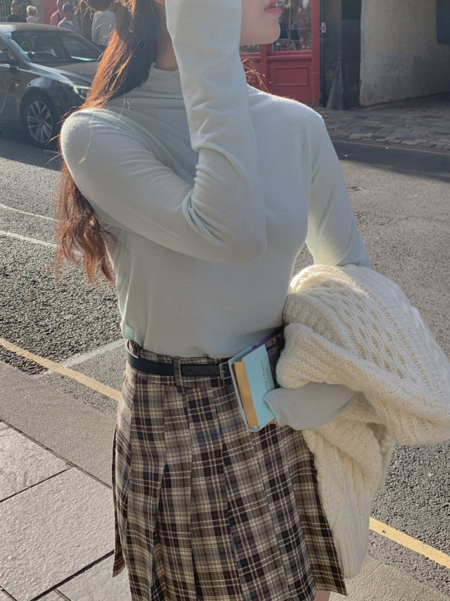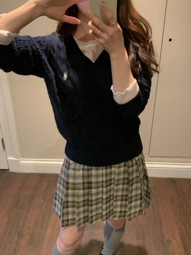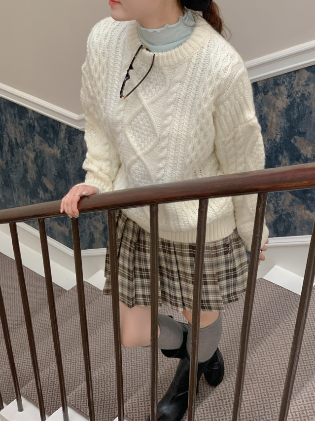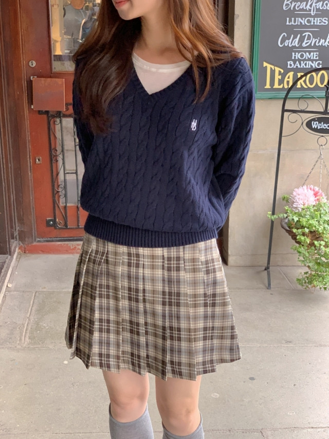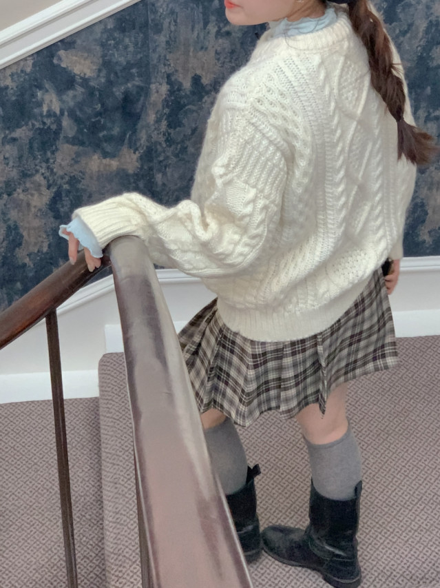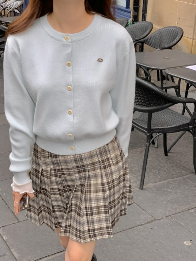 [original]Aラインチェックタック入りプリーツミニスカート