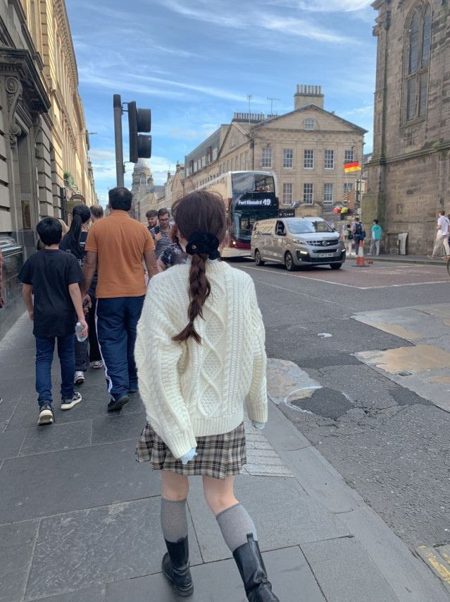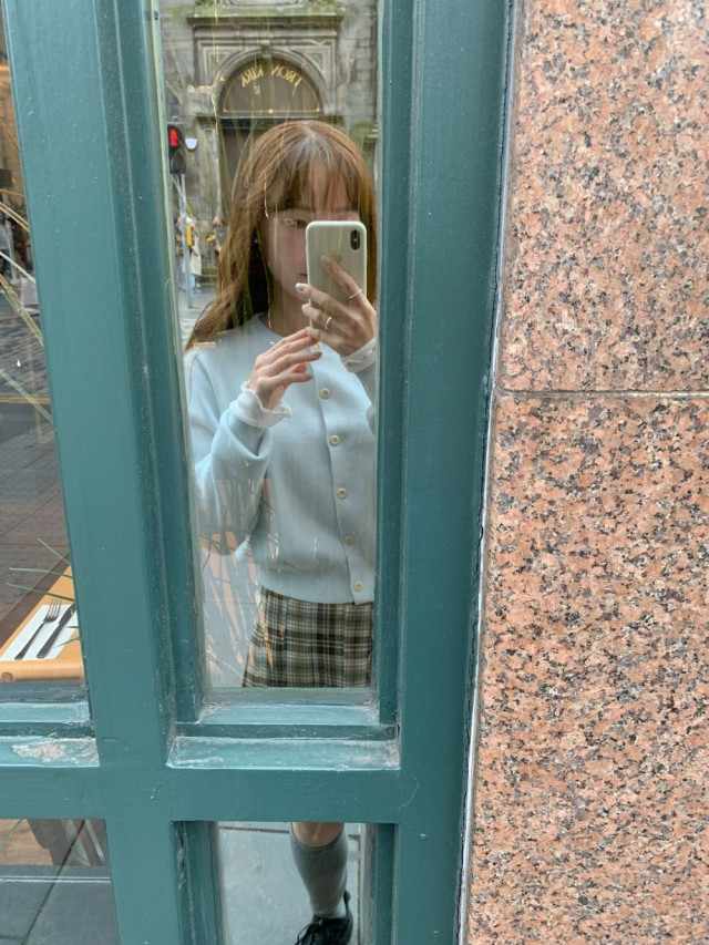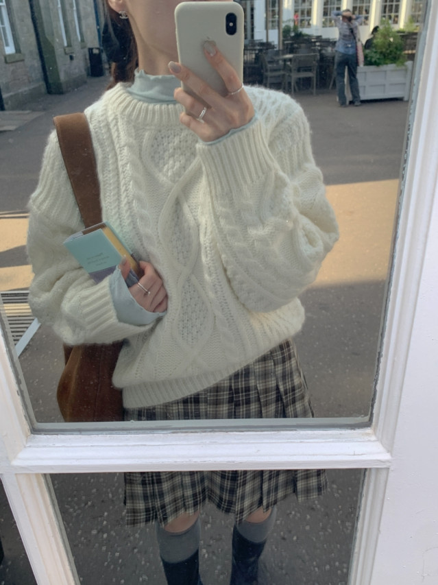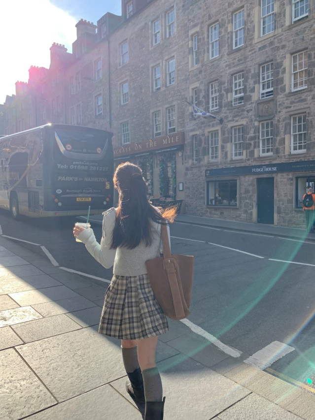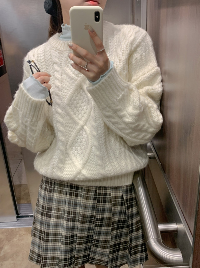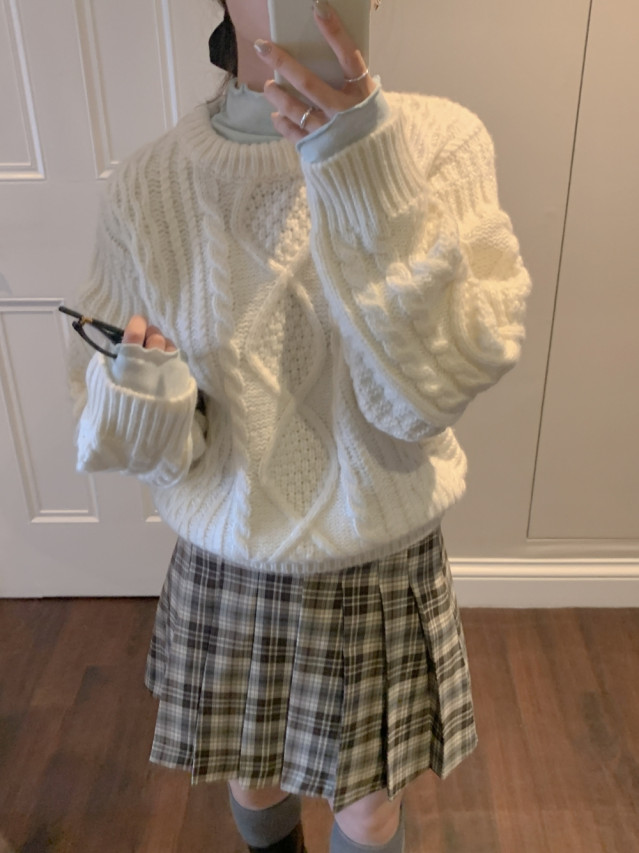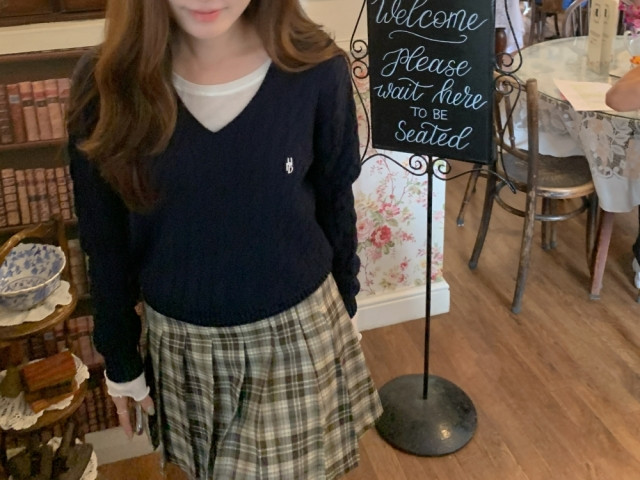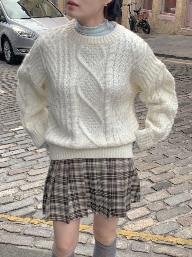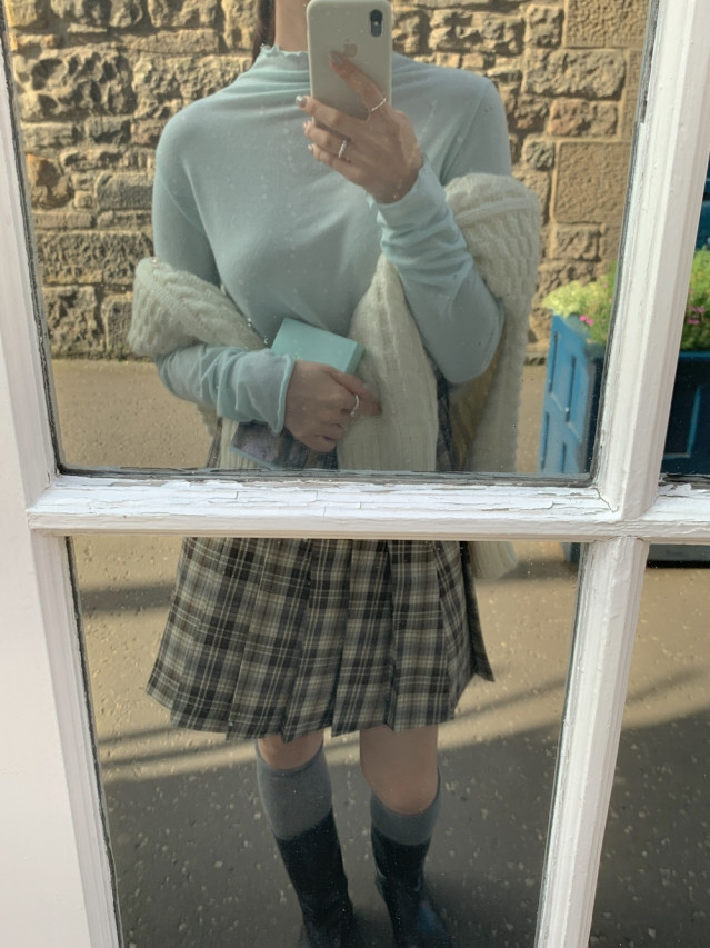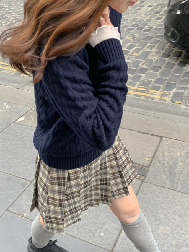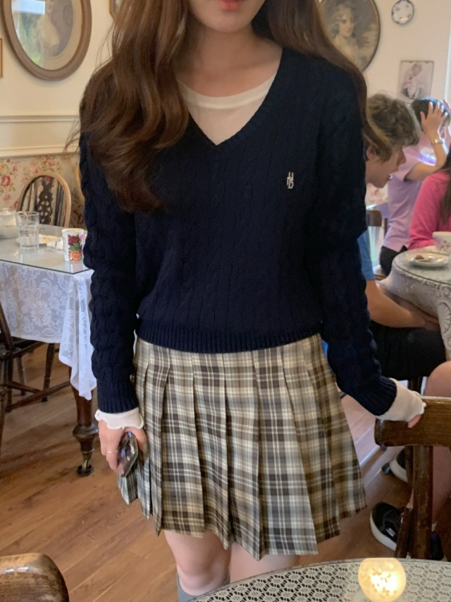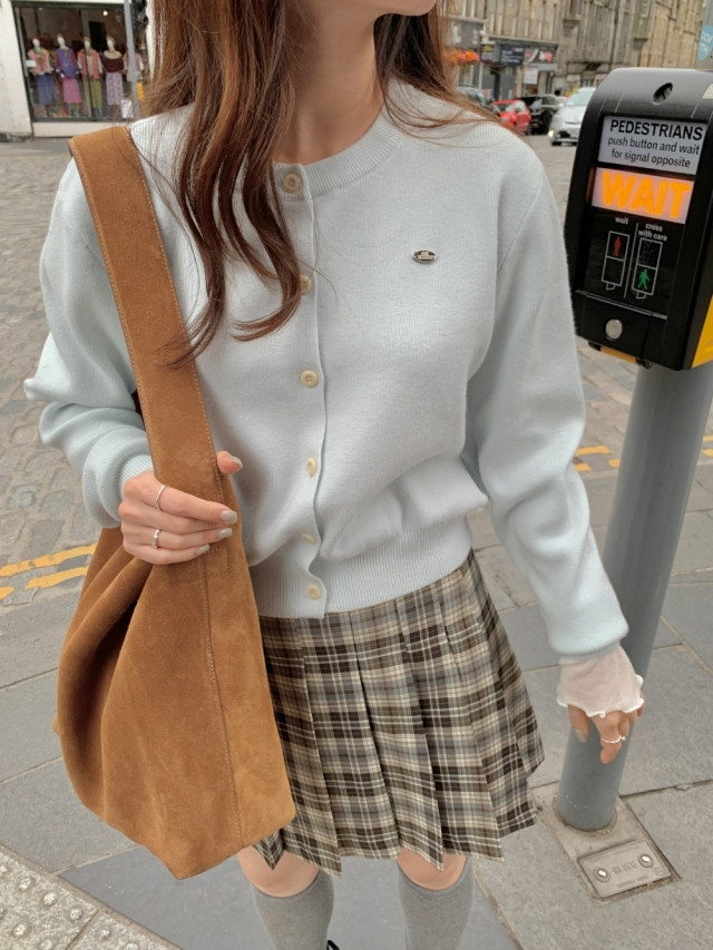 [original]Aラインチェックタック入りプリーツミニスカート