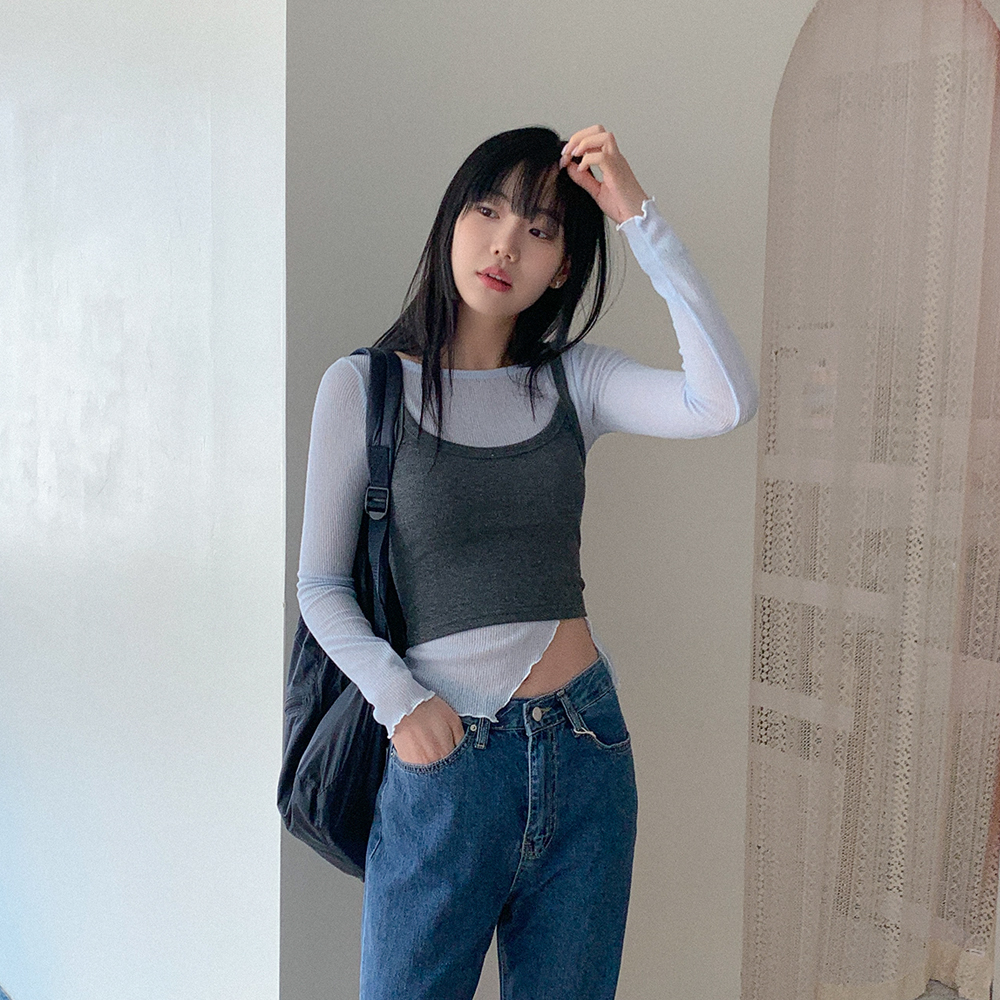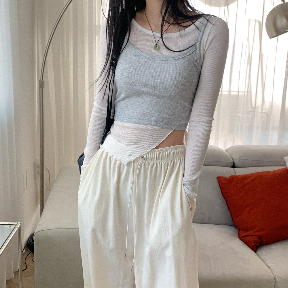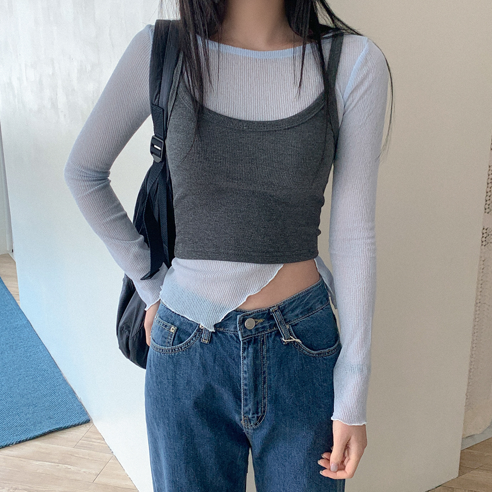 [SET] シースルー長袖Tシャツ+ノースリーブトップス