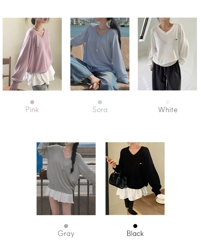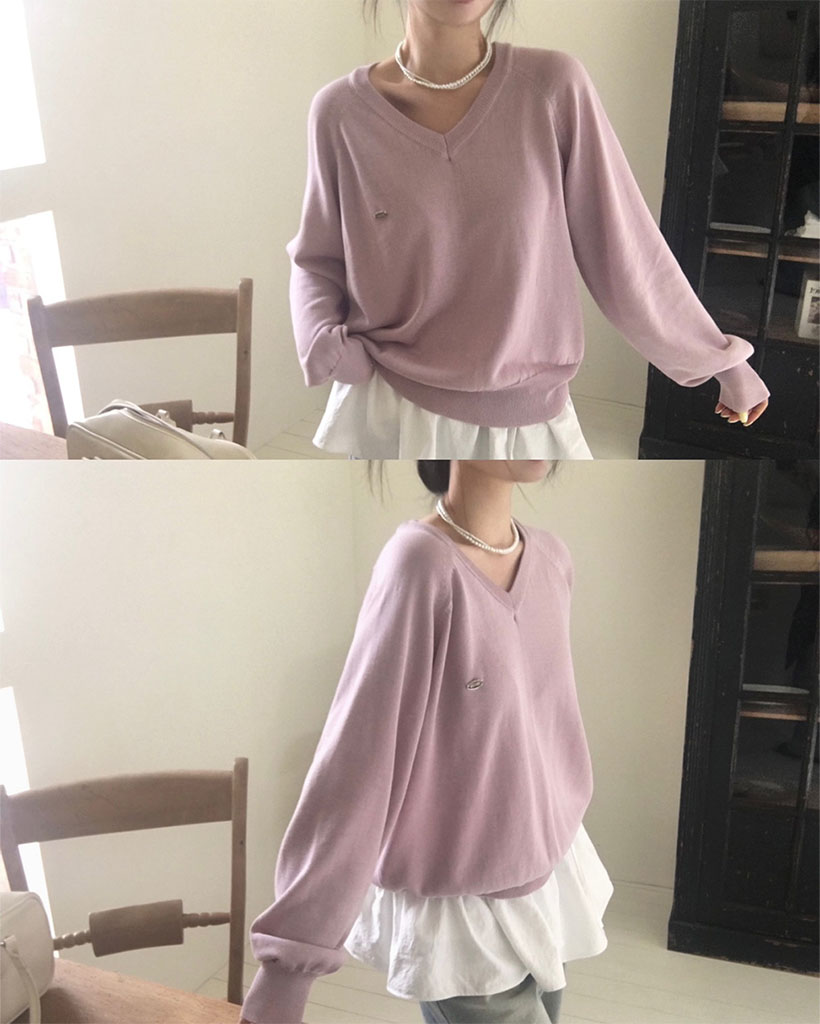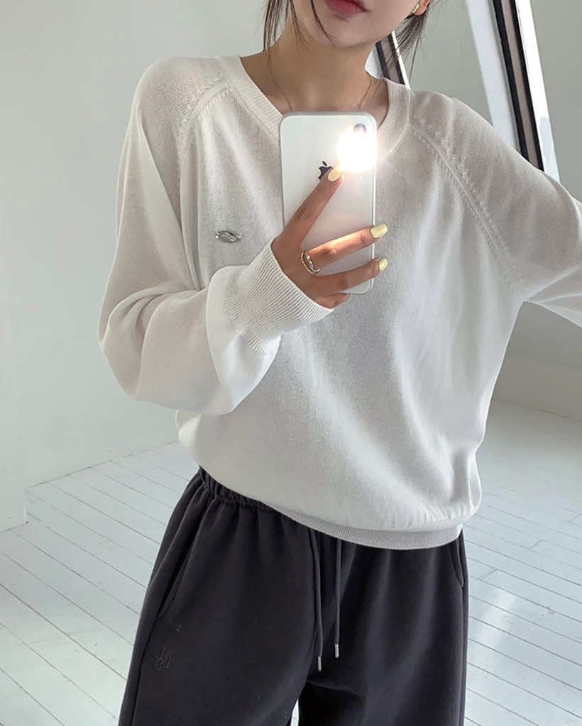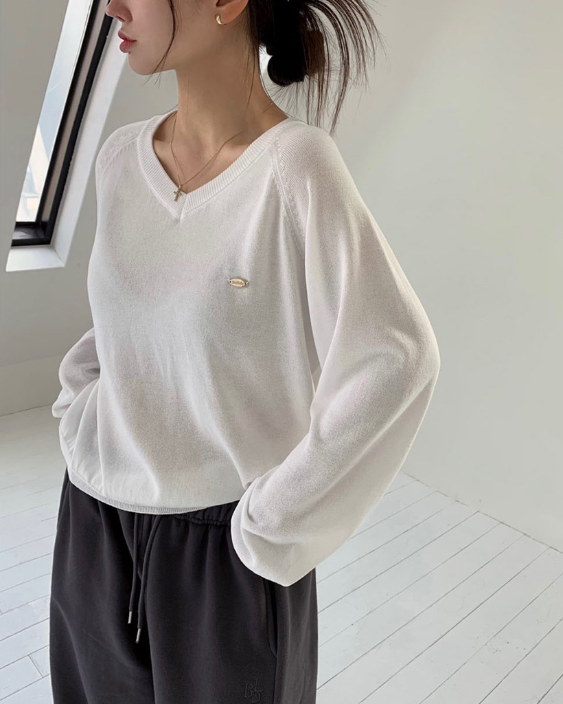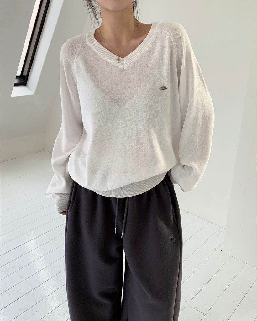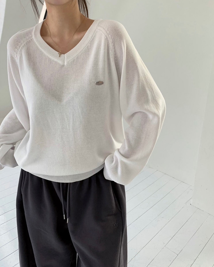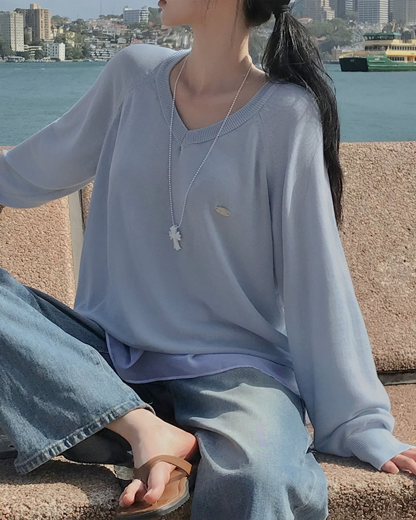 [original] シルエット、サマーVネックルーズフィットニット