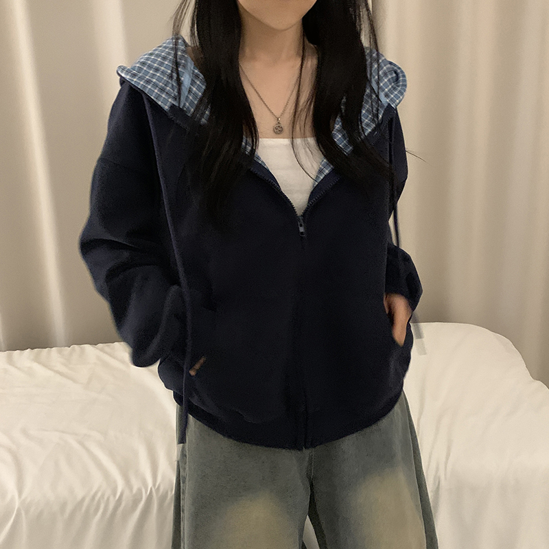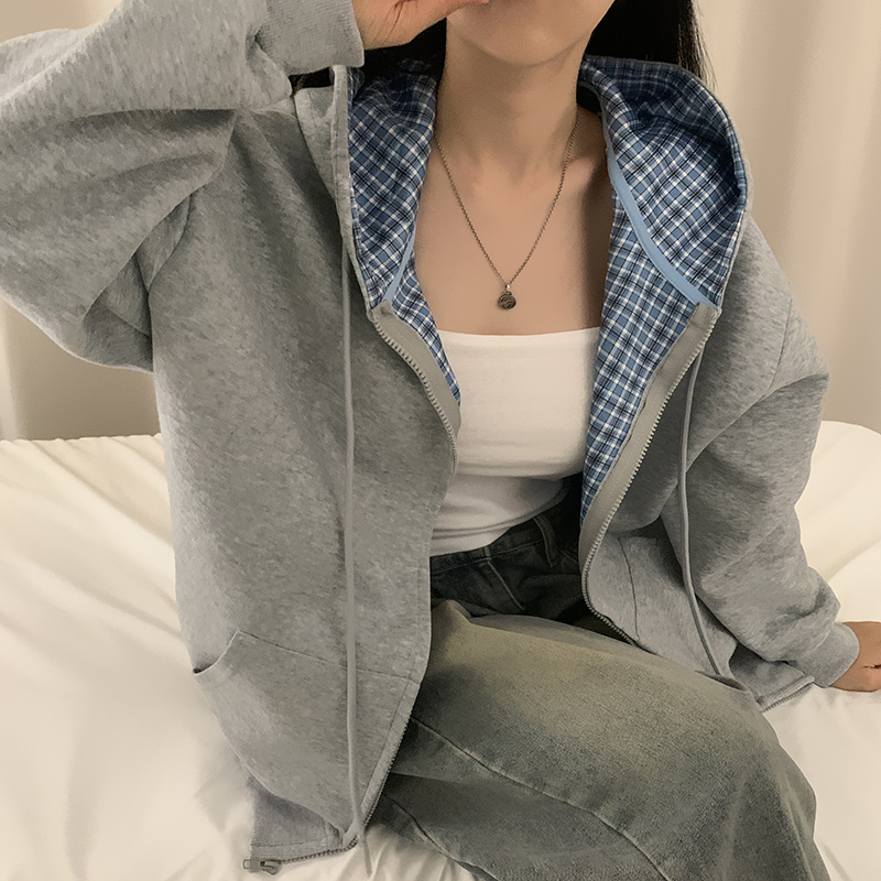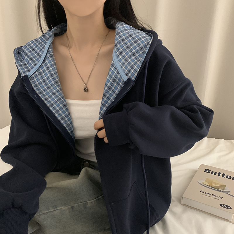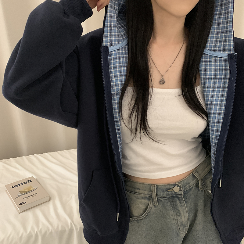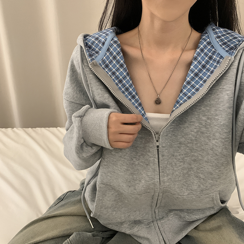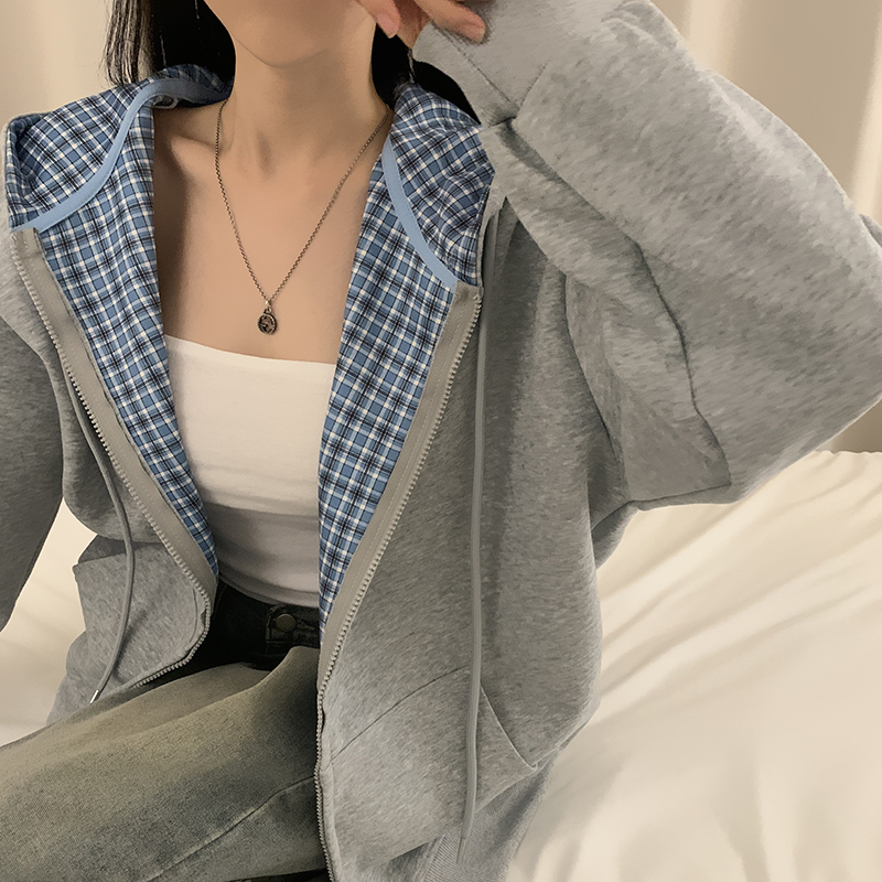 (5color)チェックバイカラージップアップ