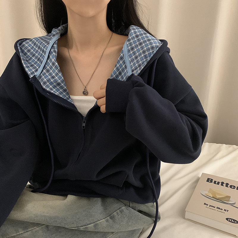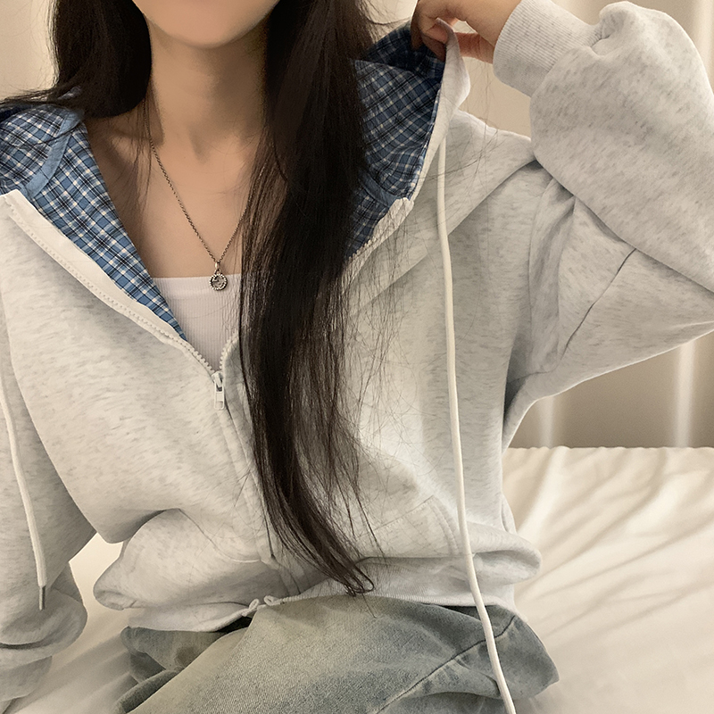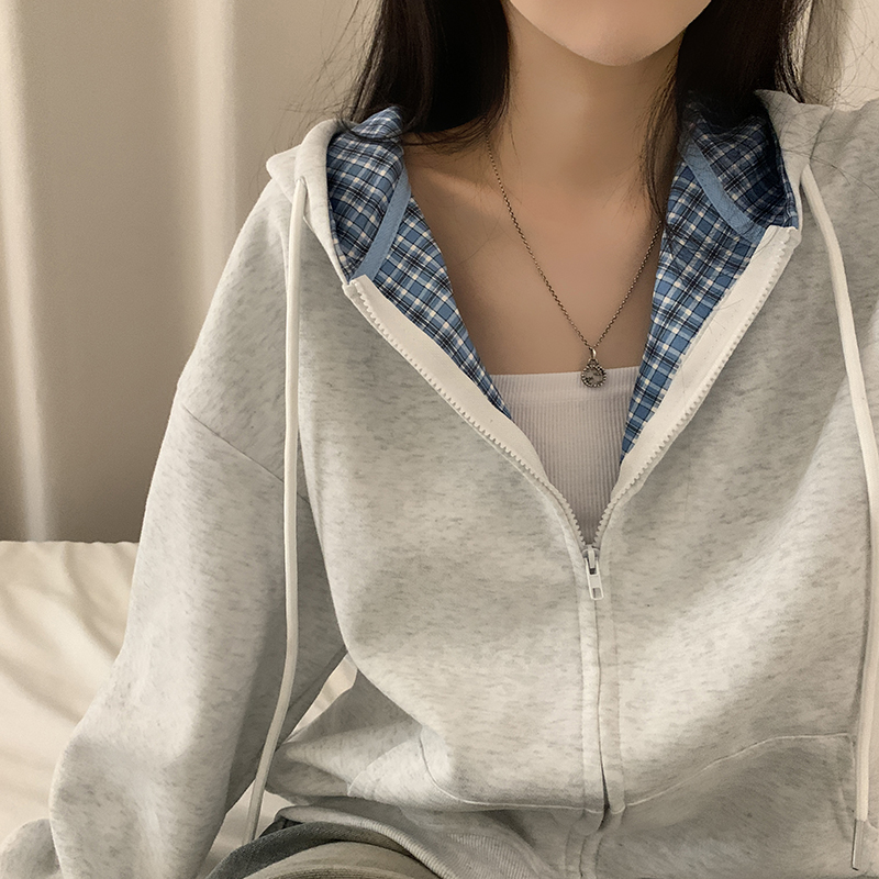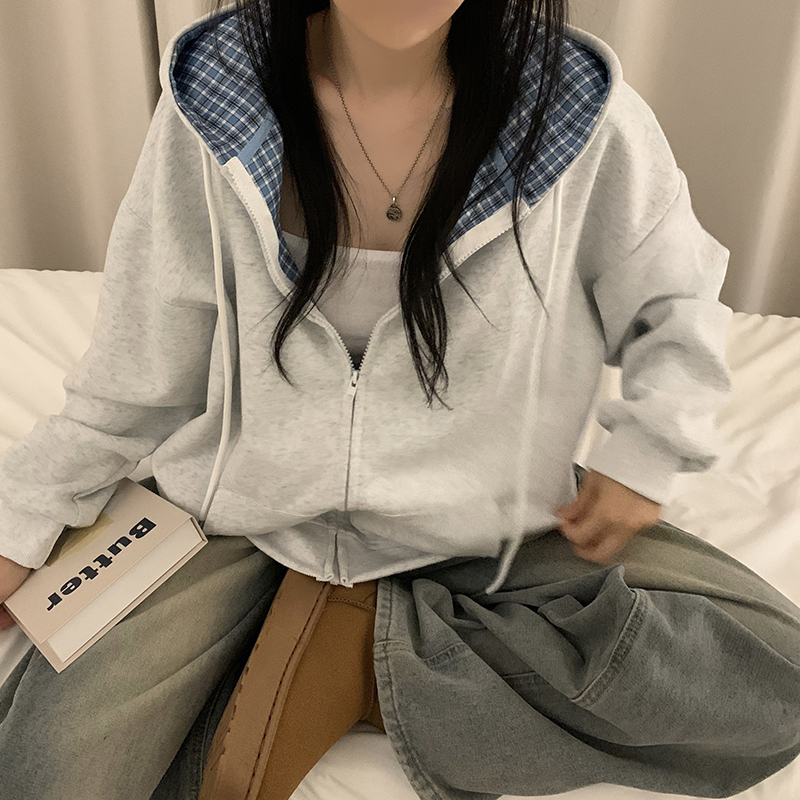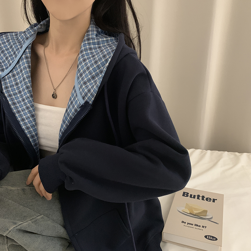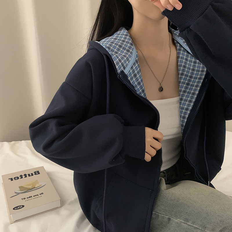(5color)チェックバイカラージップアップ