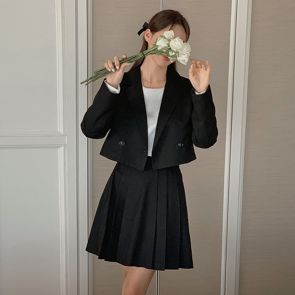 セミクロップド丈ジャケット&プリーツミニスカート上下セット