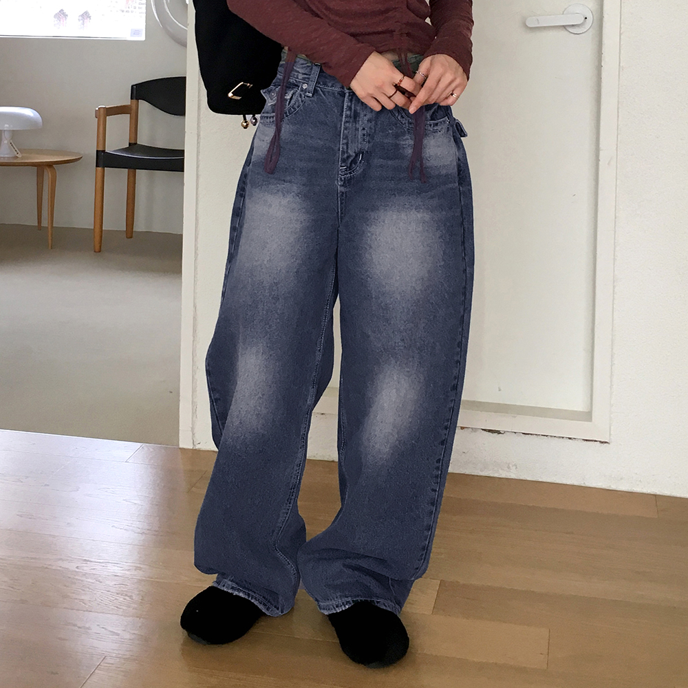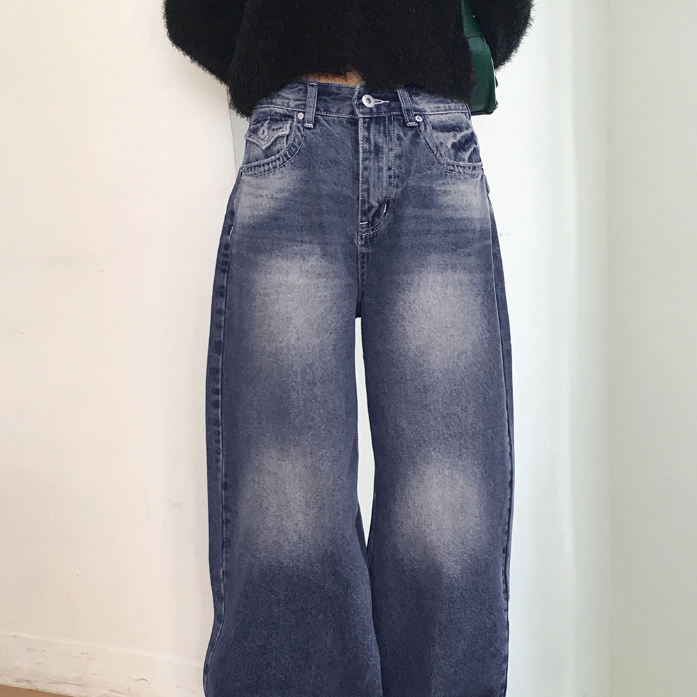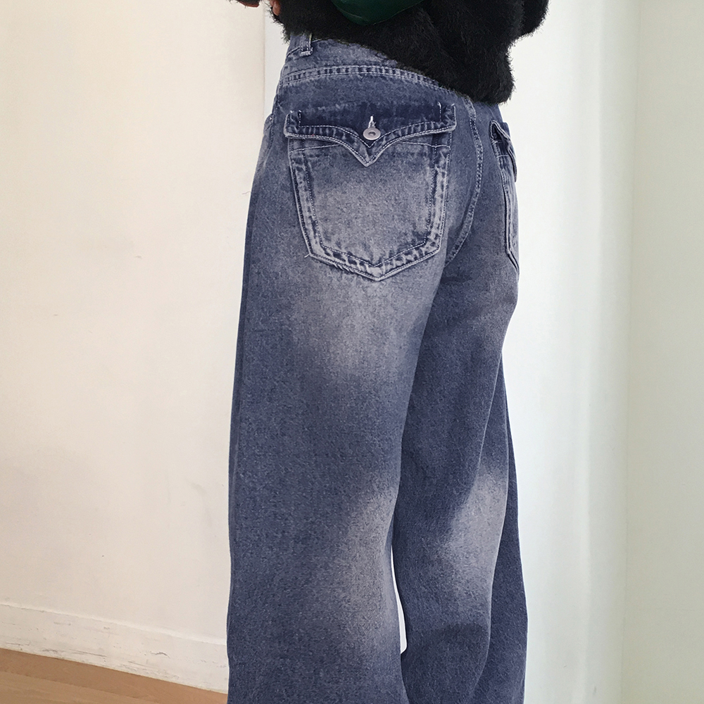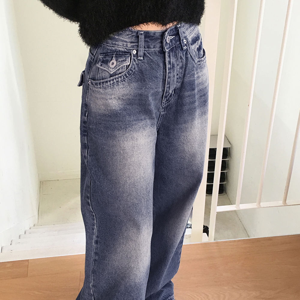 ヴィンテージウォッシュポケットロングワイドデニムパンツ