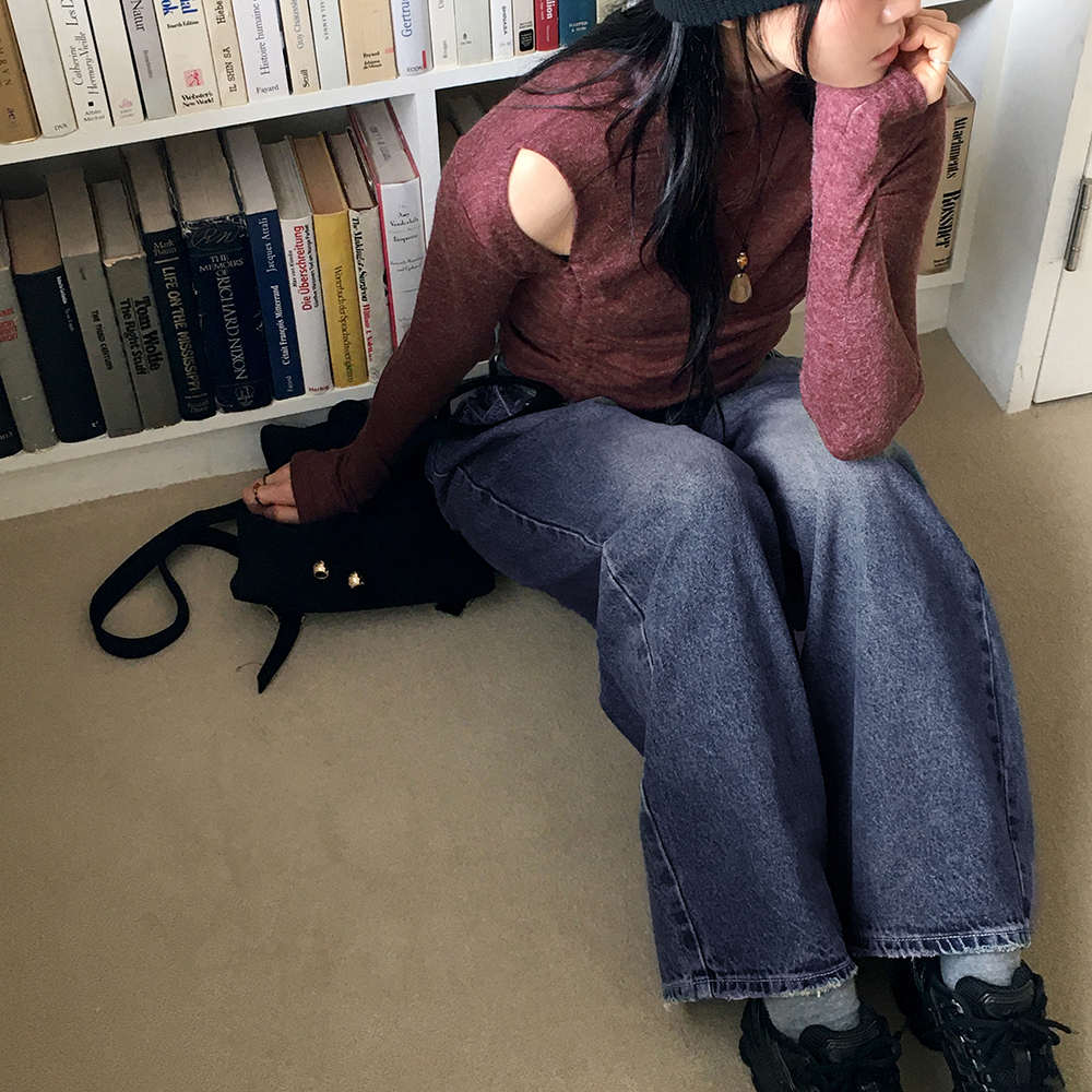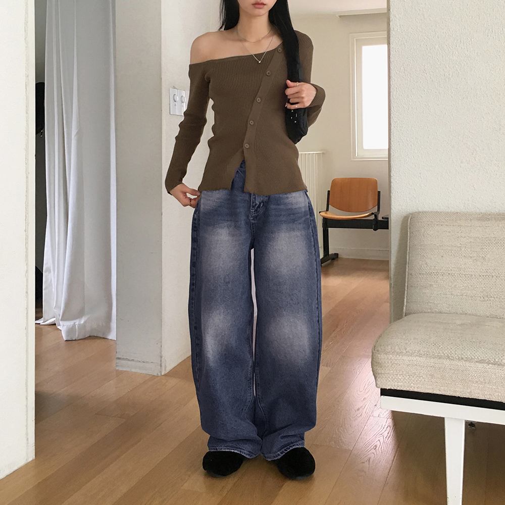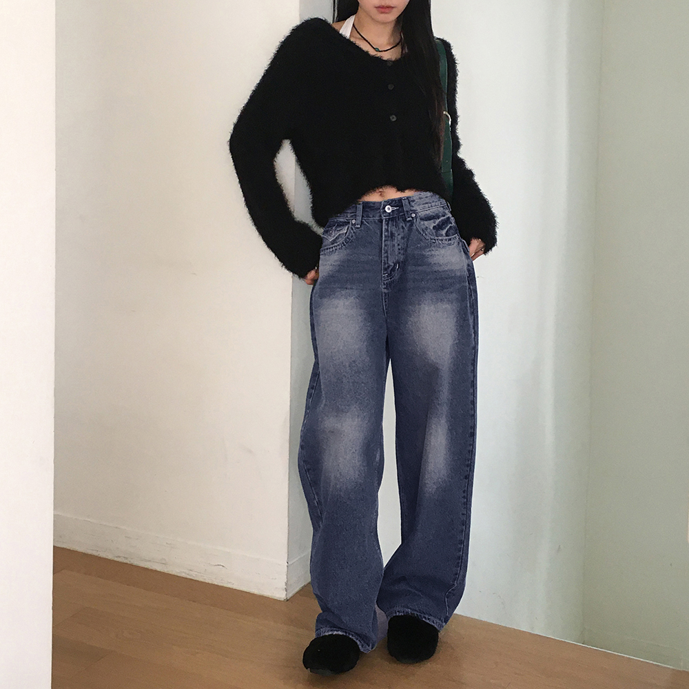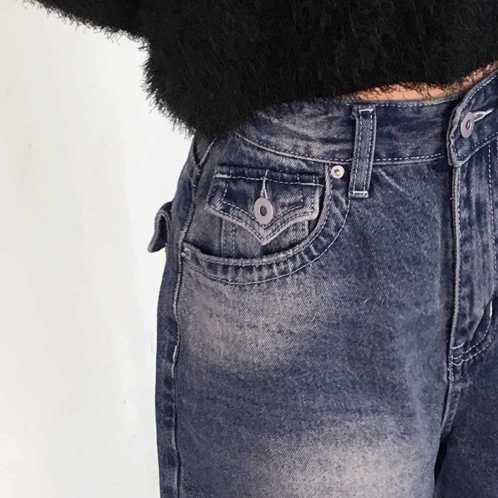 ヴィンテージウォッシュポケットロングワイドデニムパンツ