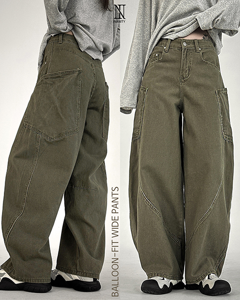 ハイウエスト バルーン コットンパンツ