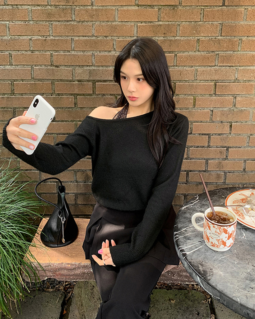 スラブワンショルダーニット