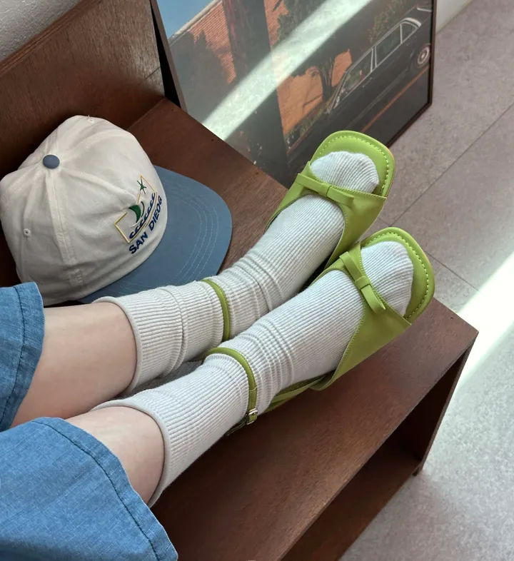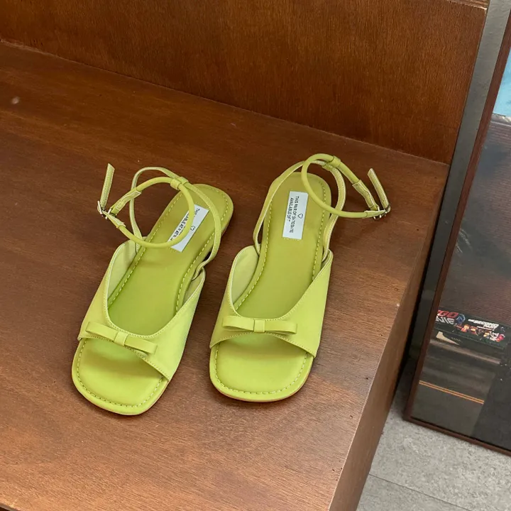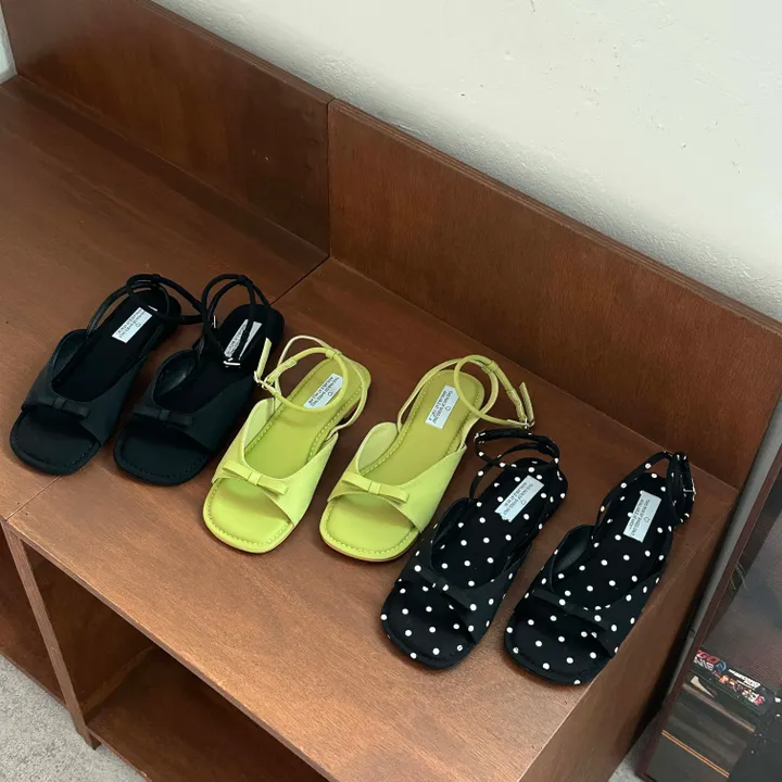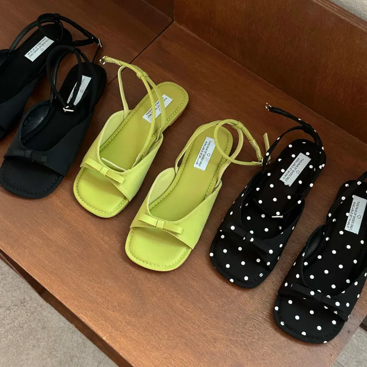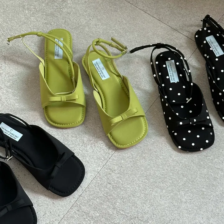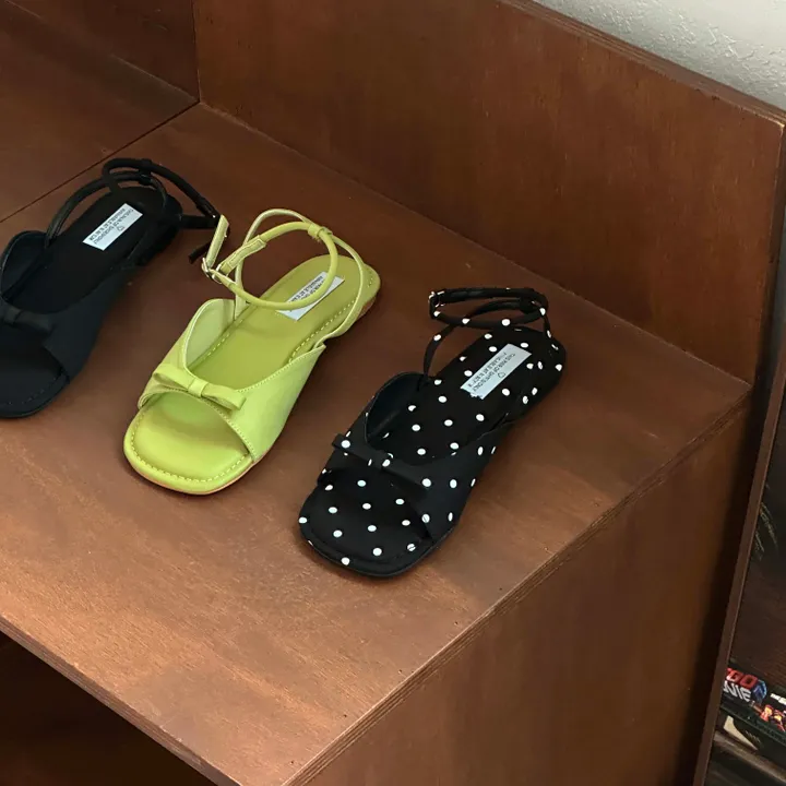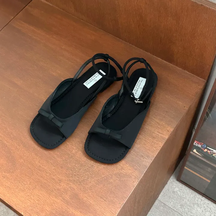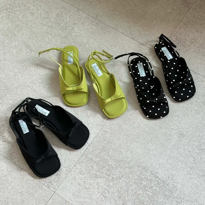 キッチュスクエアフラットシューズリボンサンダル[3color]