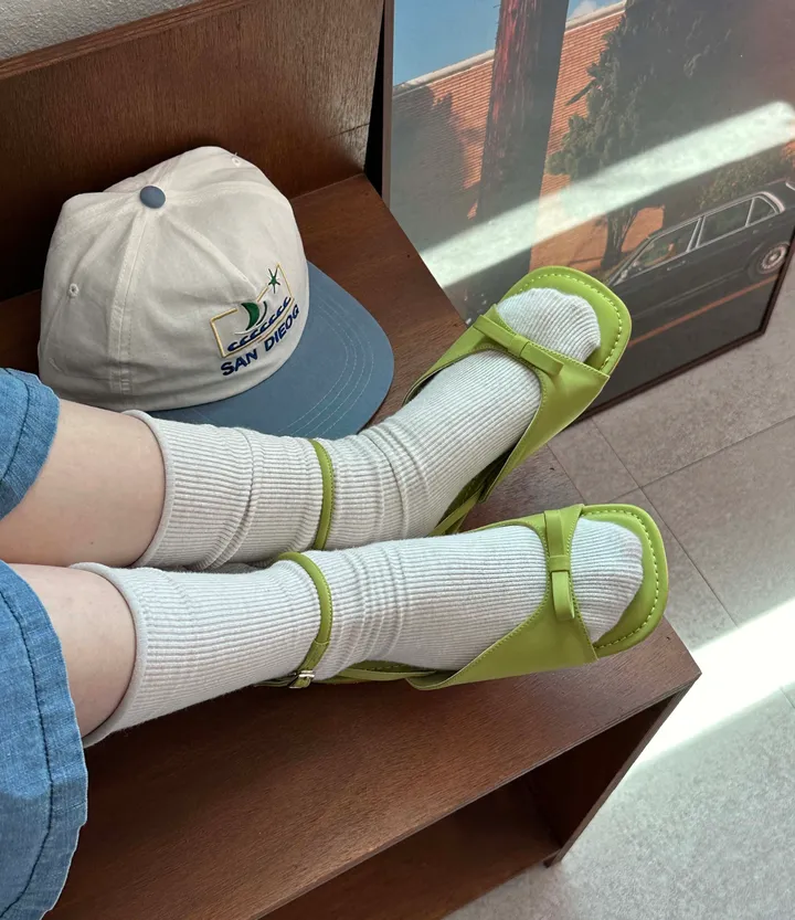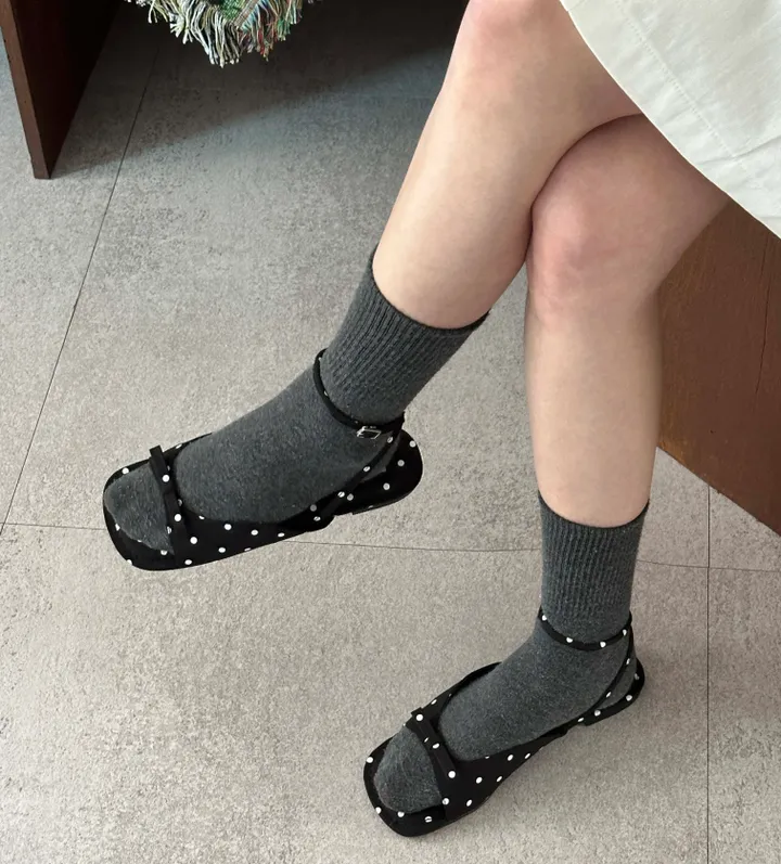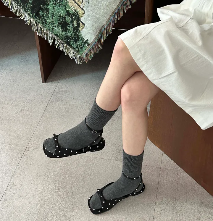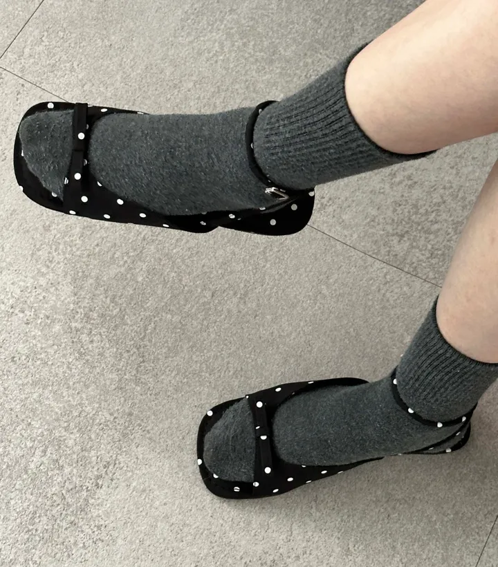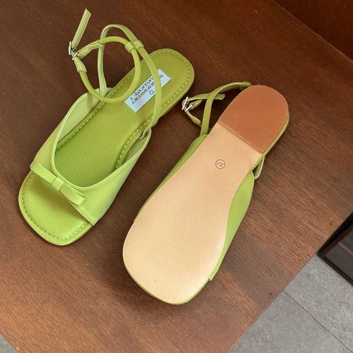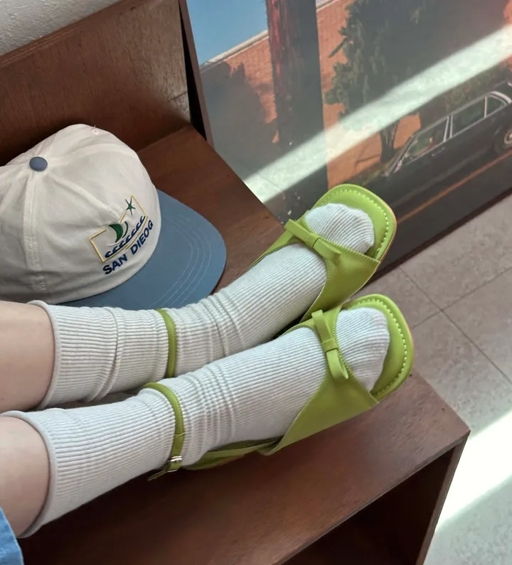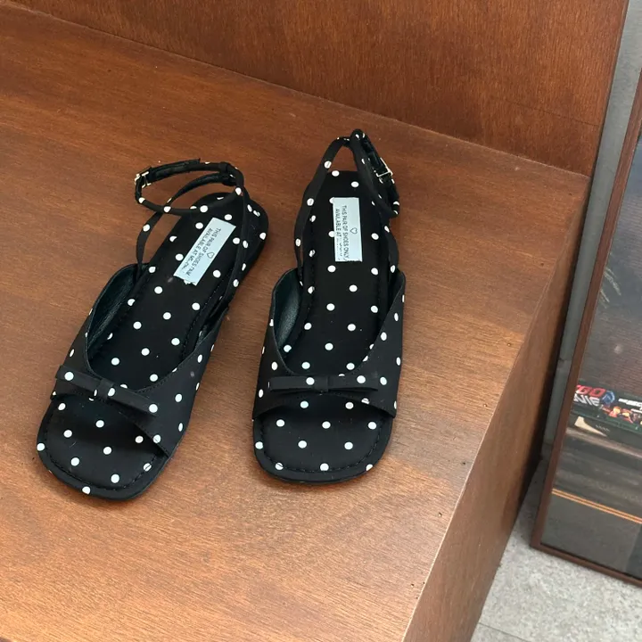 キッチュスクエアフラットシューズリボンサンダル[3color]