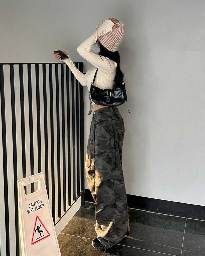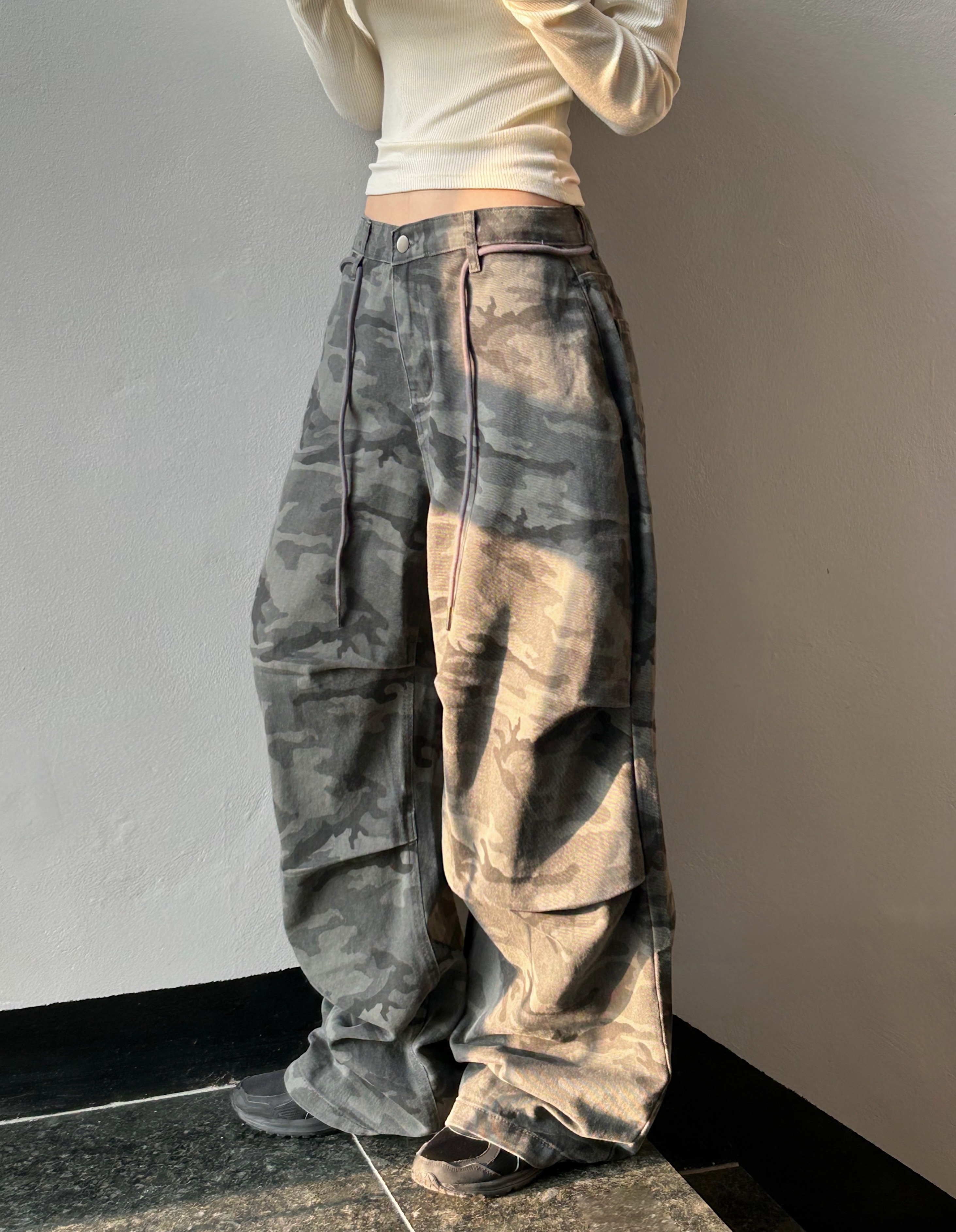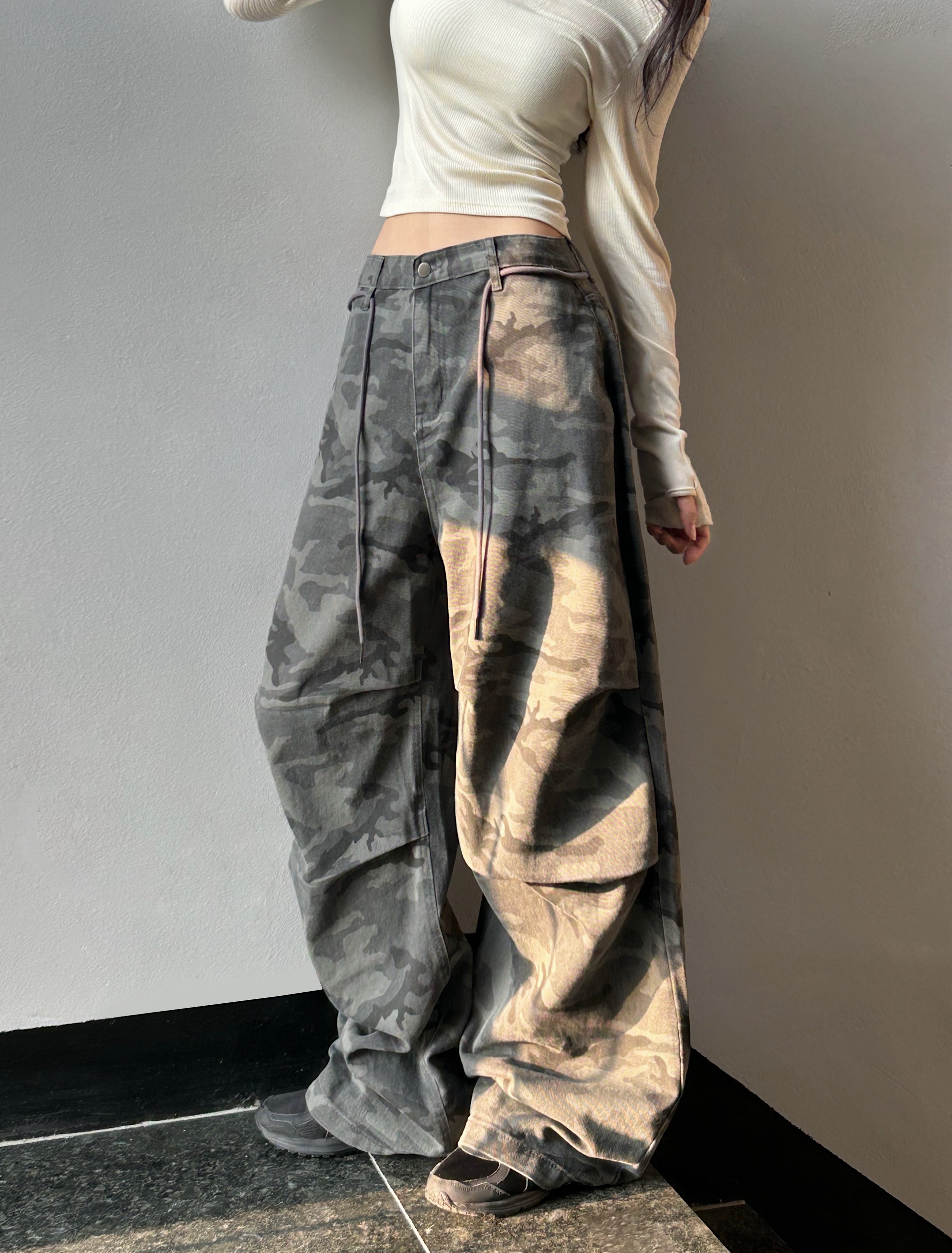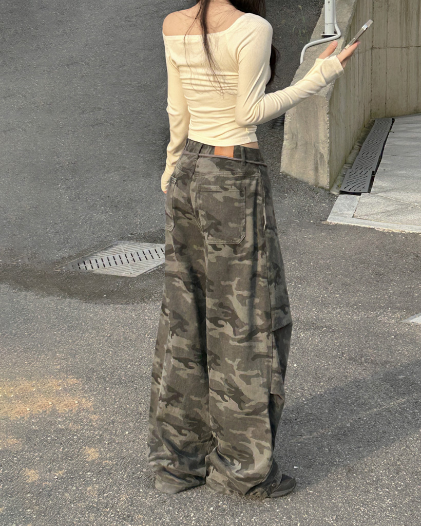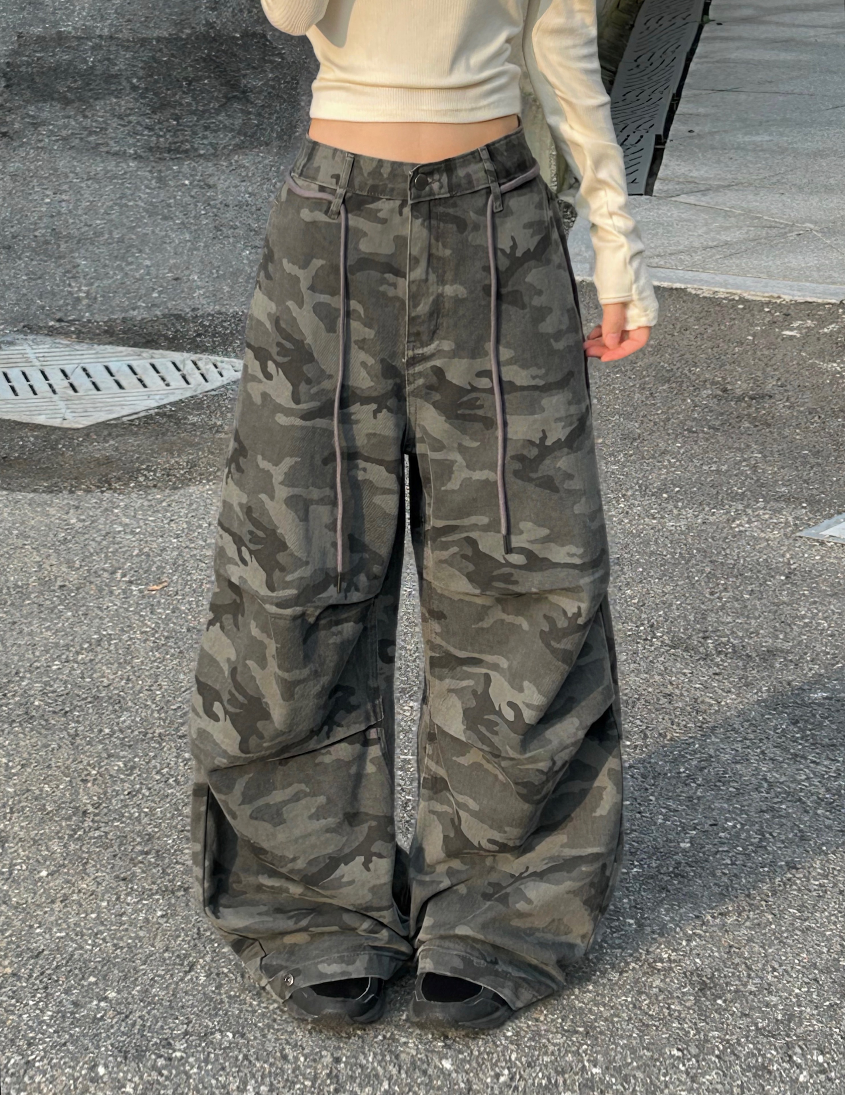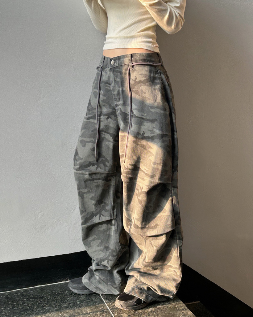 ミリタリータック入りストラップワイドパンツ