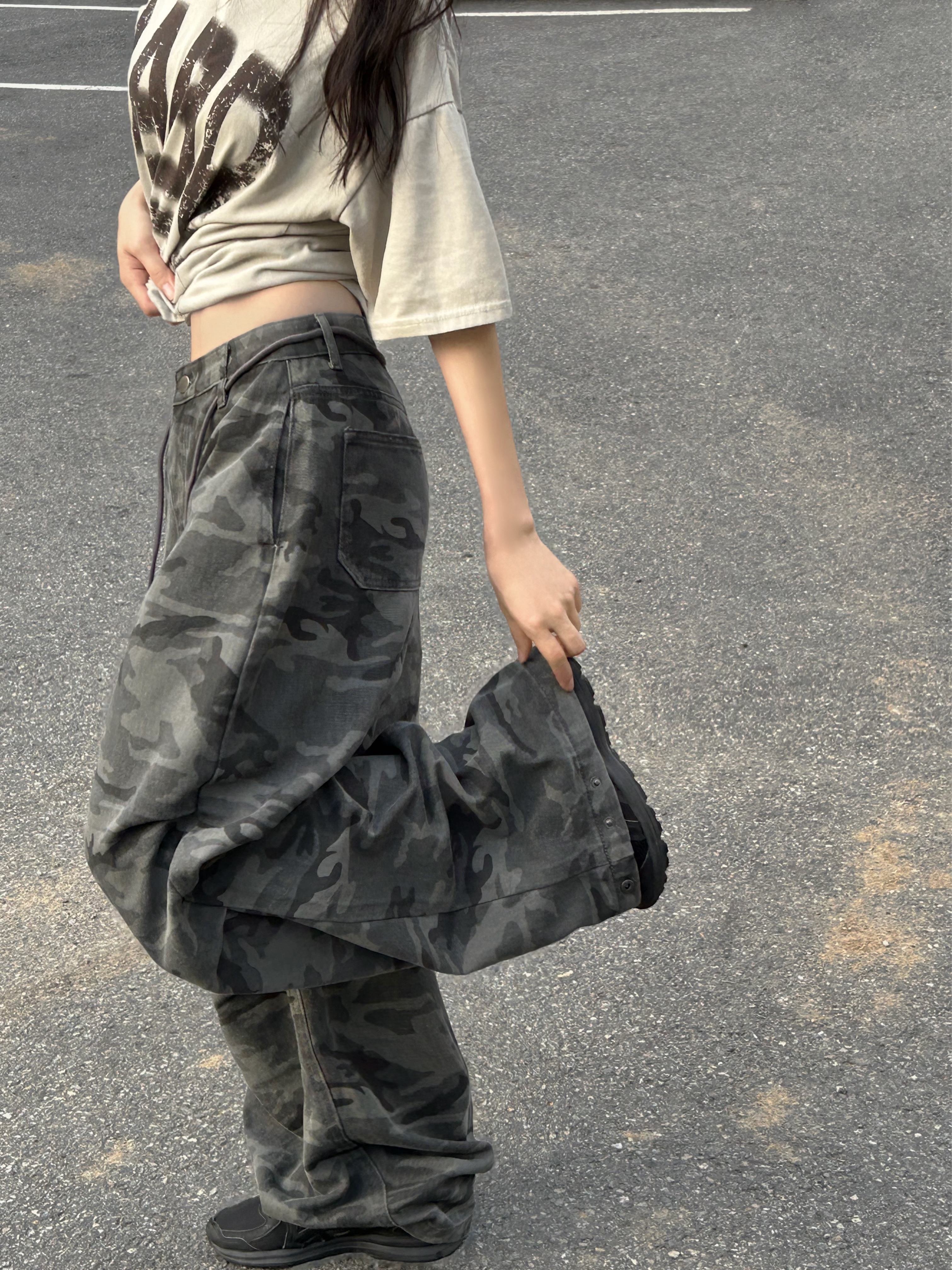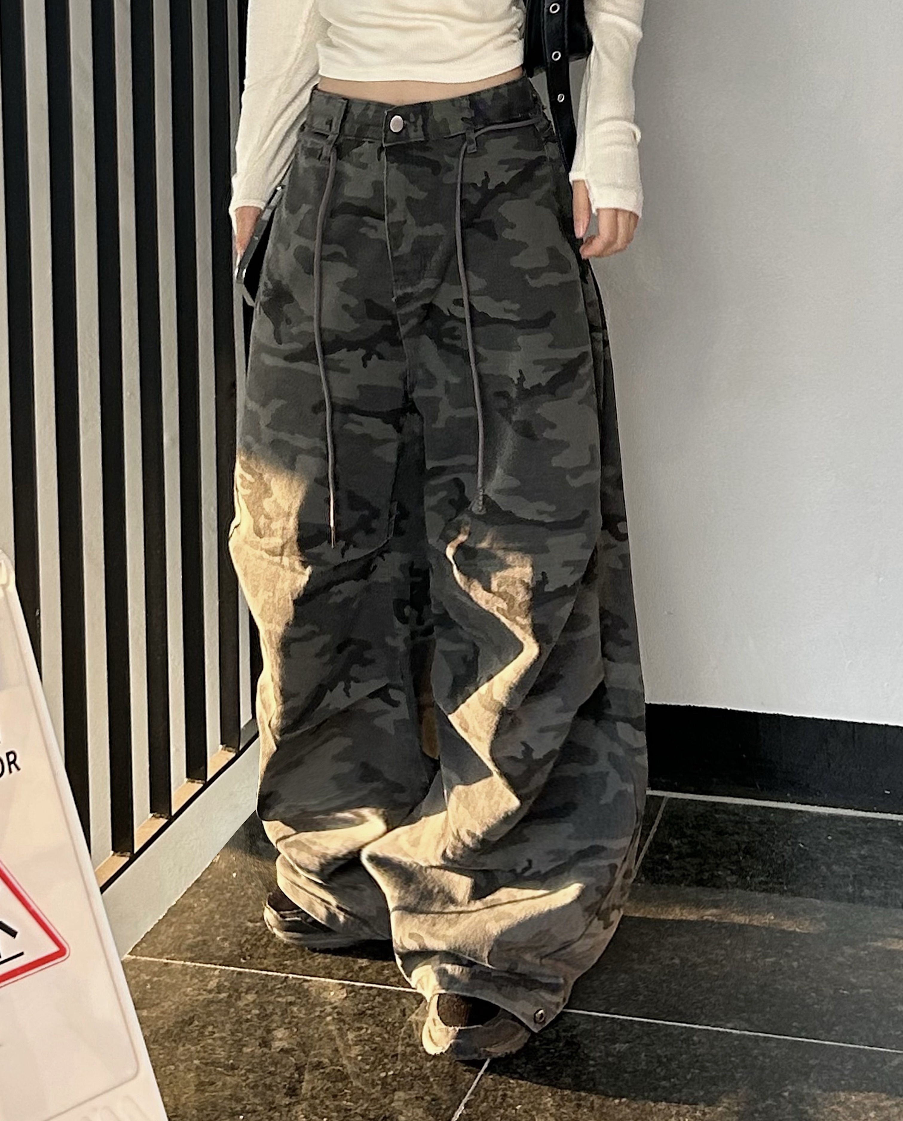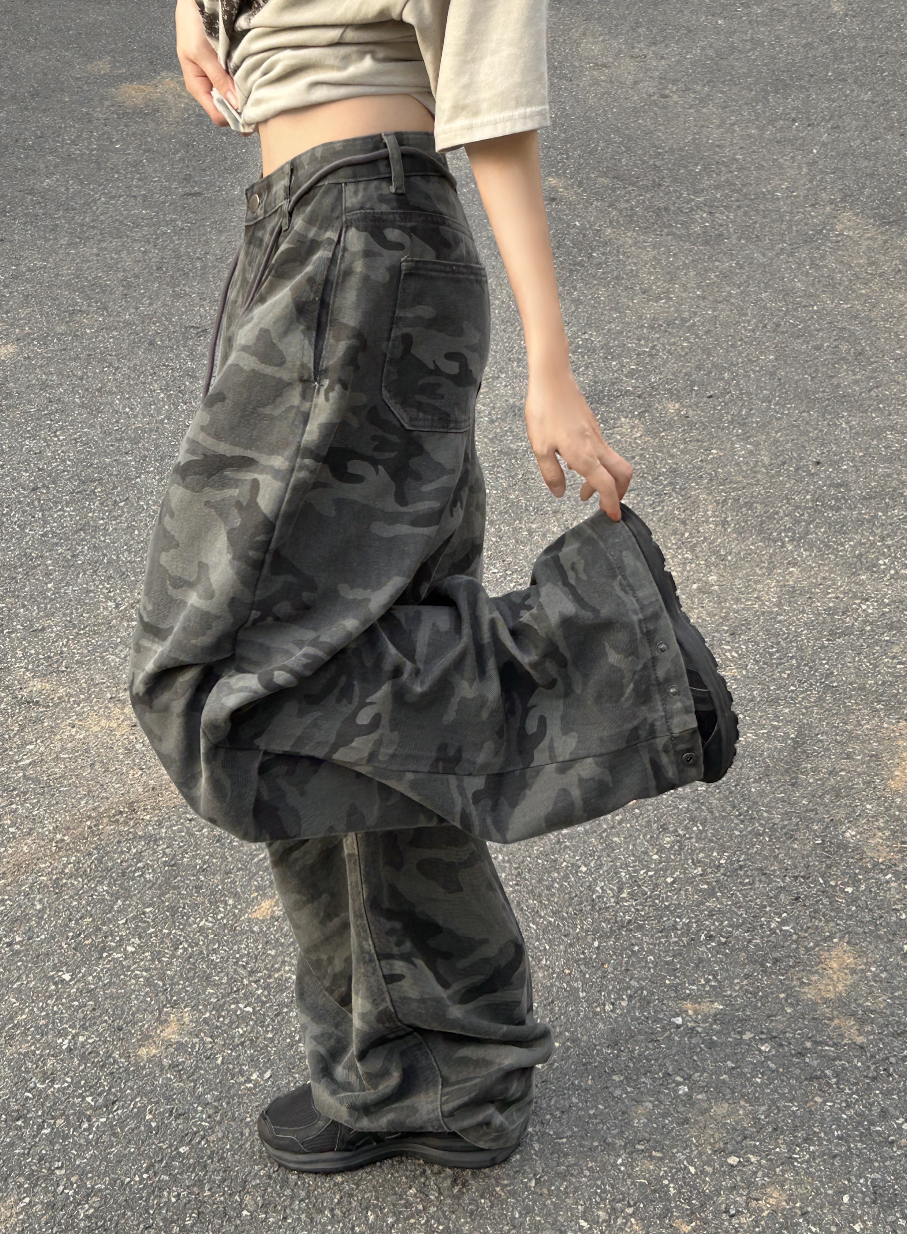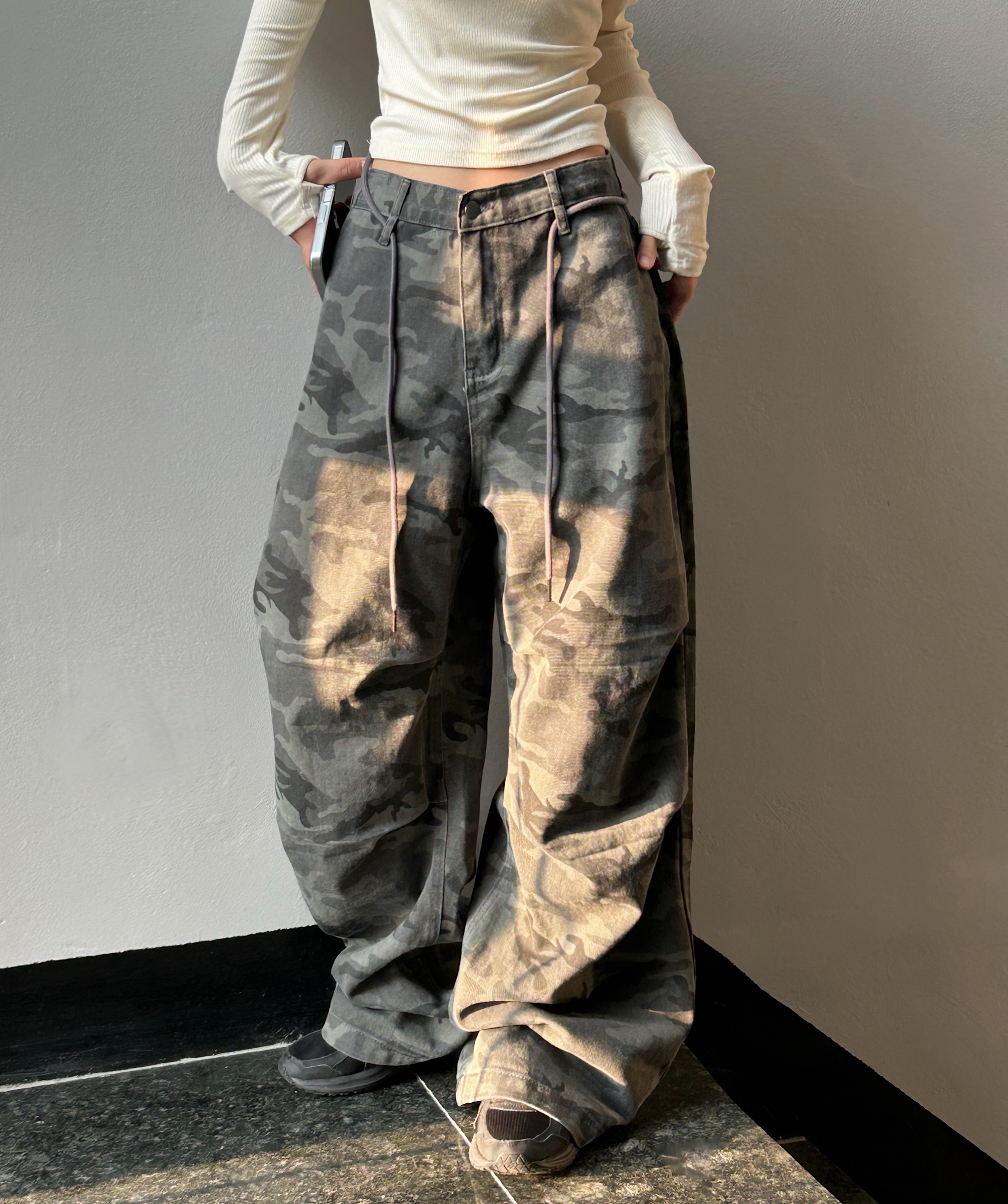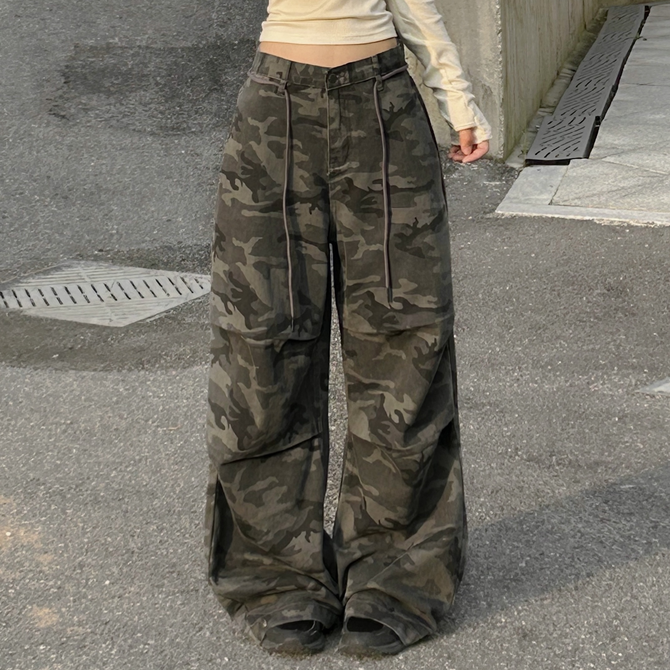 ミリタリータック入りストラップワイドパンツ