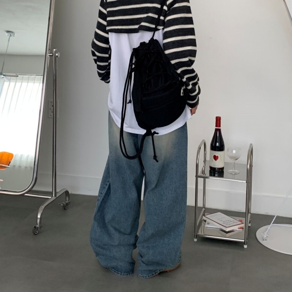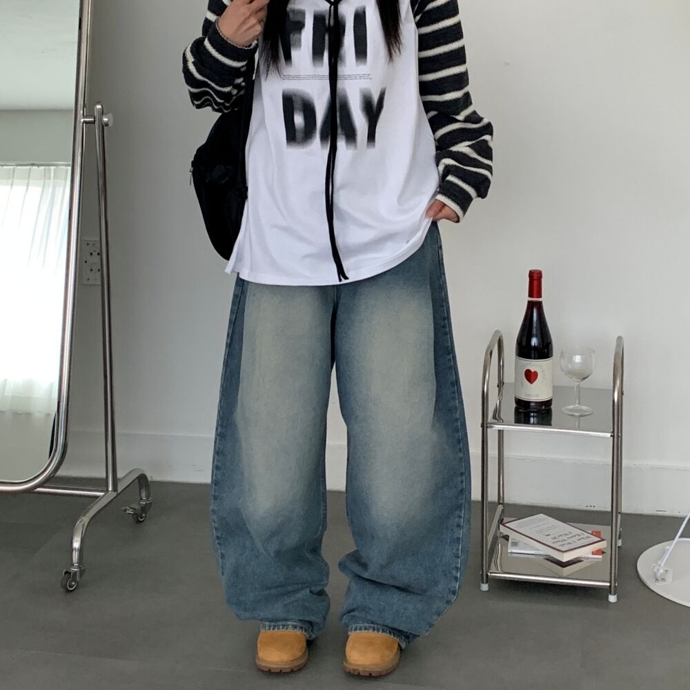 タック入りワイドウォッシュデニムパンツ2color