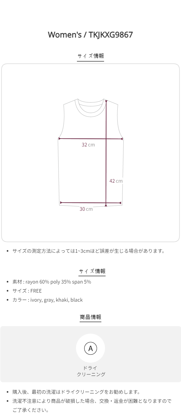 この商品はノースリーブ単品となっており、ご購入前にお間違いないようにご注意ください。