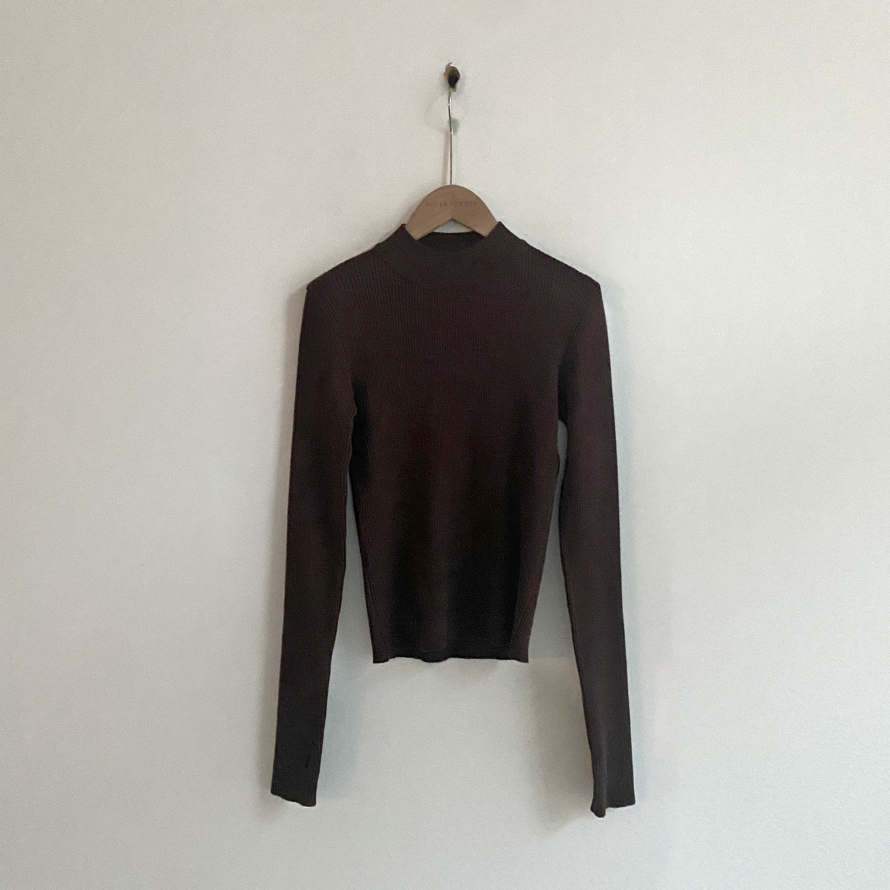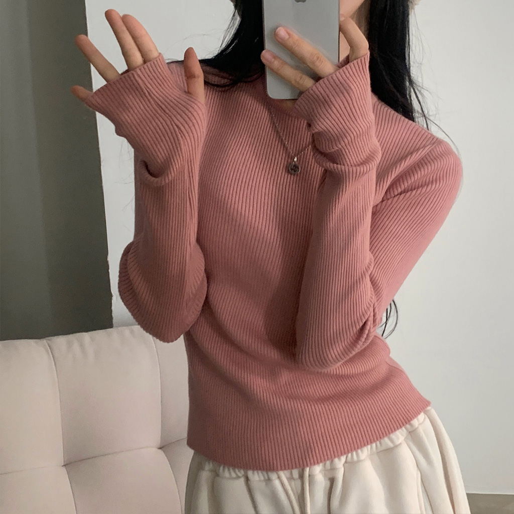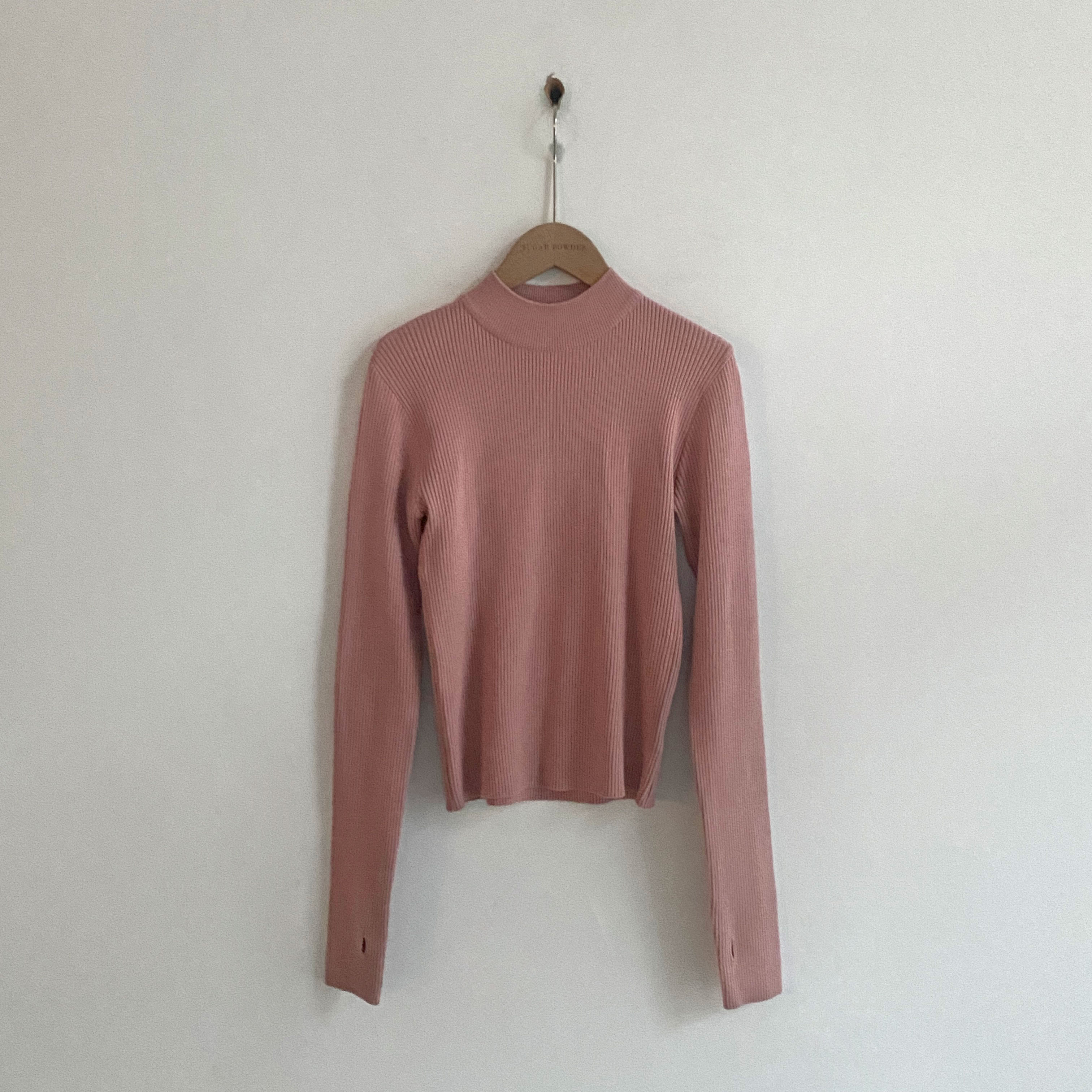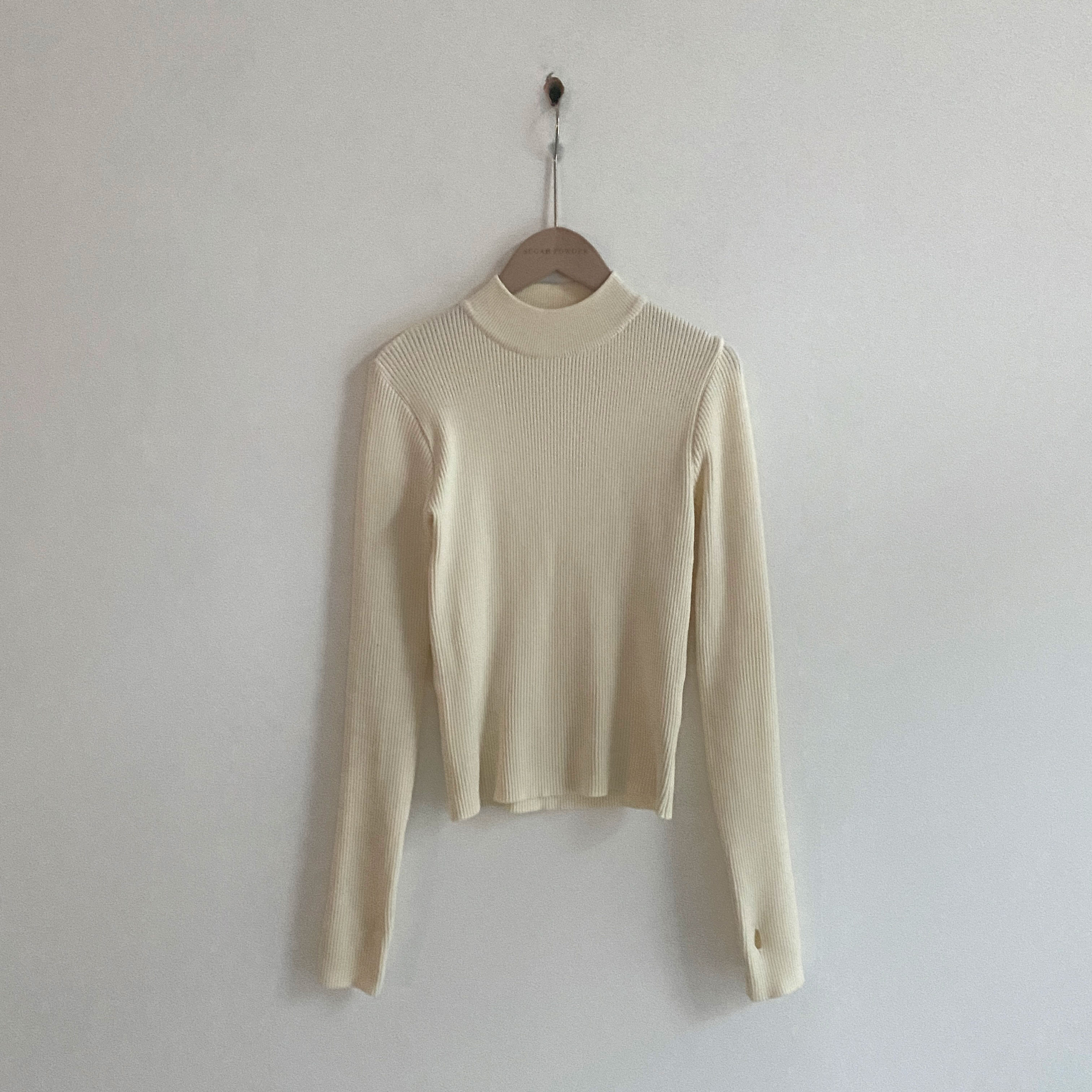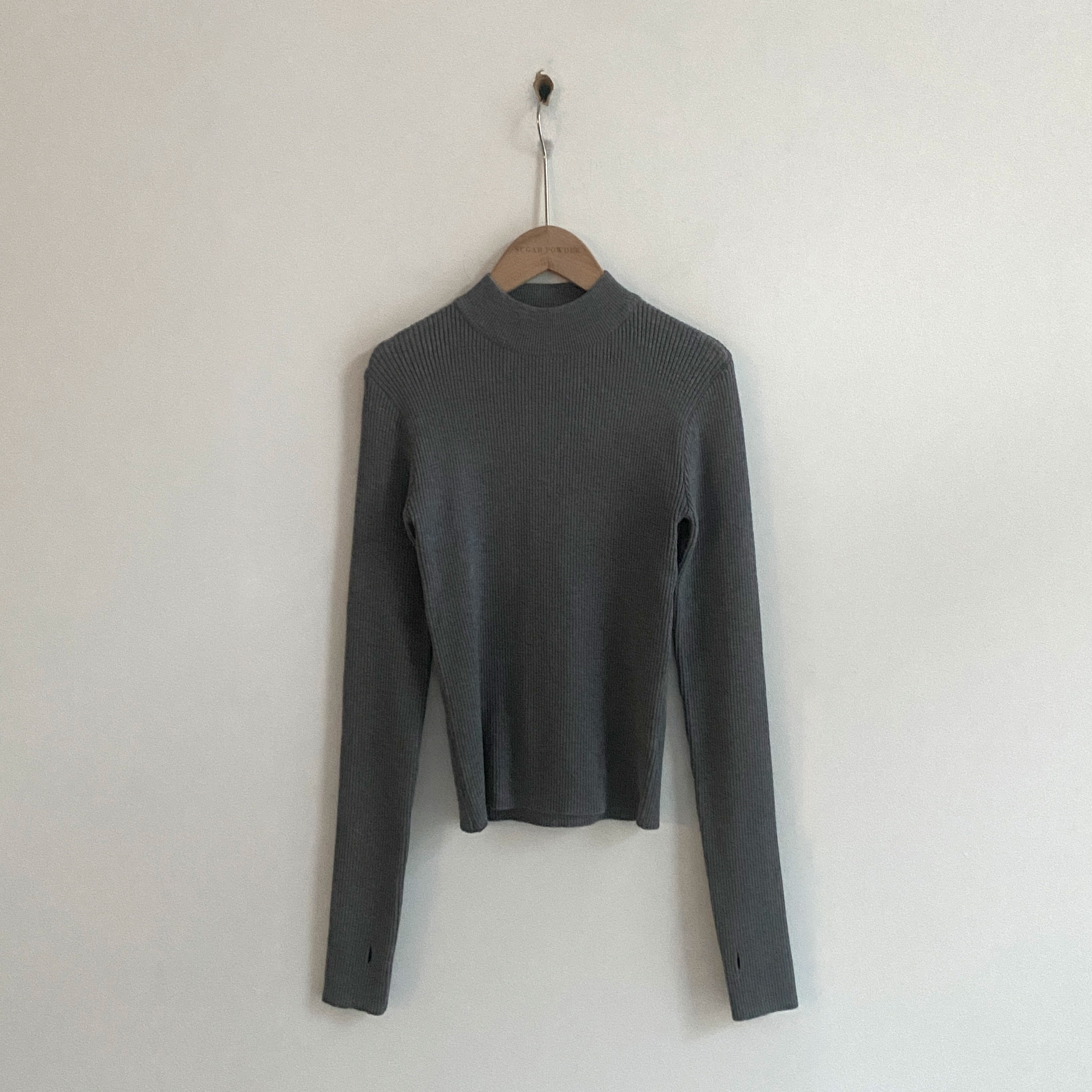 ハーフネック リブ スリム フィンガーホール ニット