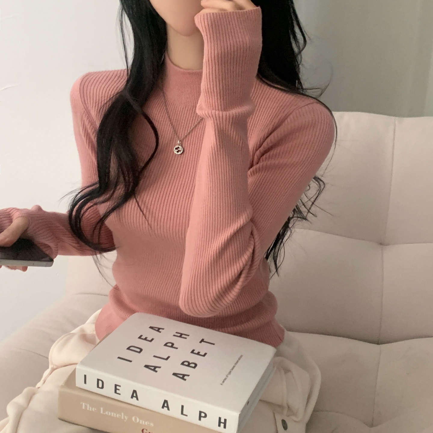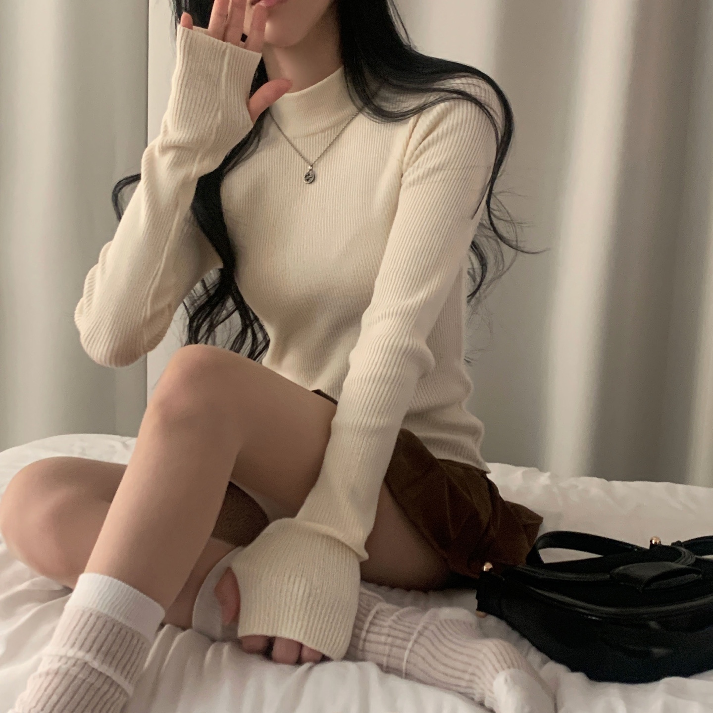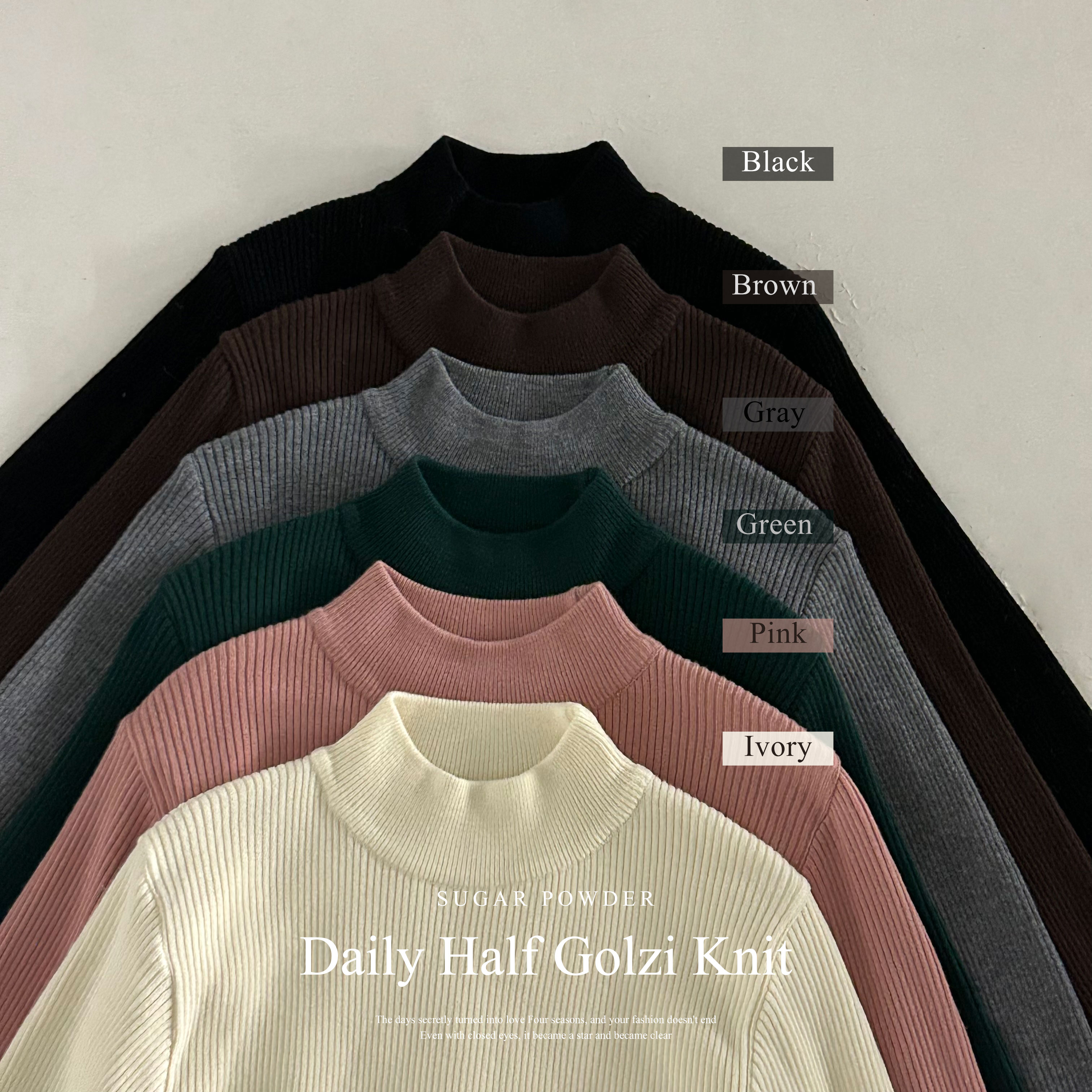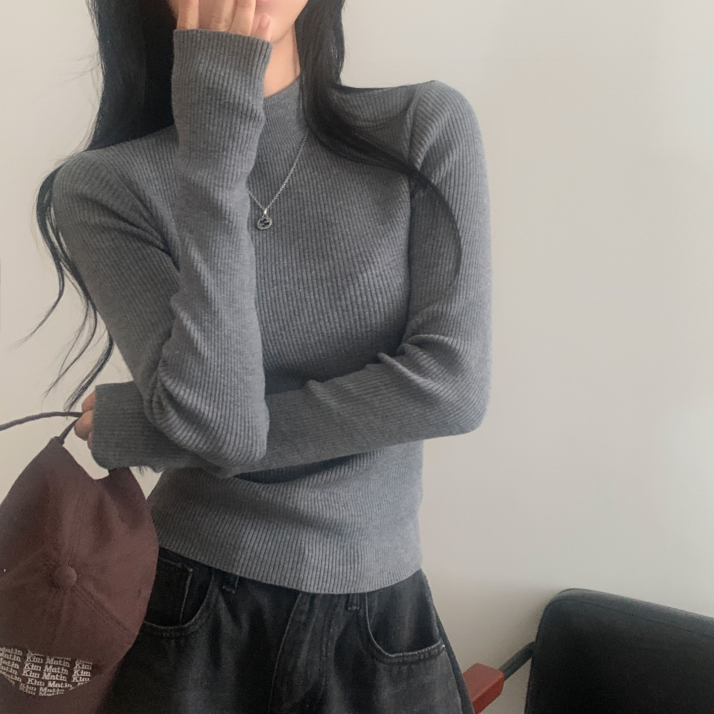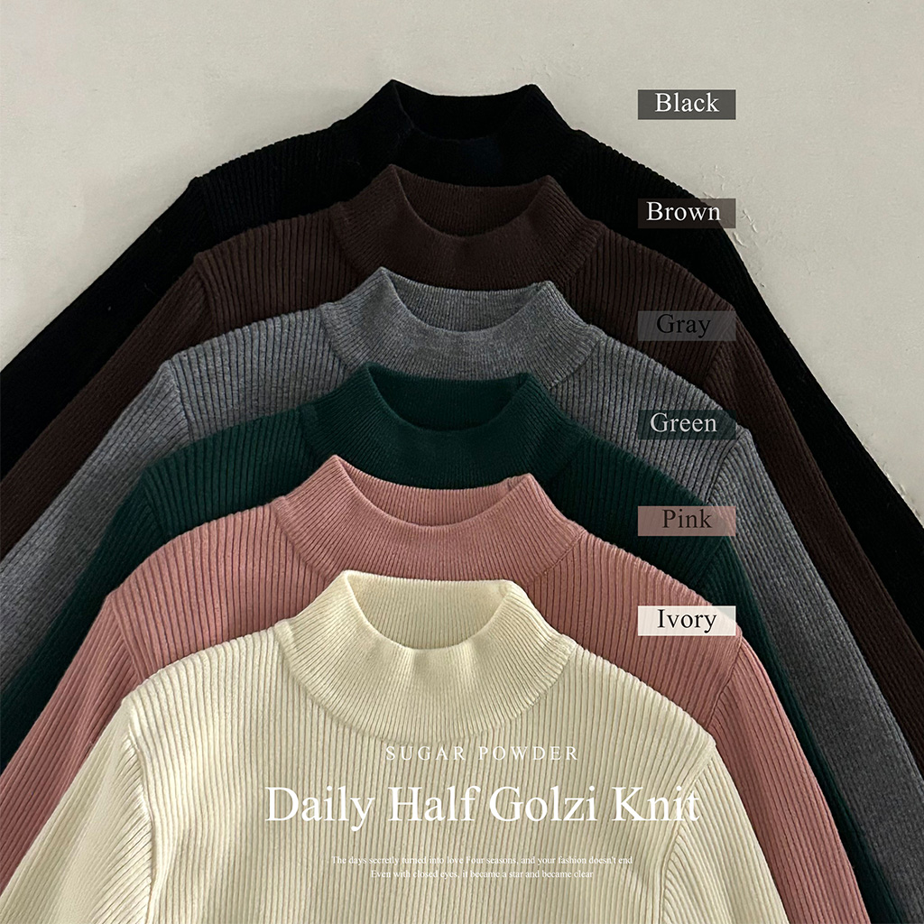 ハーフネック リブ スリム フィンガーホール ニット