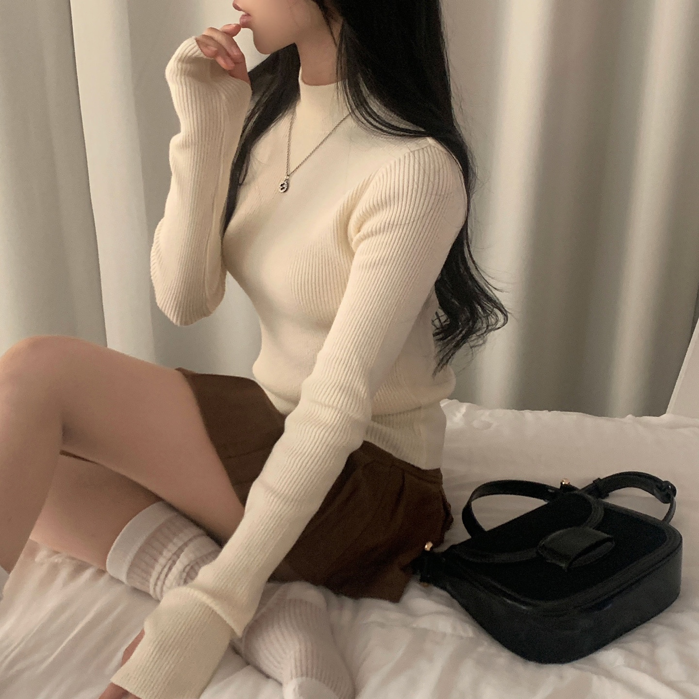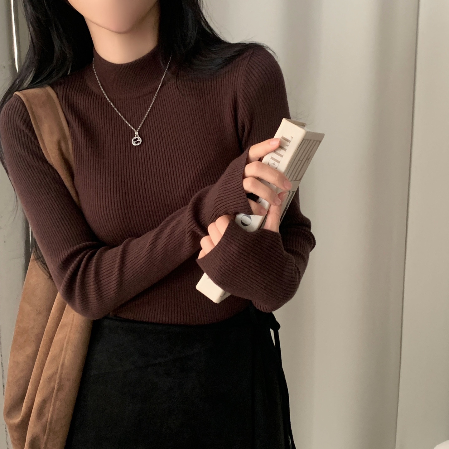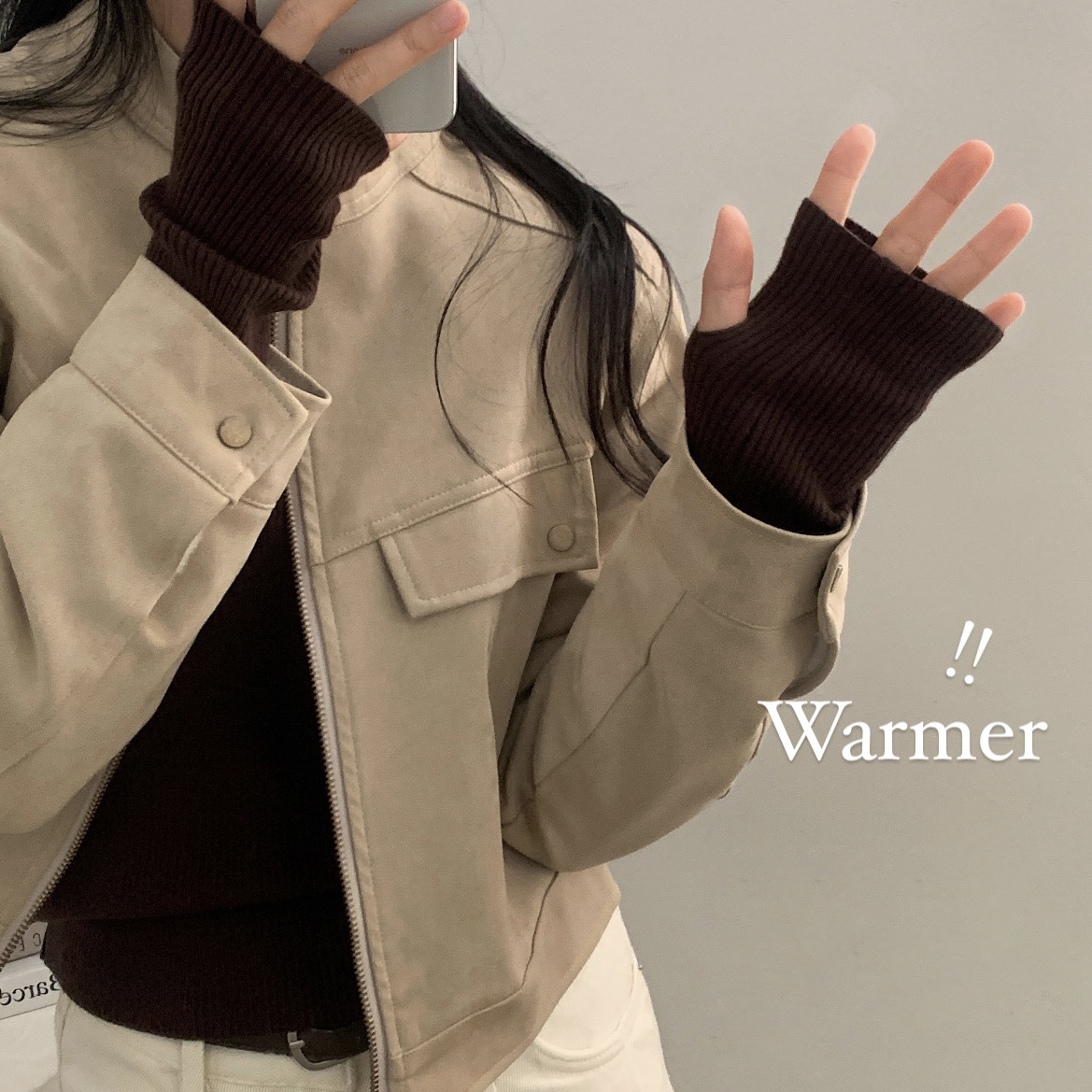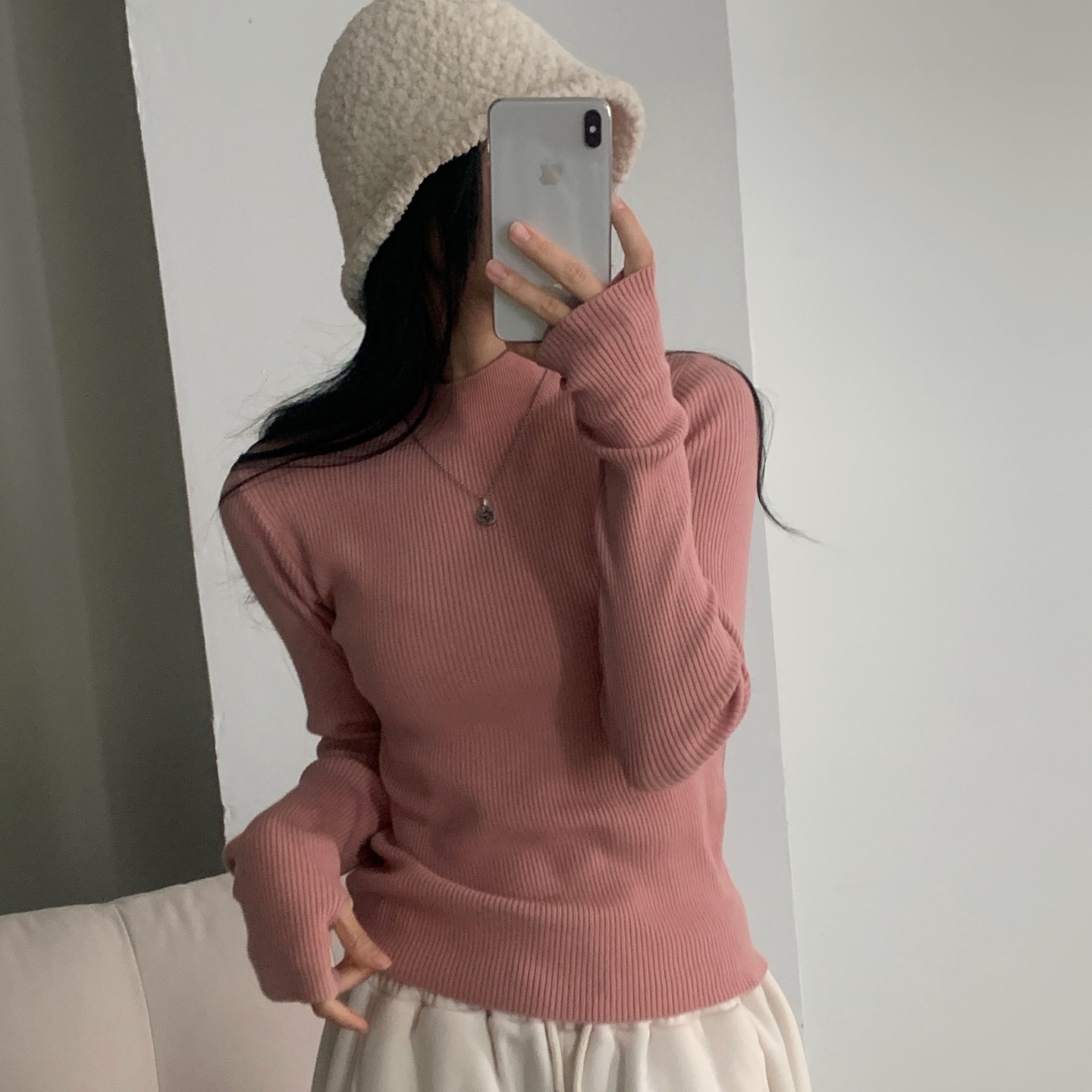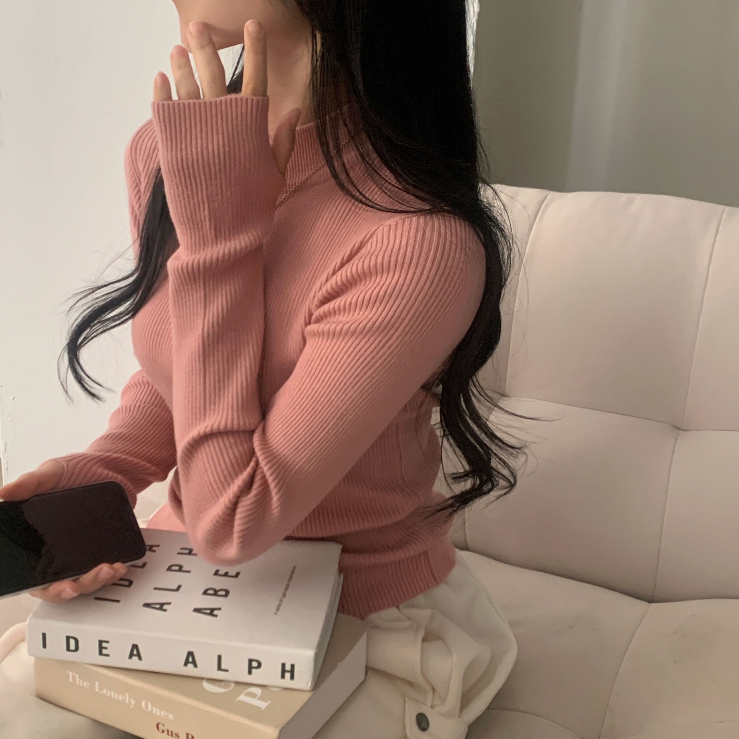 ハーフネック リブ スリム フィンガーホール ニット