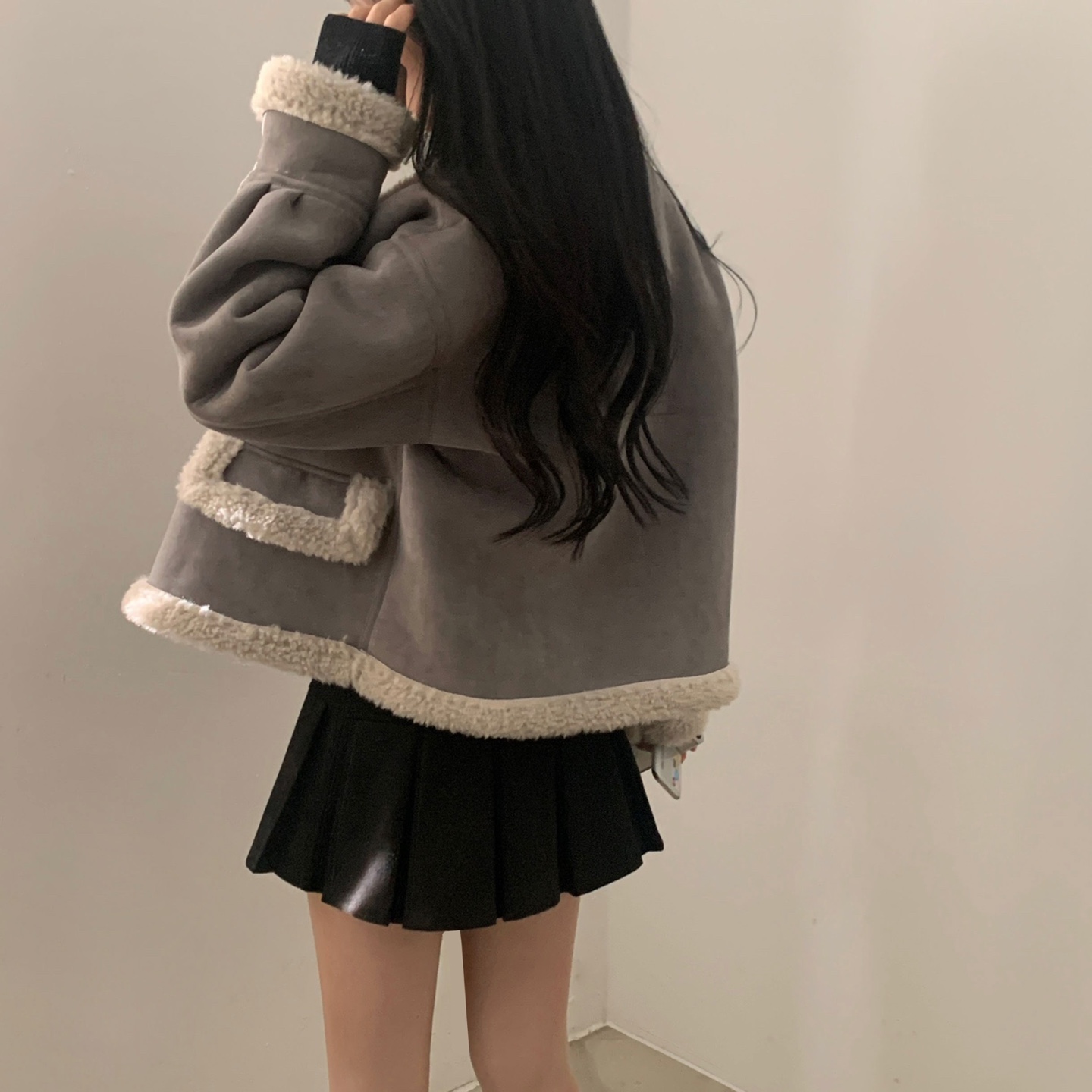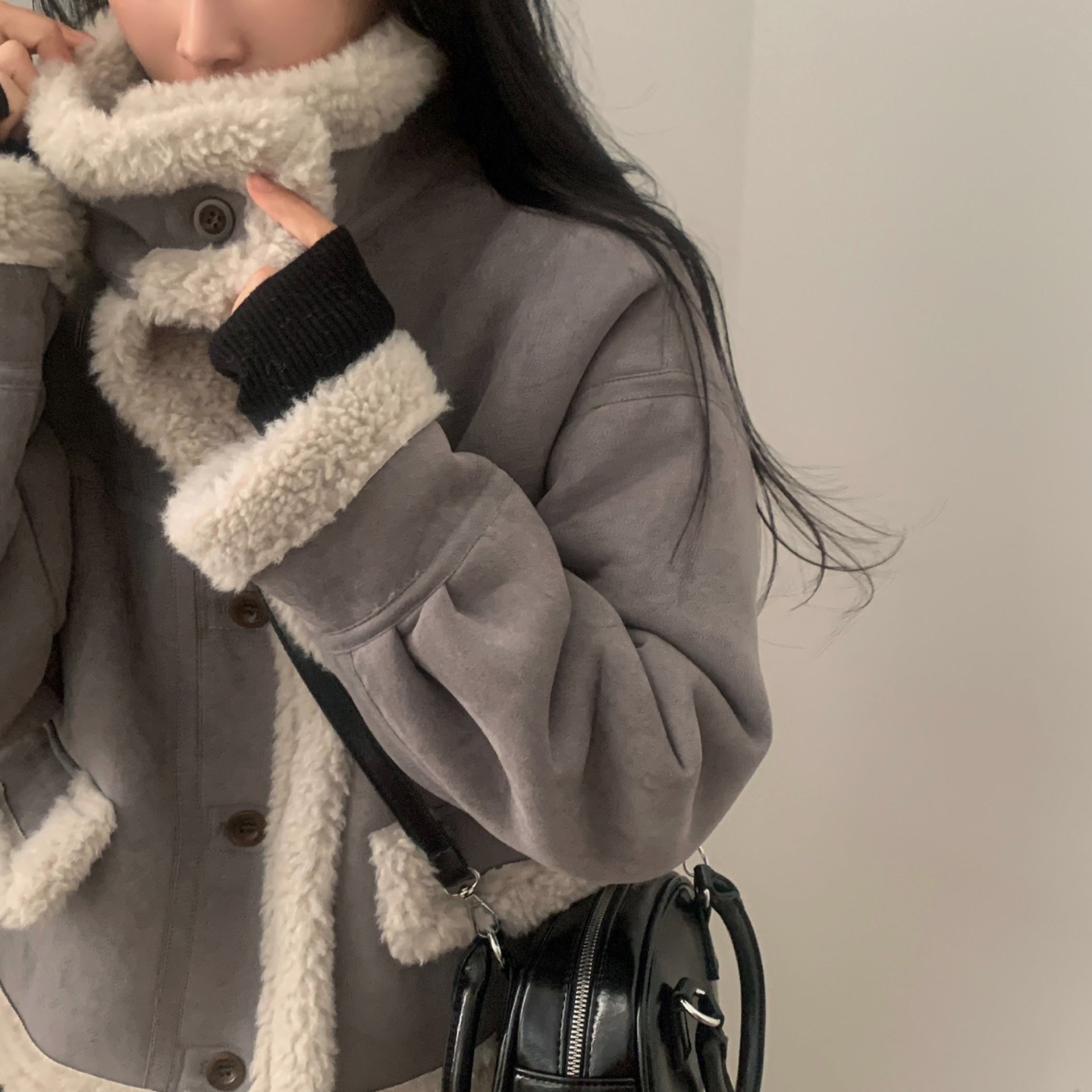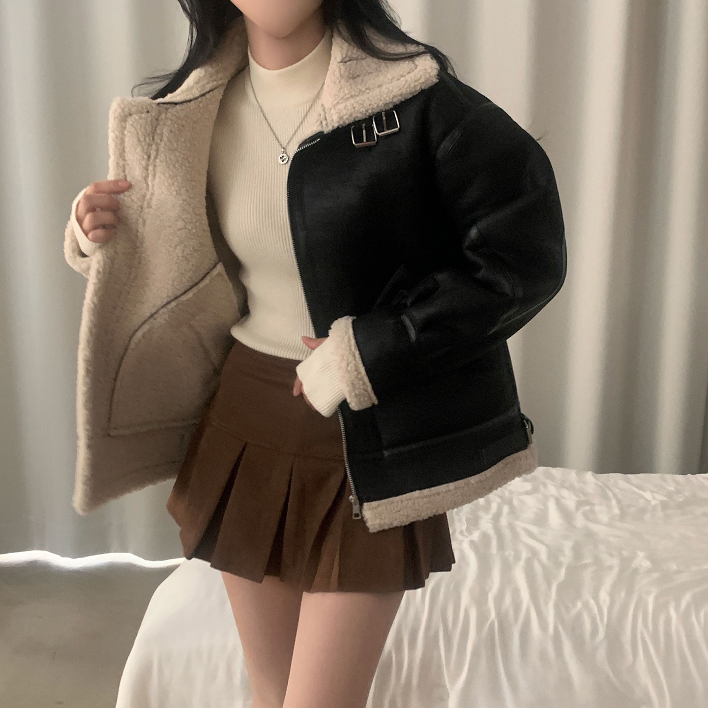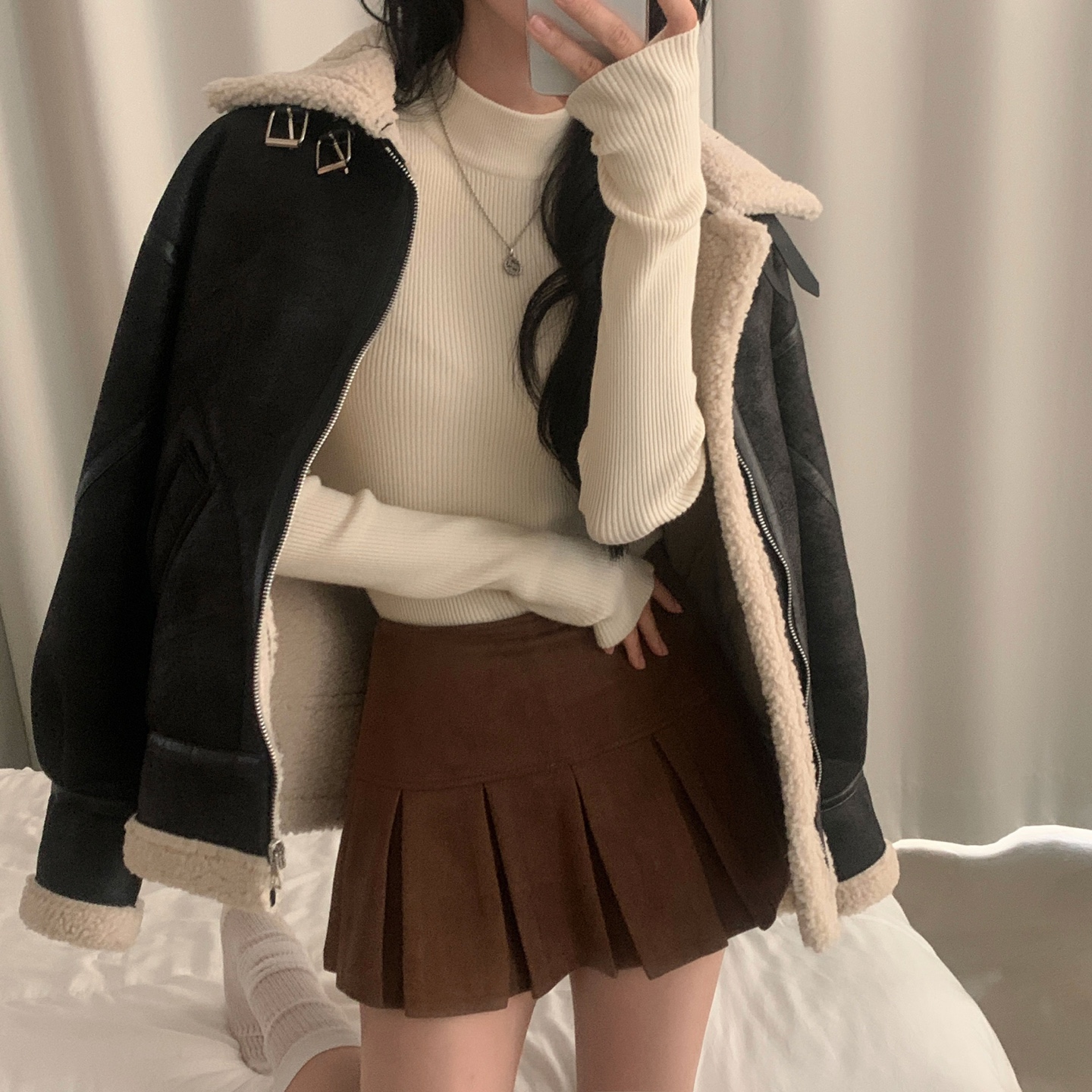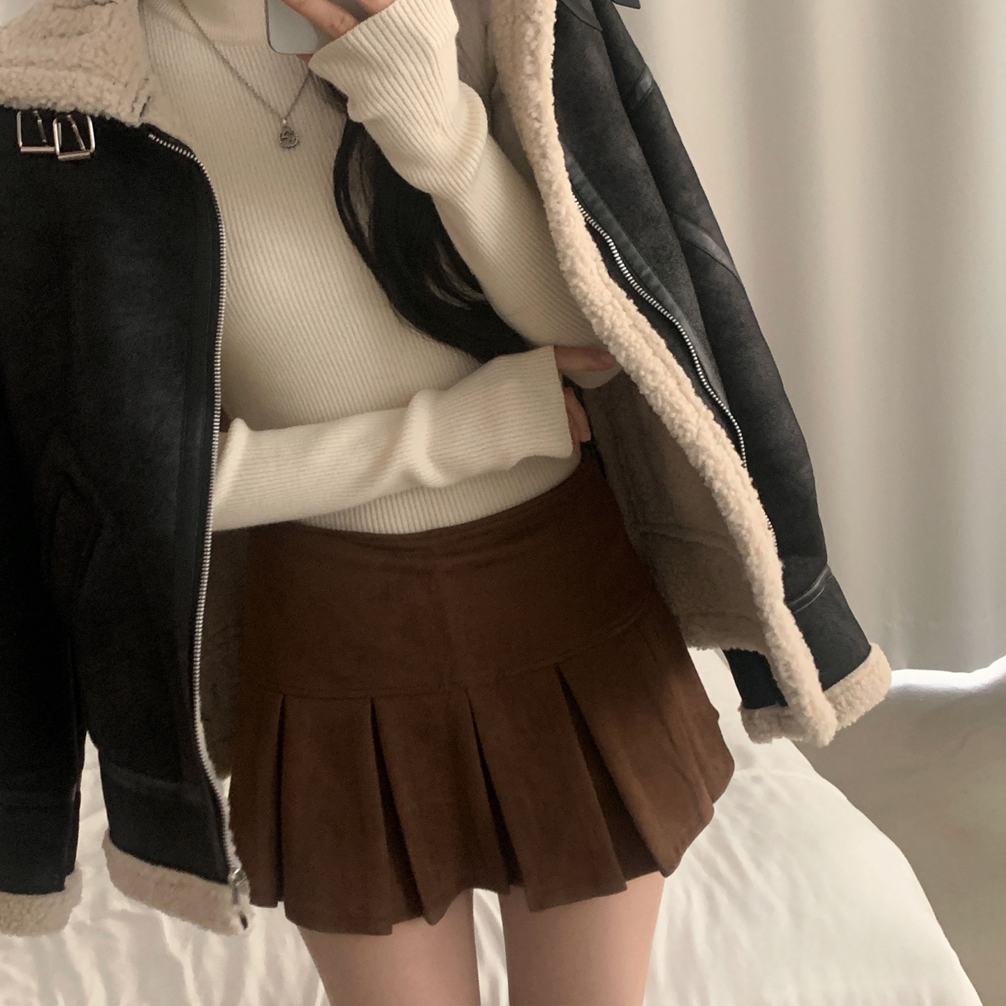 ハーフネック リブ スリム フィンガーホール ニット