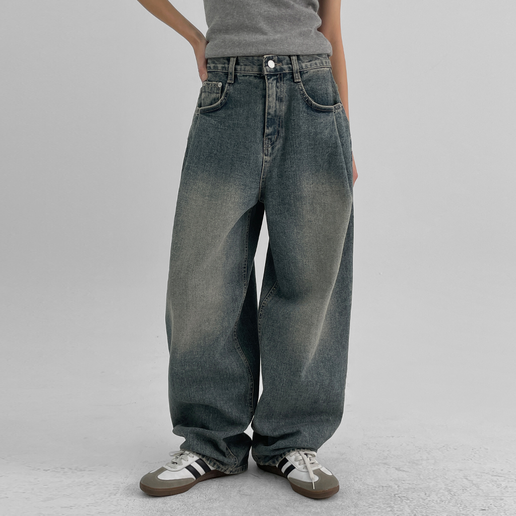 ゼクチンピンタックウォッシュワイドデニムパンツ